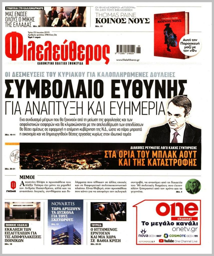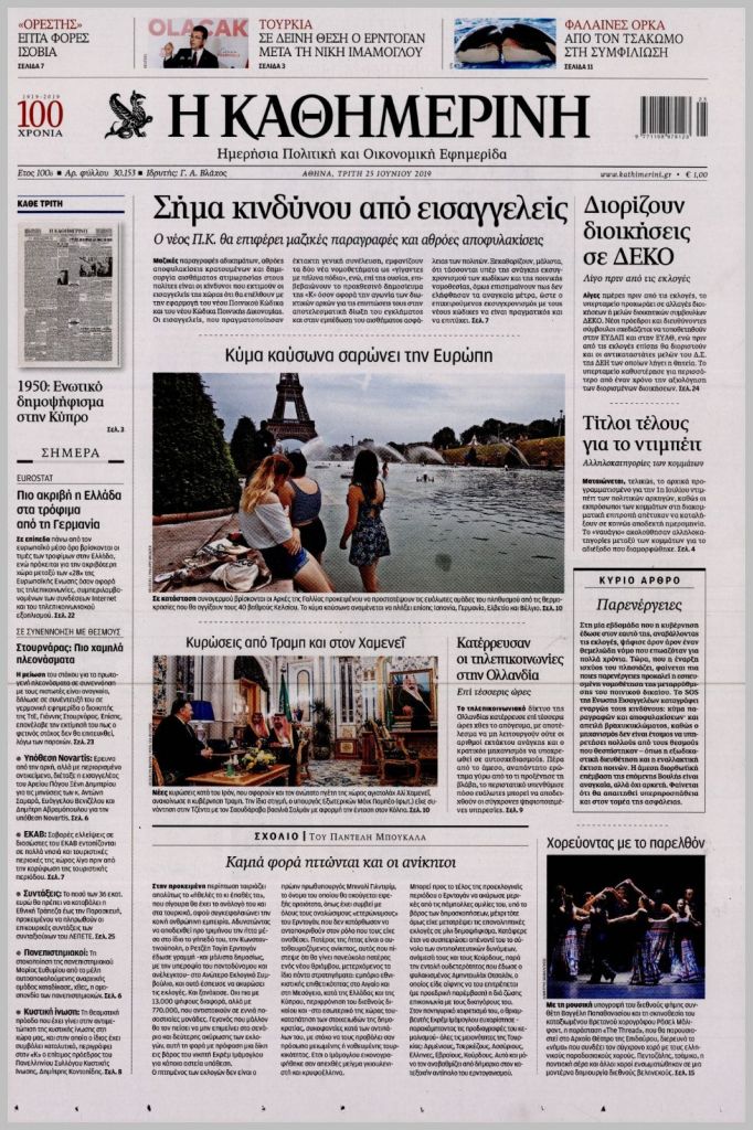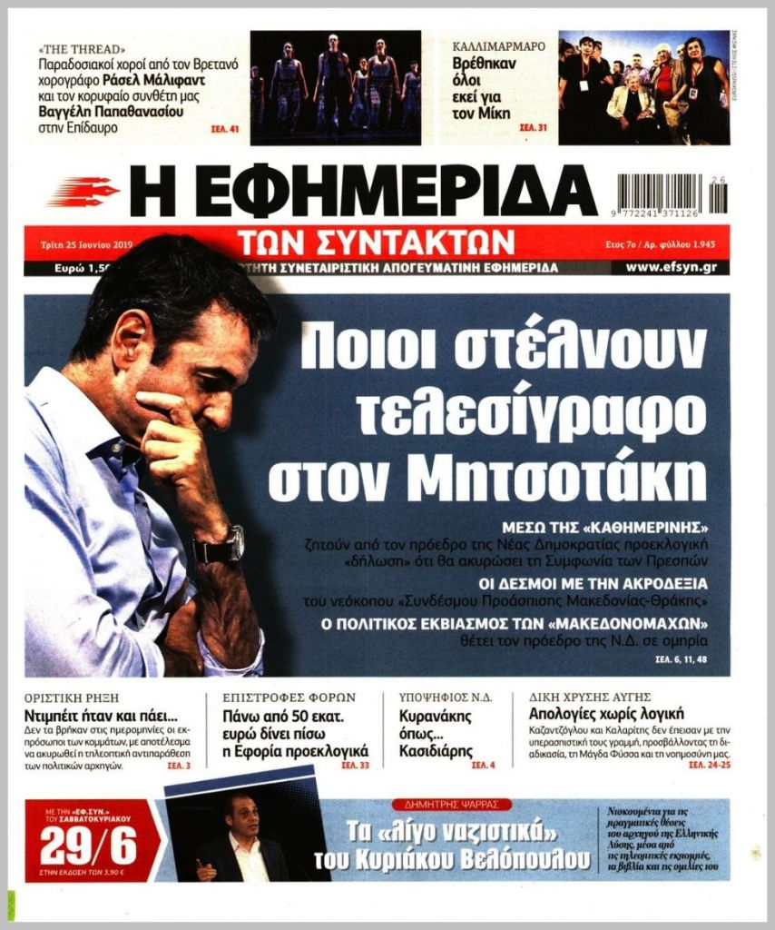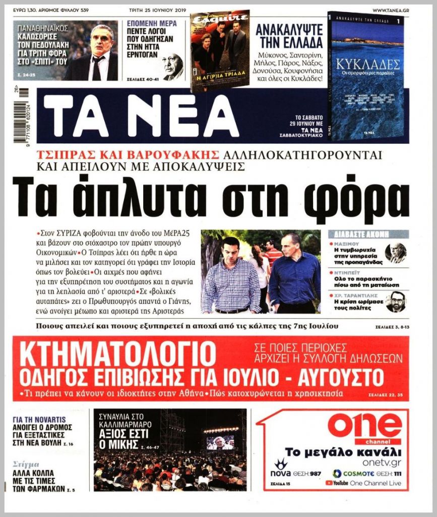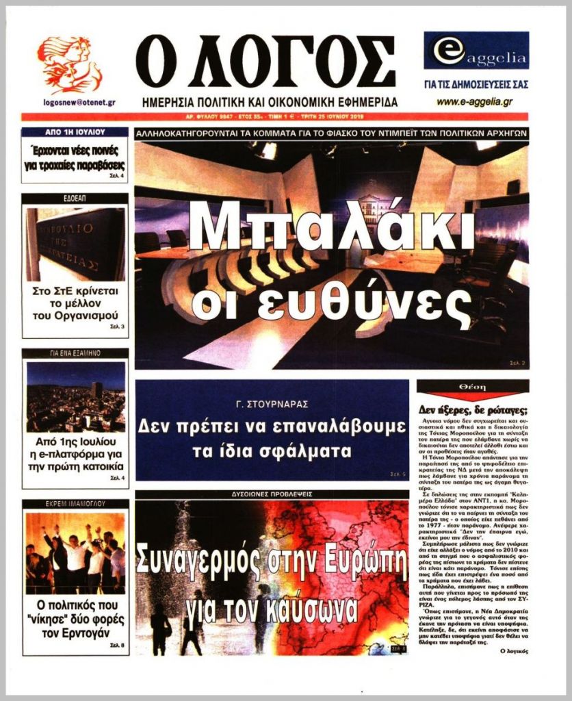Τα πρωτοσέλιδα των πολιτικών εφημερίδων για σήμερα (25/6)