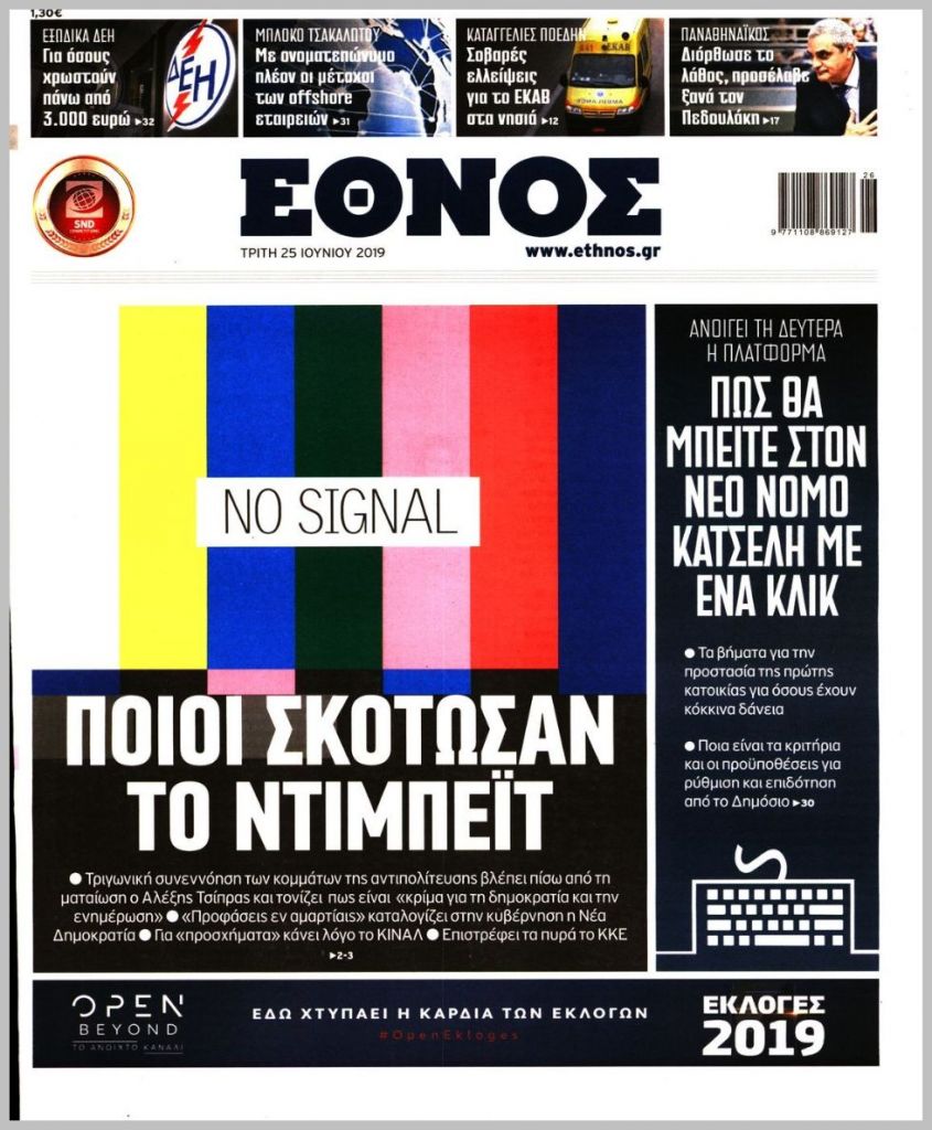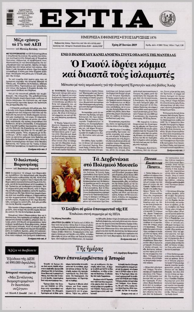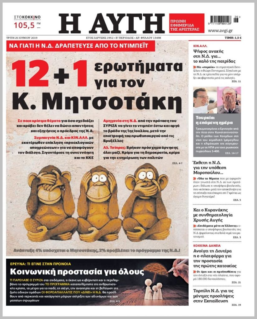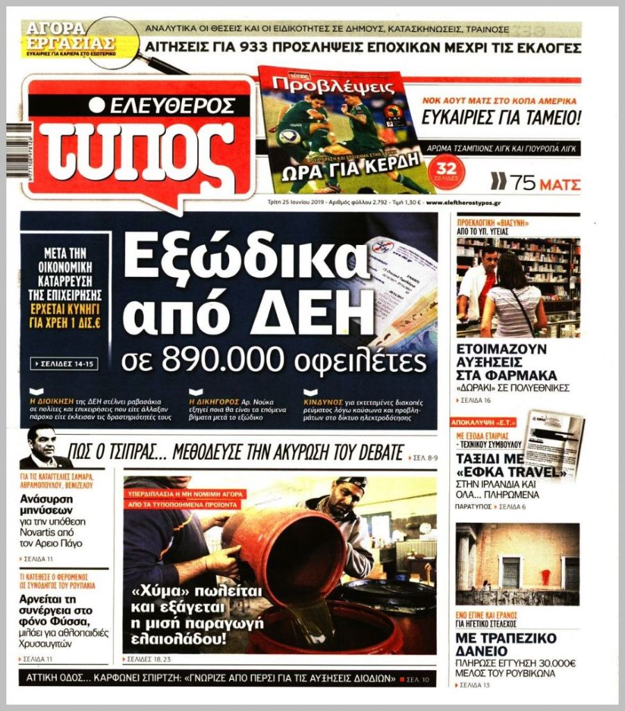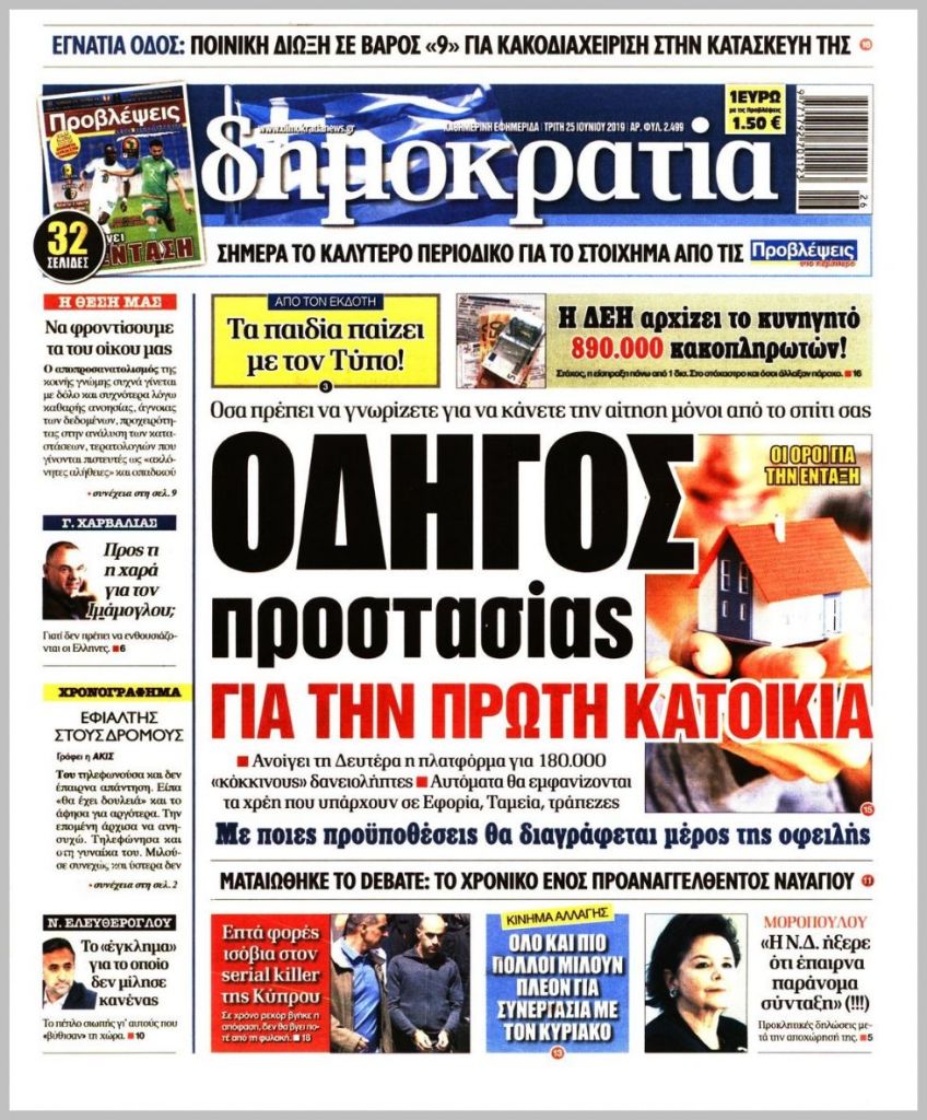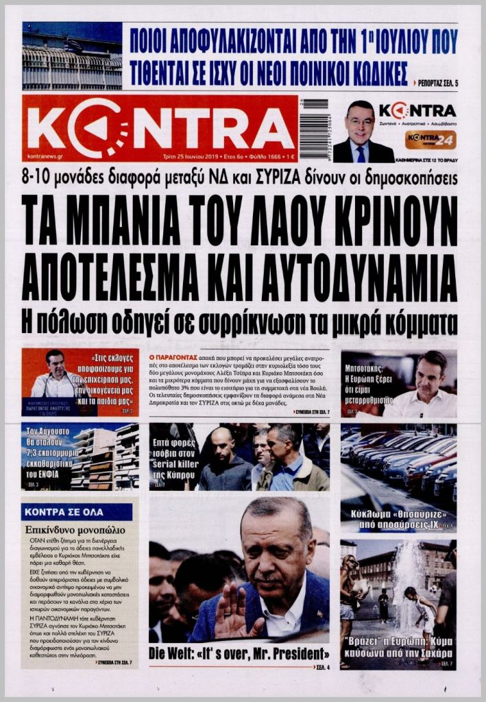 Τα πρωτοσέλιδα των πολιτικών εφημερίδων για σήμερα (25/6)