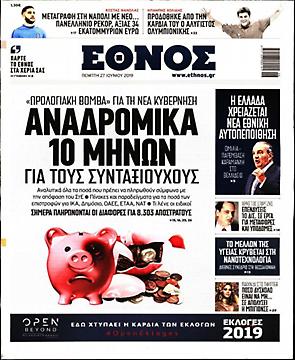 Τα πρωτοσέλιδα των πολιτικών εφημερίδων για σήμερα (27/6)