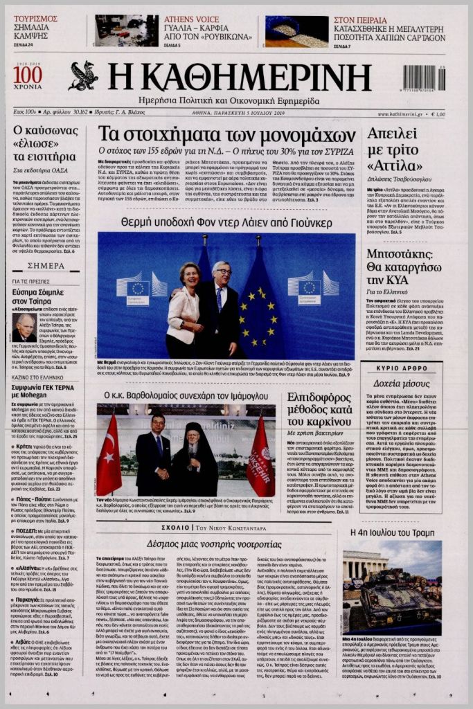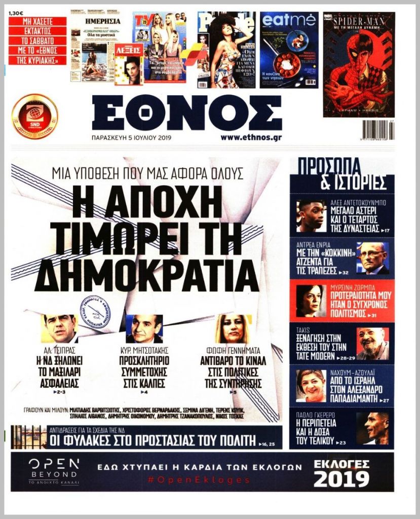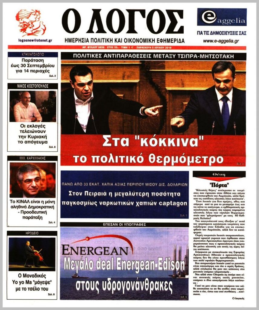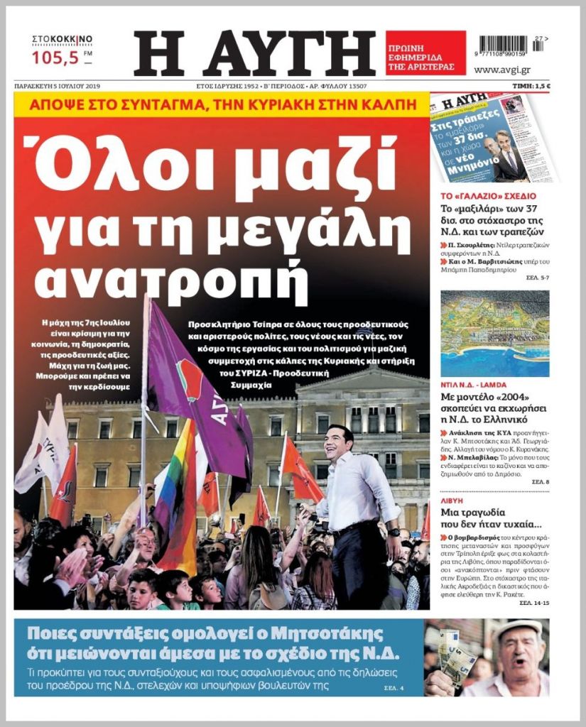 Τα πρωτοσέλιδα των πολιτικών εφημερίδων για σήμερα (5/7)