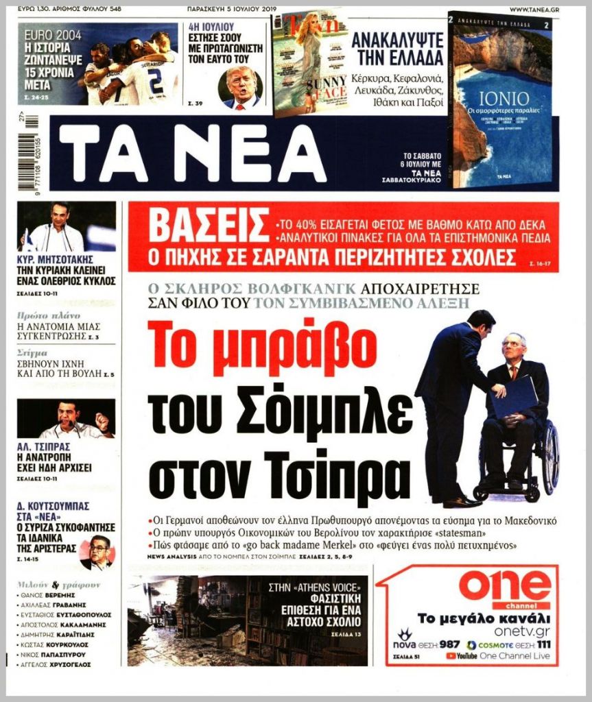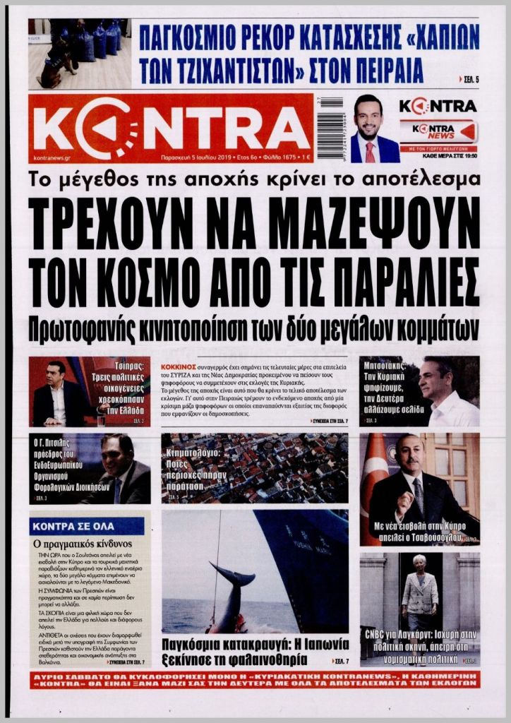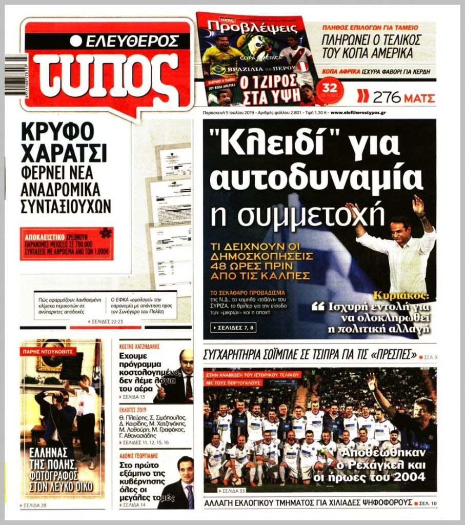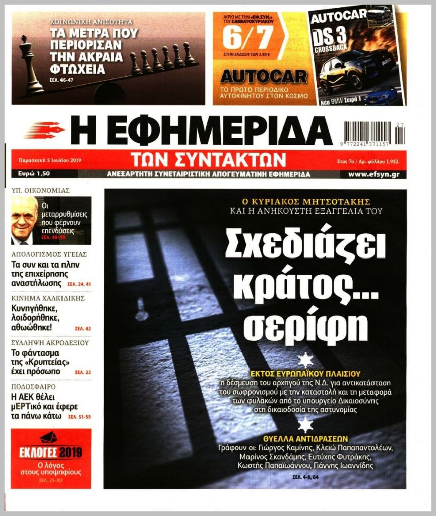 Τα πρωτοσέλιδα των πολιτικών εφημερίδων για σήμερα (5/7)