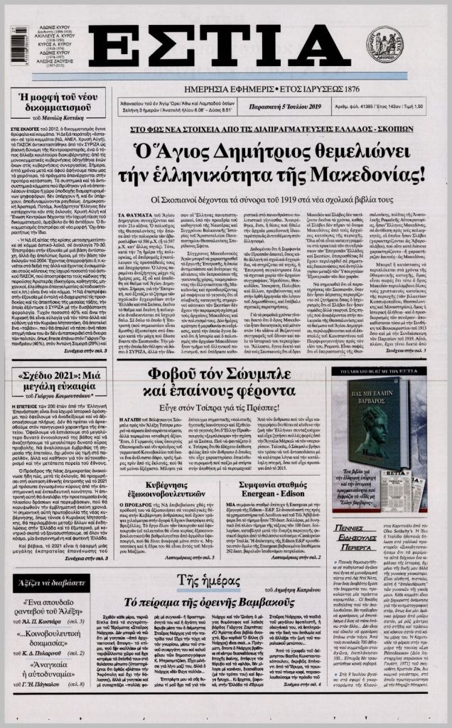 Διαβάστε τα πρωτοσέλιδα των πολιτικών εφημερίδων για σήμερα.