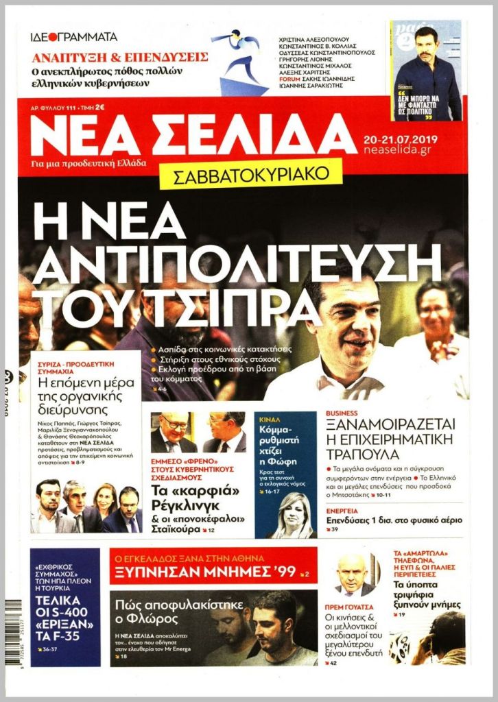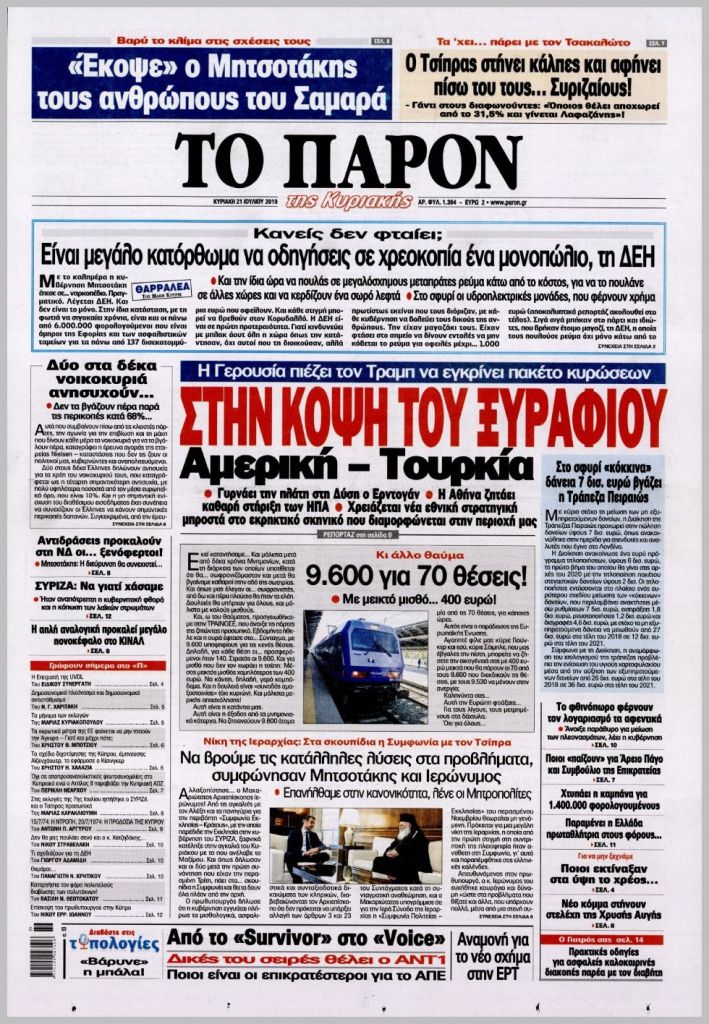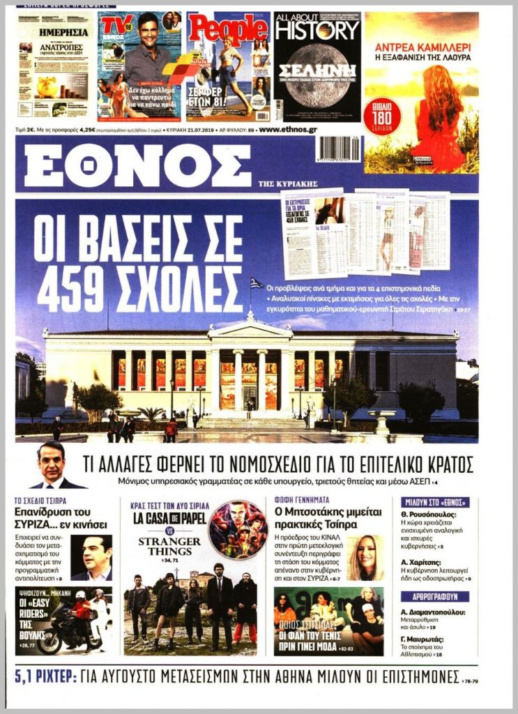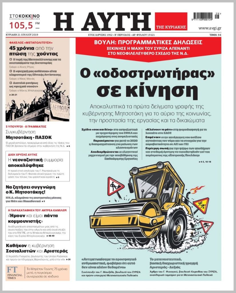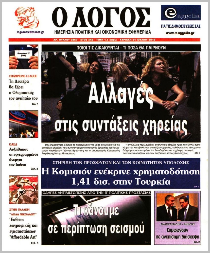 Τα πρωτοσέλιδα των πολιτικών εφημερίδων για σήμερα (21/7)