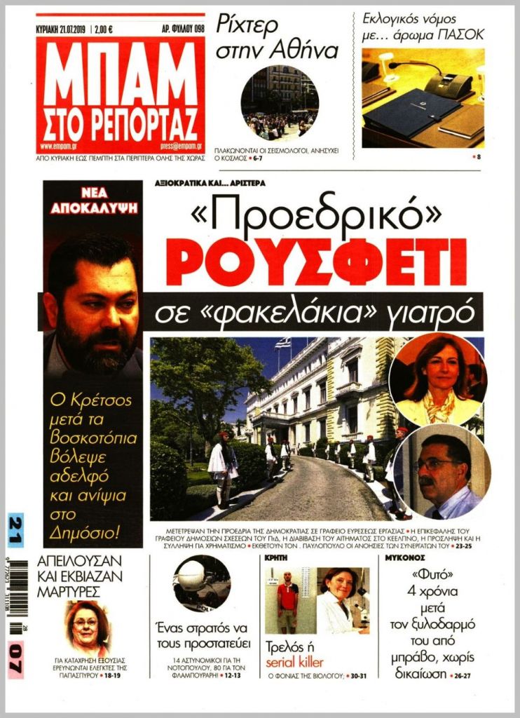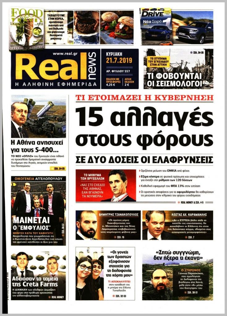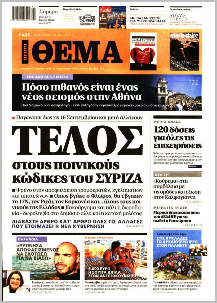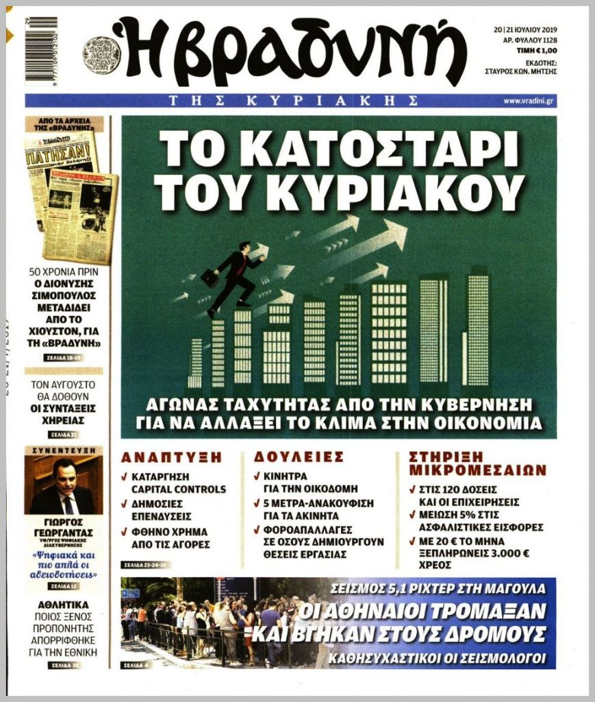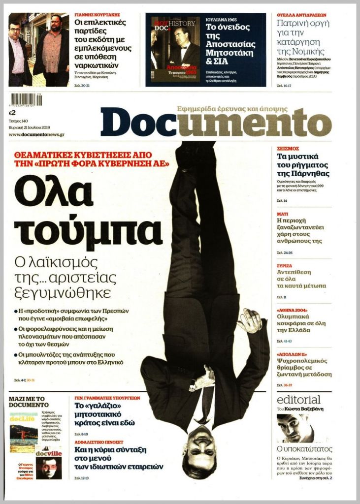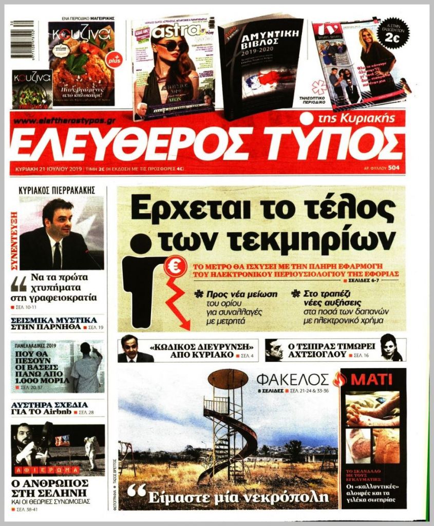 Τα πρωτοσέλιδα των πολιτικών εφημερίδων για σήμερα (21/7)