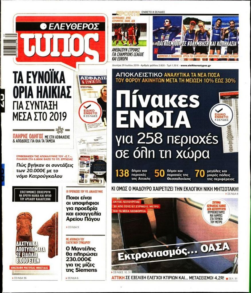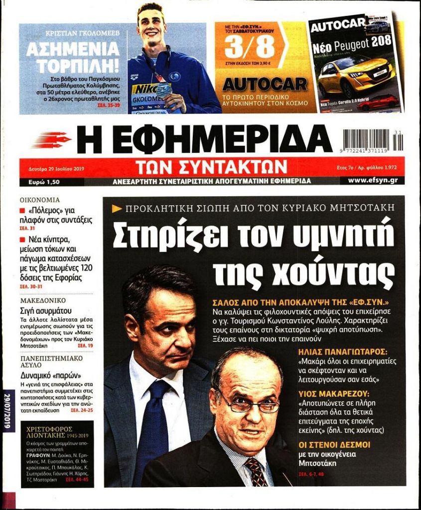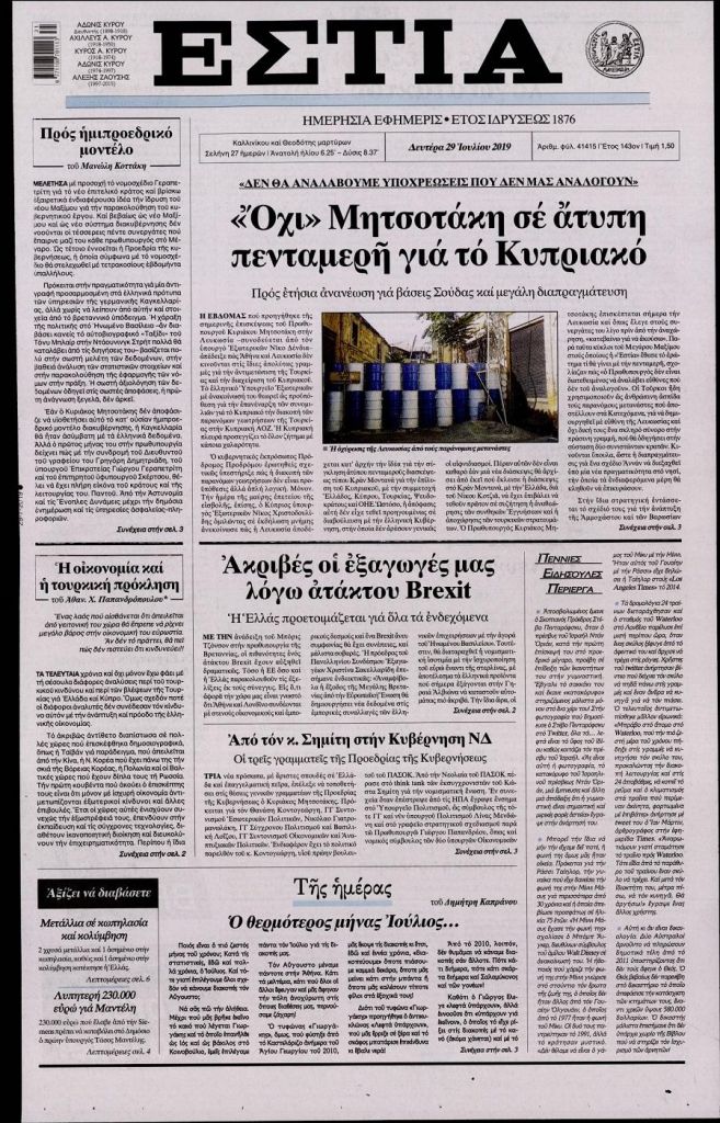 Τα πρωτοσέλιδα των πολιτικών εφημερίδων για σήμερα (29/7)