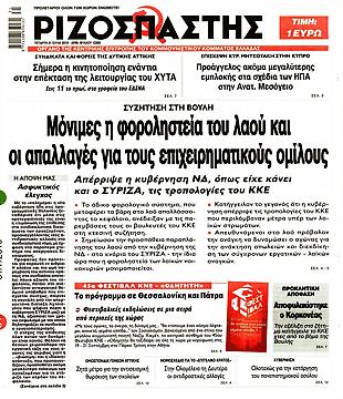 Διαβάστε τα πρωτοσέλιδα των πολιτικών εφημερίδων για σήμερα.