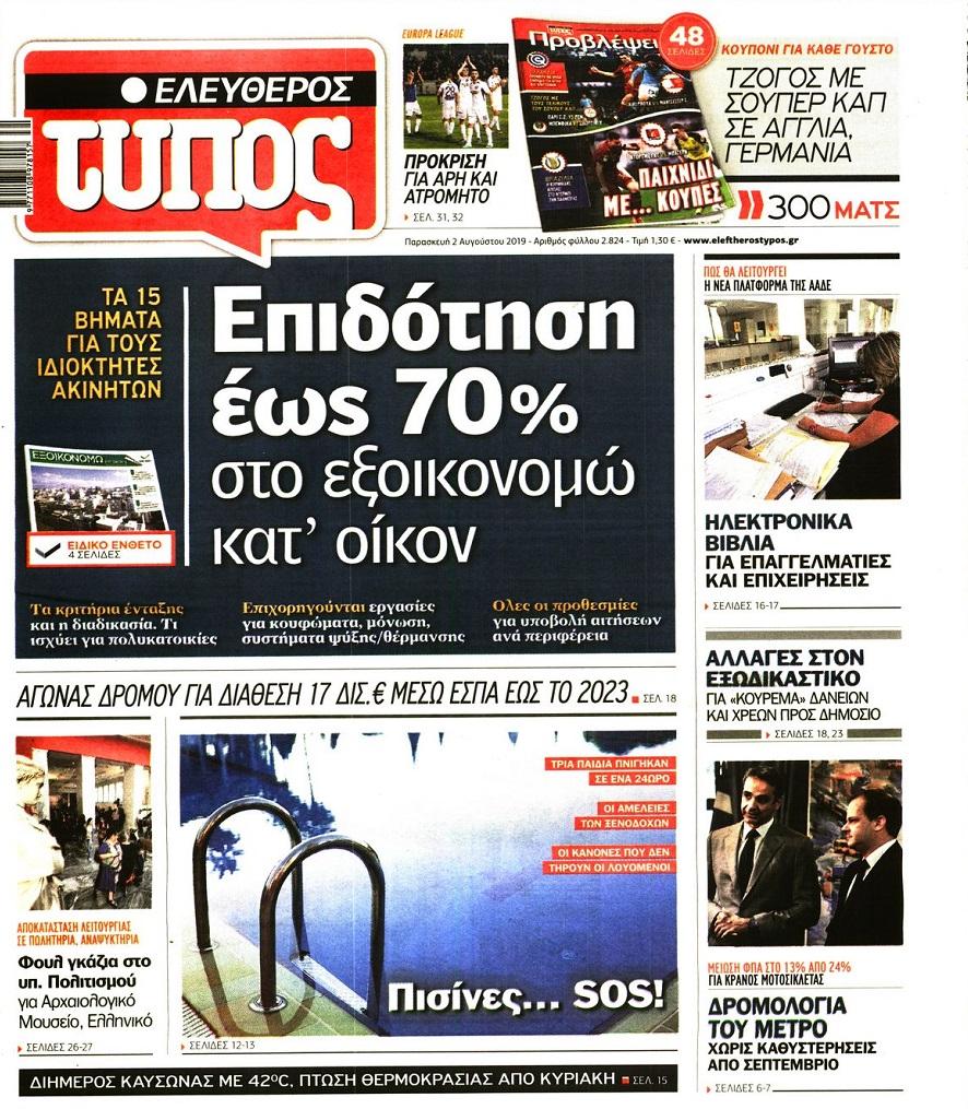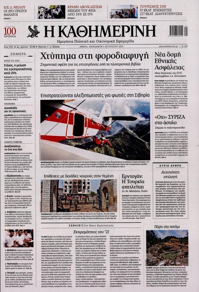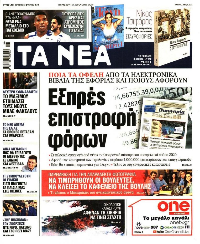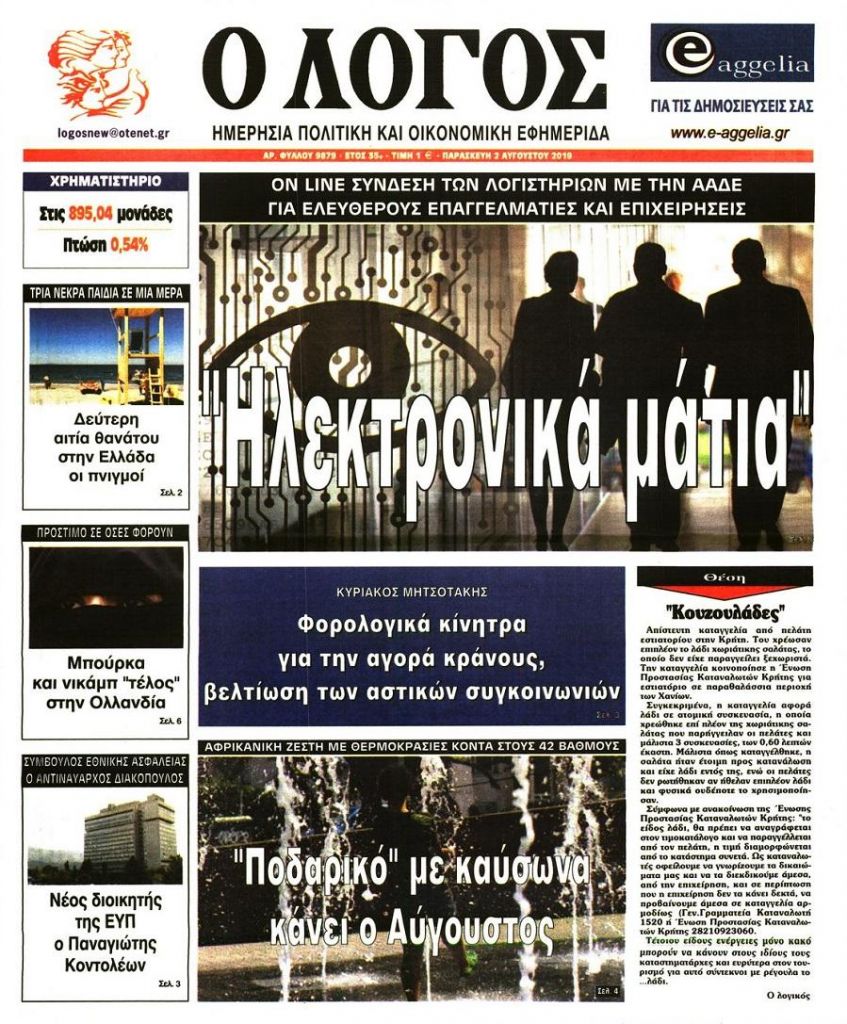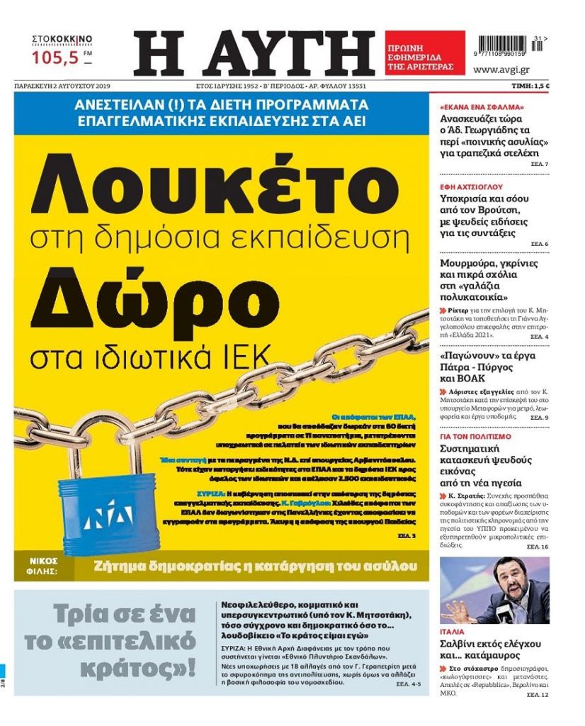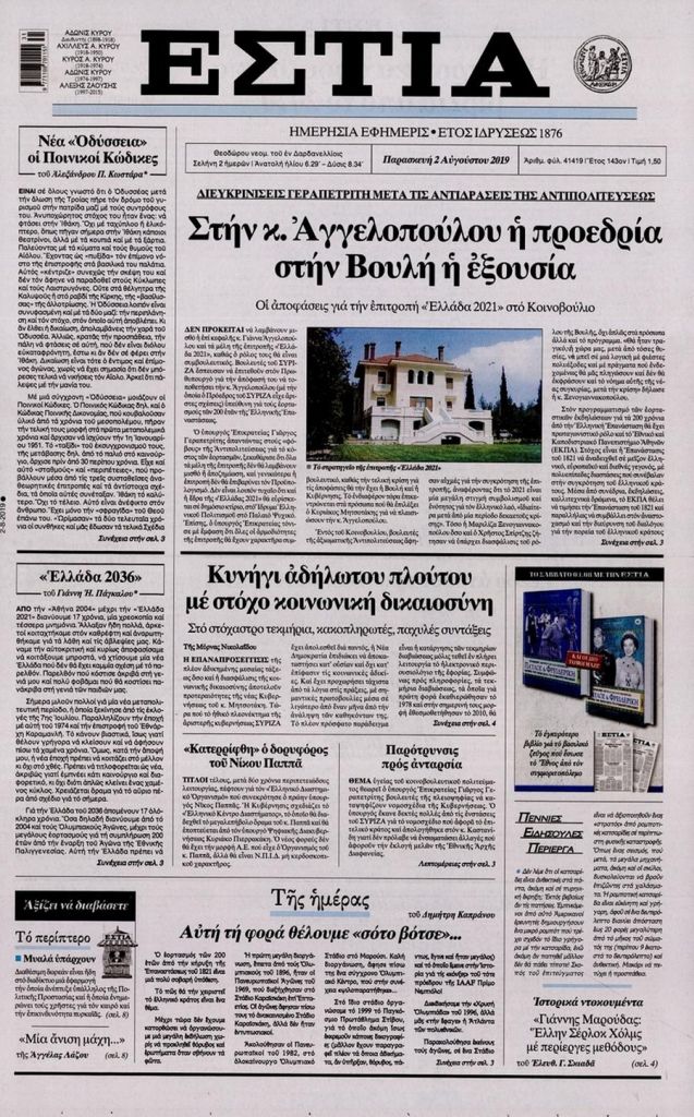 Τα πρωτοσέλιδα των πολιτικών εφημερίδων για σήμερα (2/8)