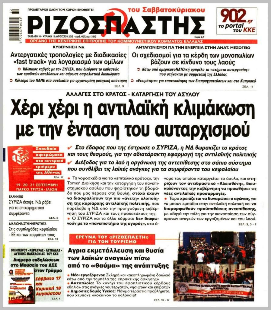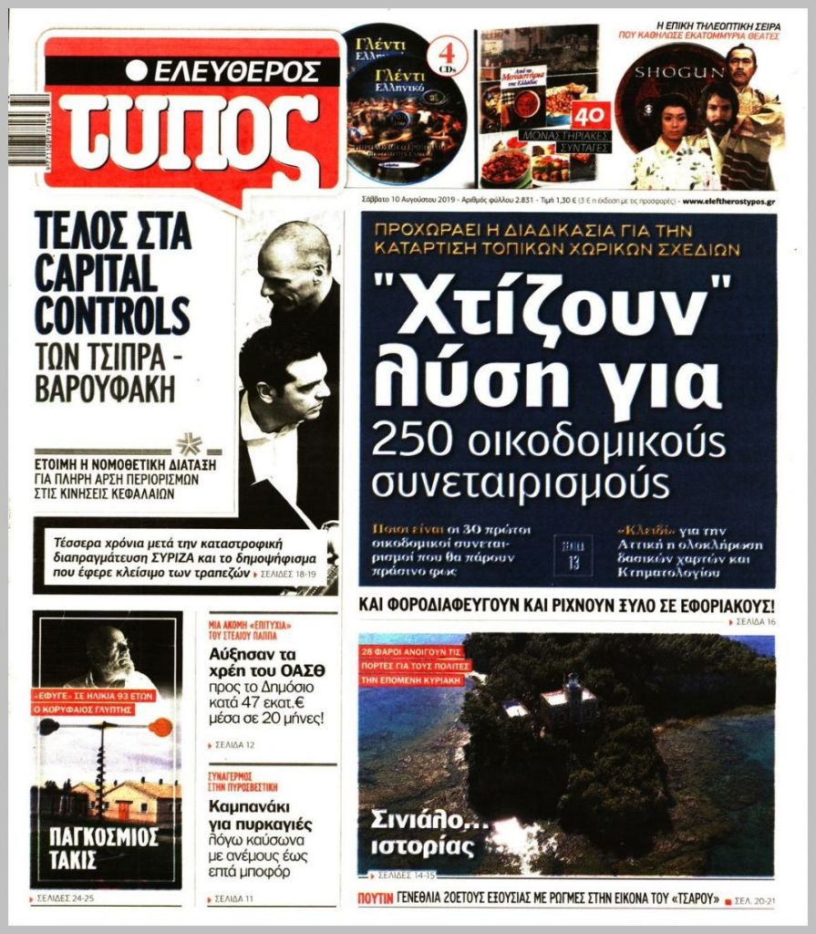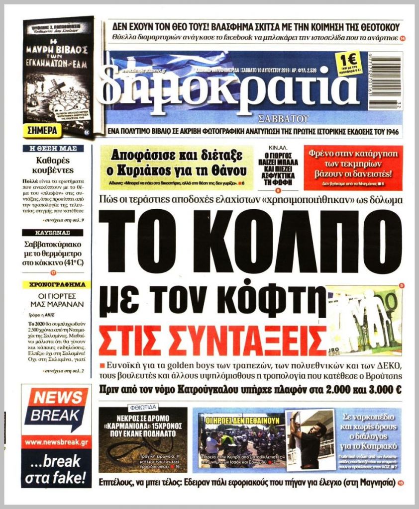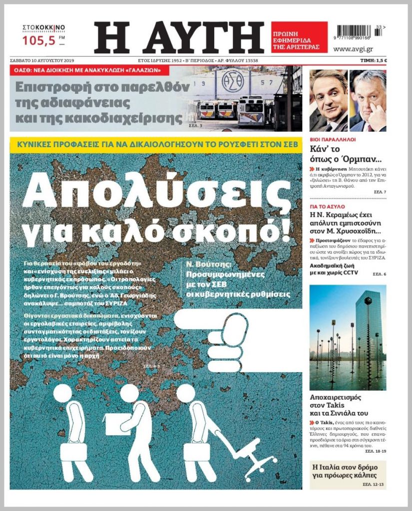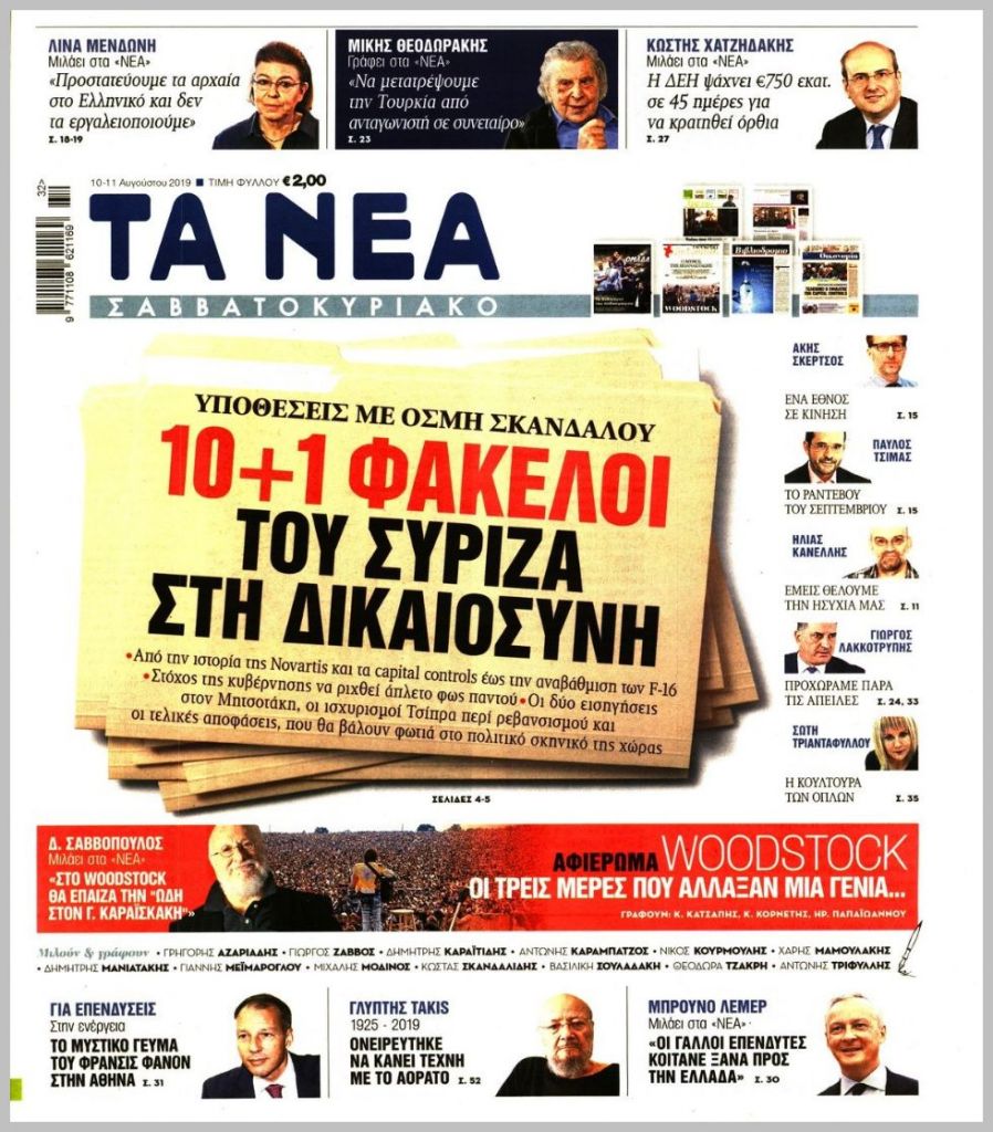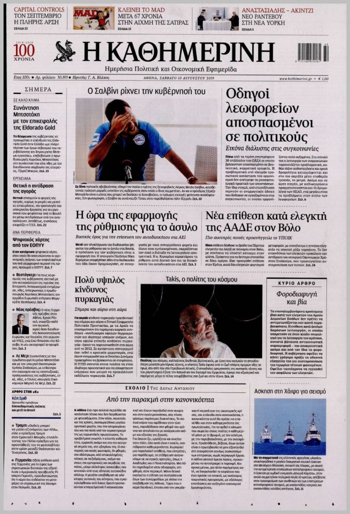 Τα πρωτοσέλιδα των πολιτικών εφημερίδων για σήμερα (10/8)