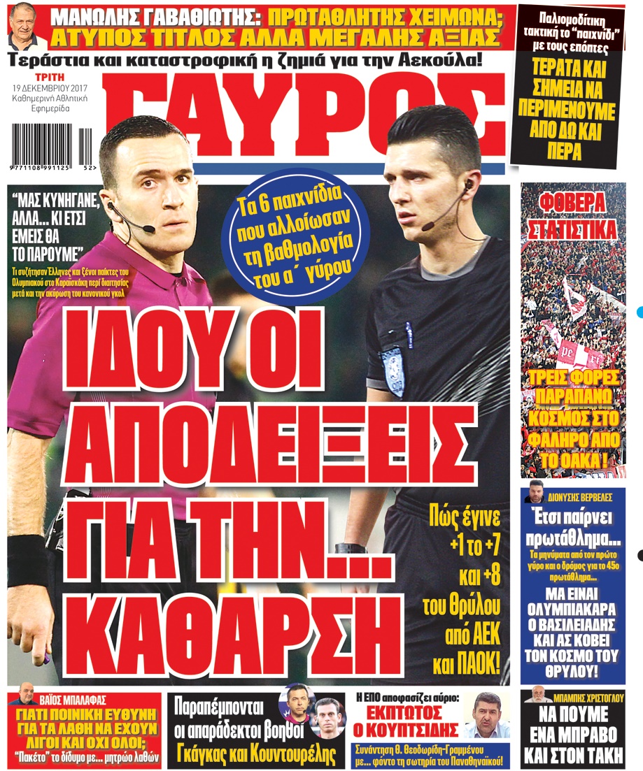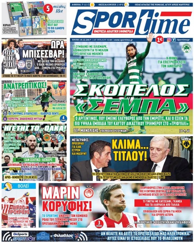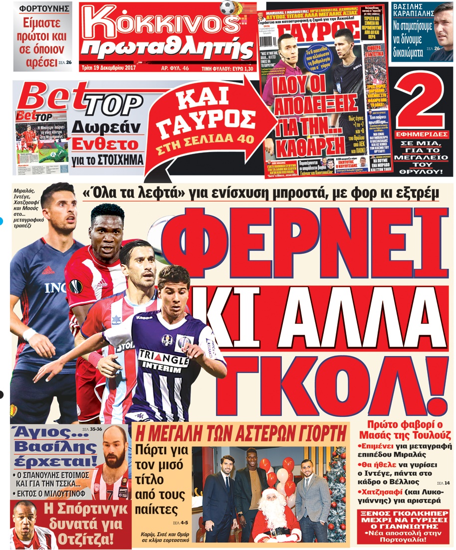 Διαβάστε τα πρωτοσέλιδα των αθλητικών εφημερίδων για σήμερα Τρίτη (19/12).