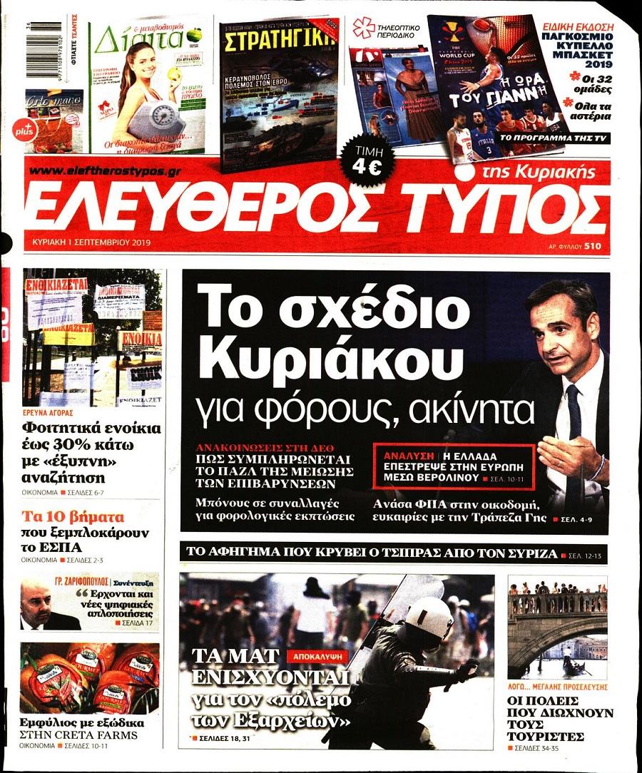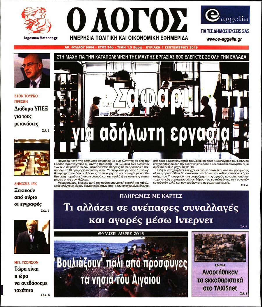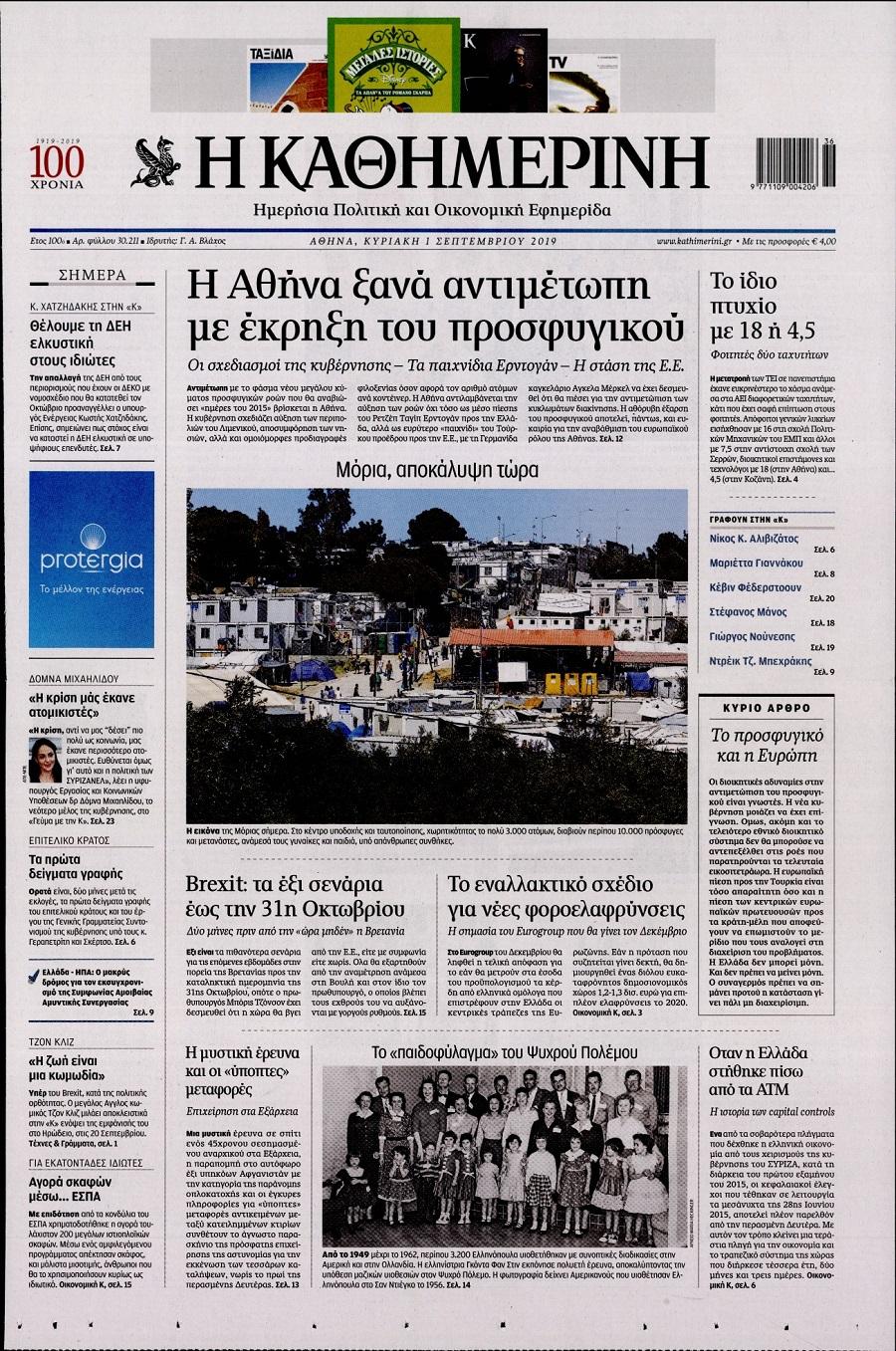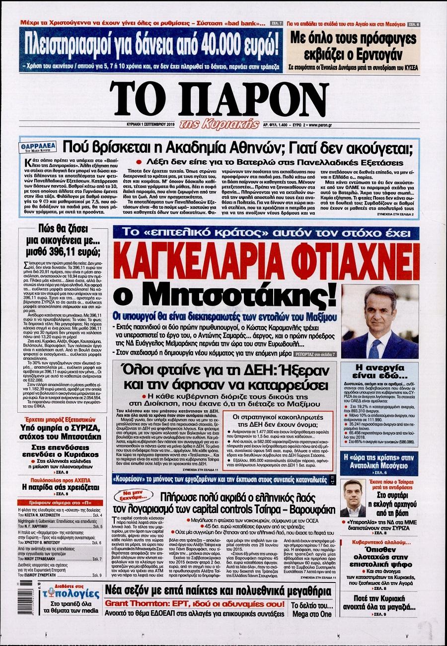 Τα πρωτοσέλιδα των πολιτικών εφημερίδων για σήμερα (1/9)
