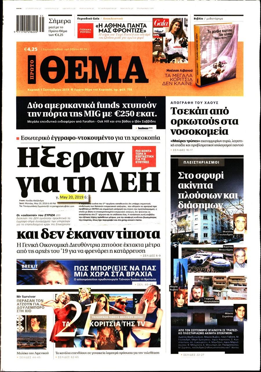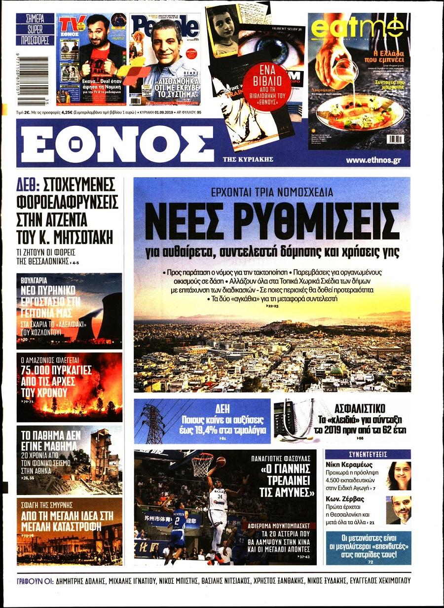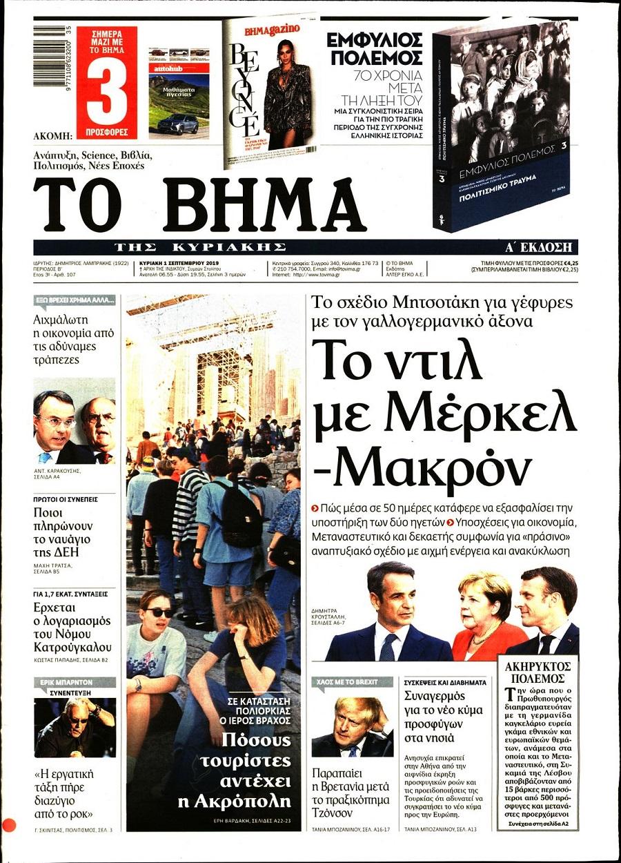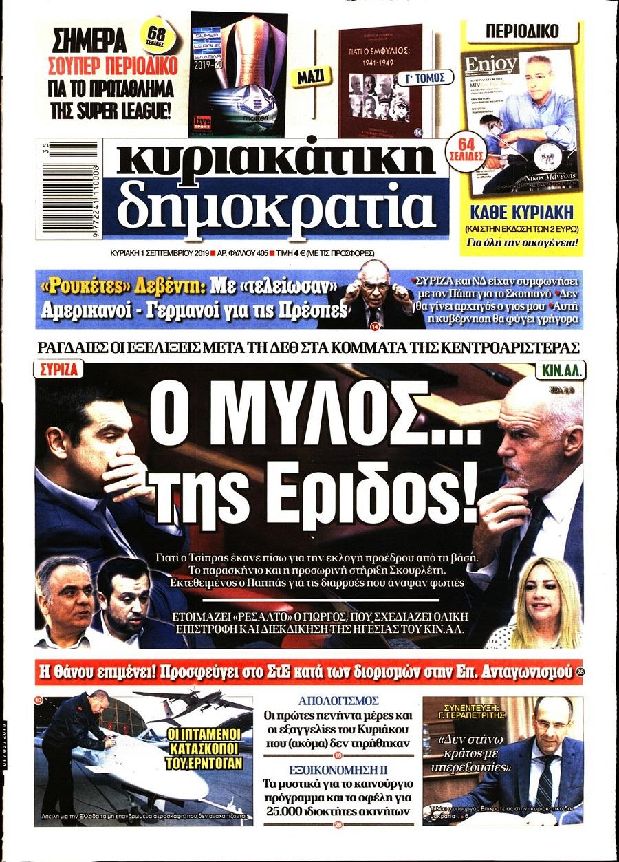 Τα πρωτοσέλιδα των πολιτικών εφημερίδων για σήμερα (1/9)