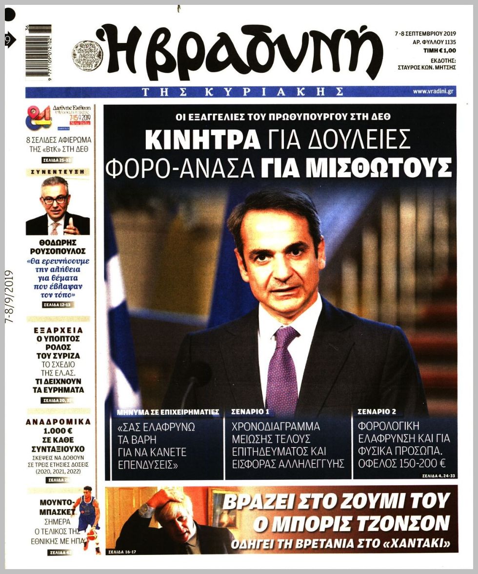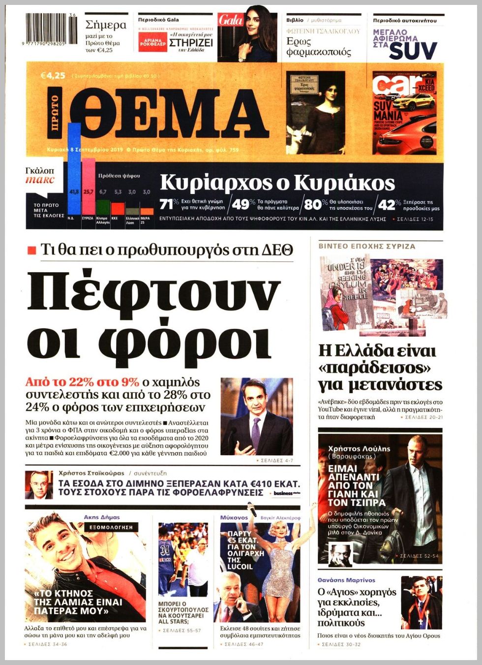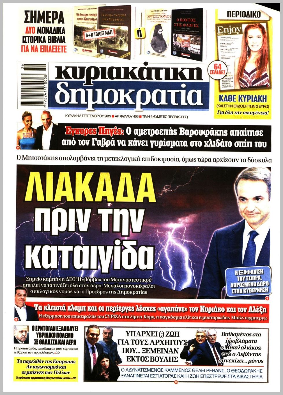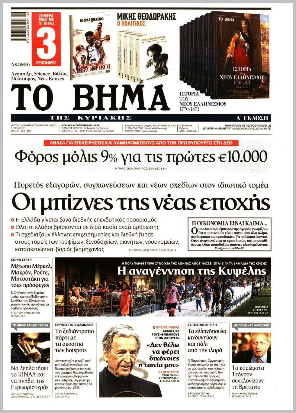 Τα πρωτοσέλιδα των πολιτικών εφημερίδων για σήμερα (8/9)