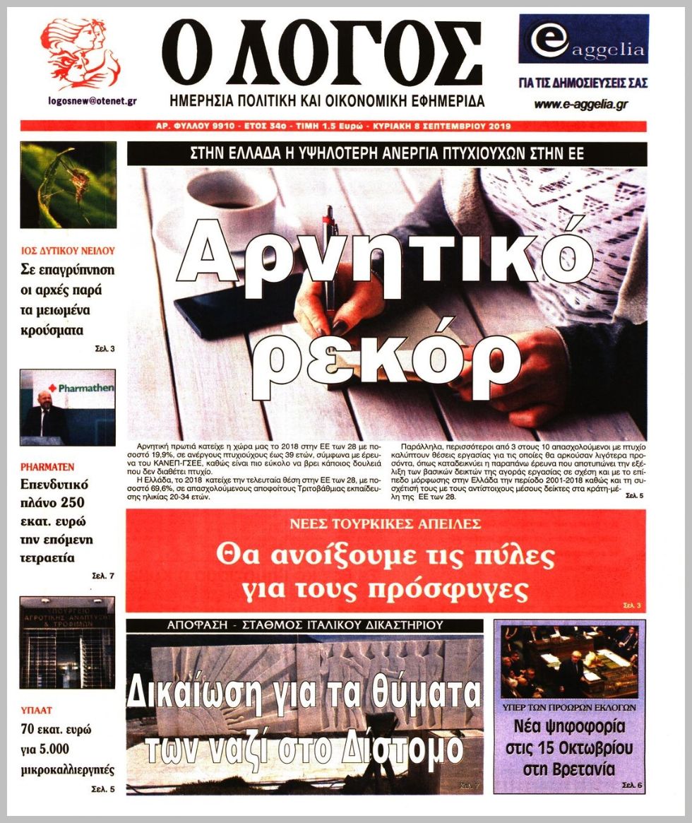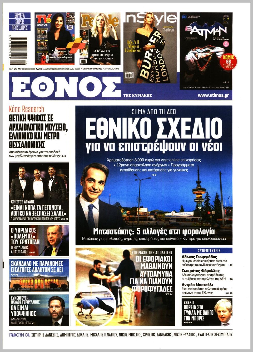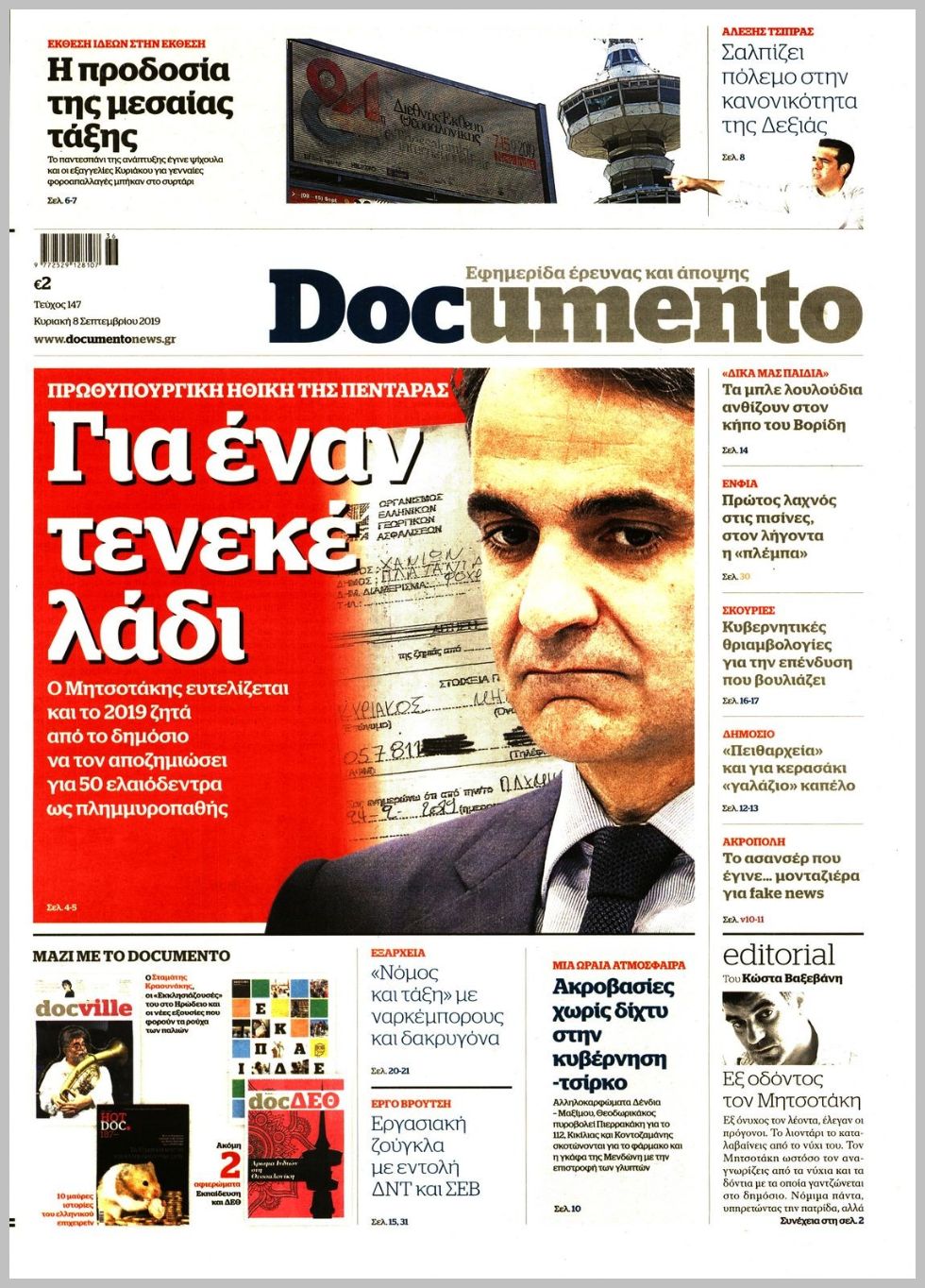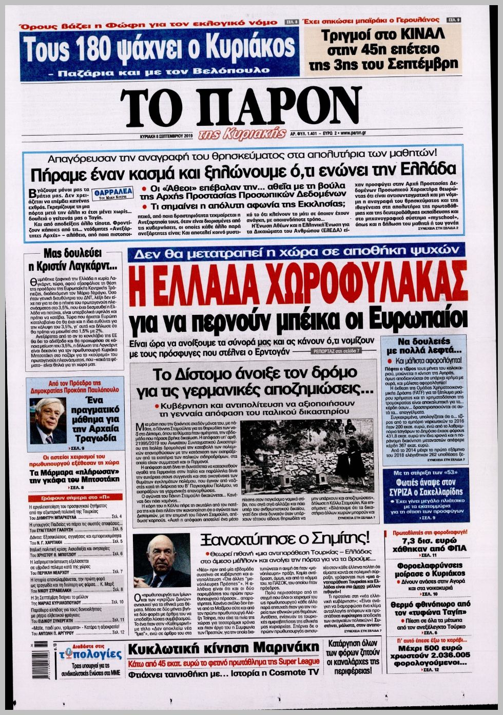 Τα πρωτοσέλιδα των πολιτικών εφημερίδων για σήμερα (8/9)