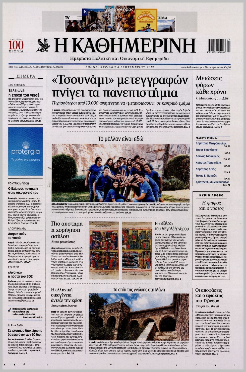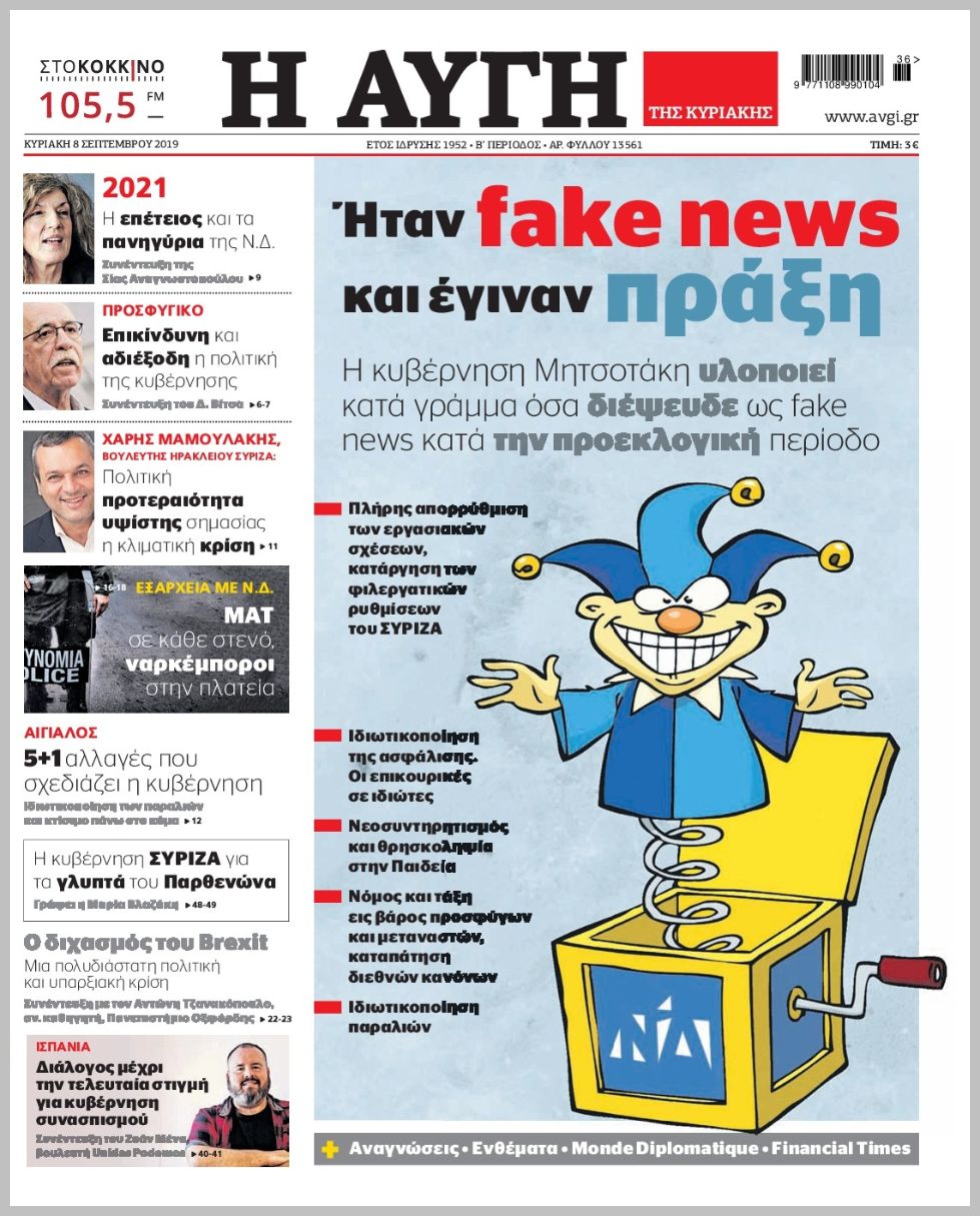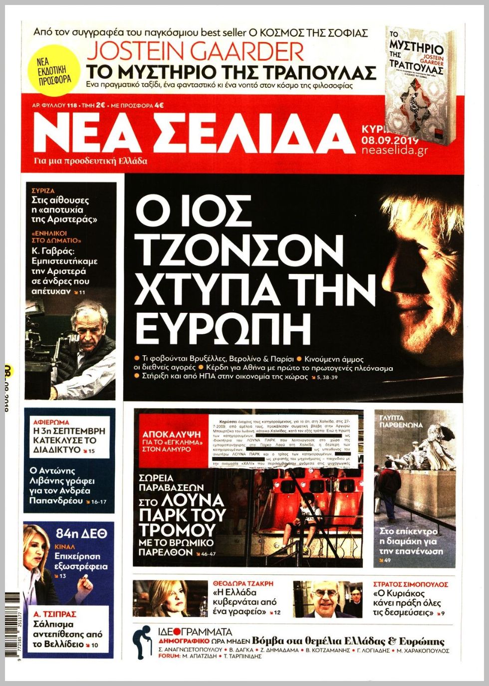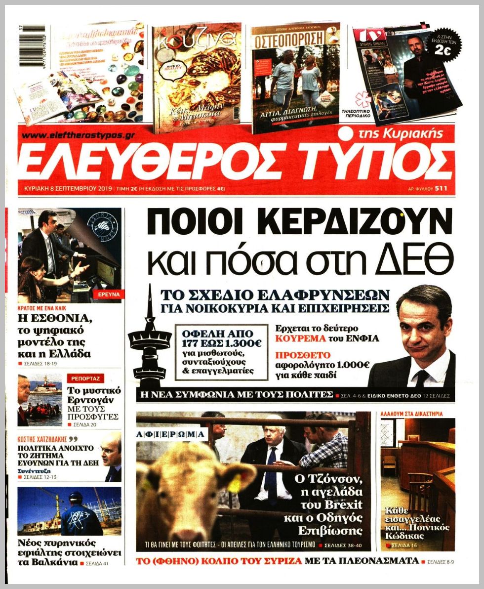 Τα πρωτοσέλιδα των πολιτικών εφημερίδων για σήμερα (8/9)