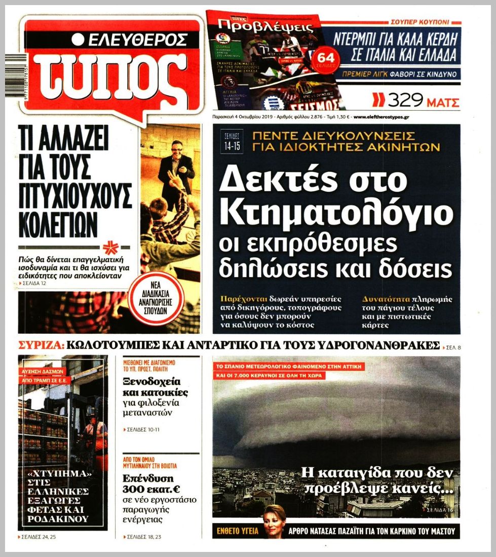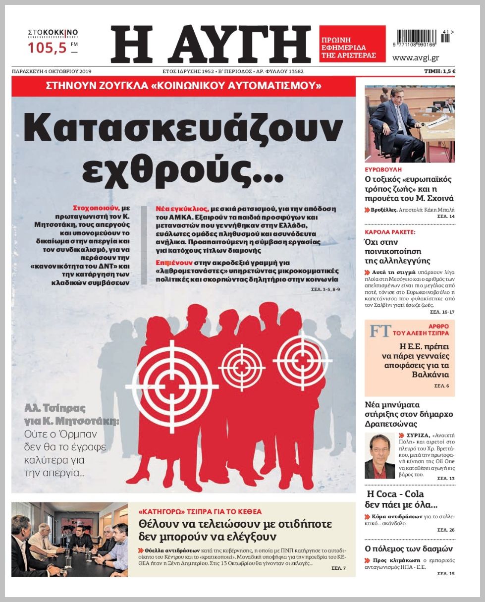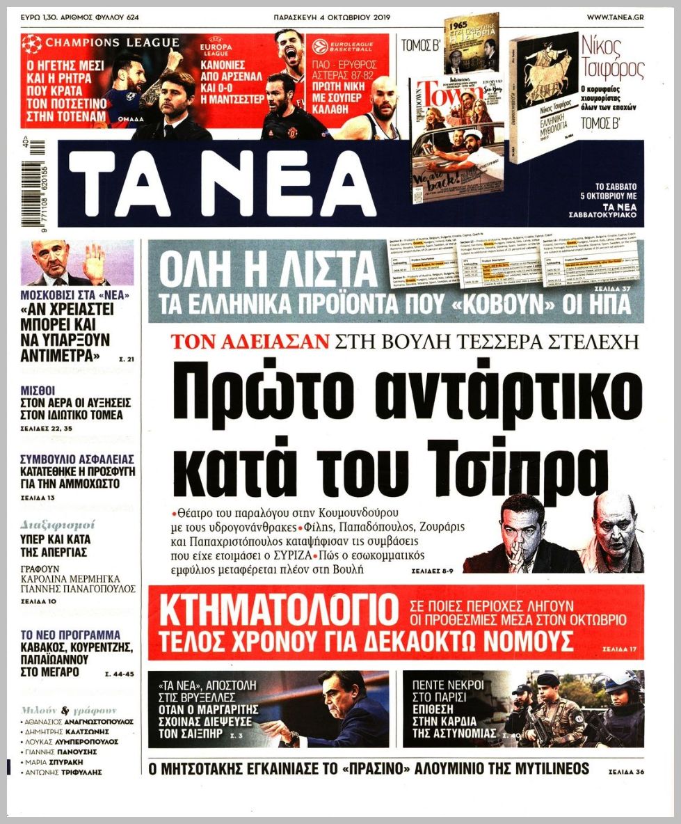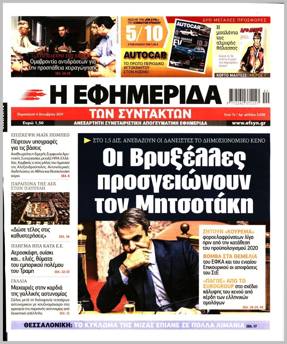Τα πρωτοσέλιδα των πολιτικών εφημερίδων για σήμερα (4/10)