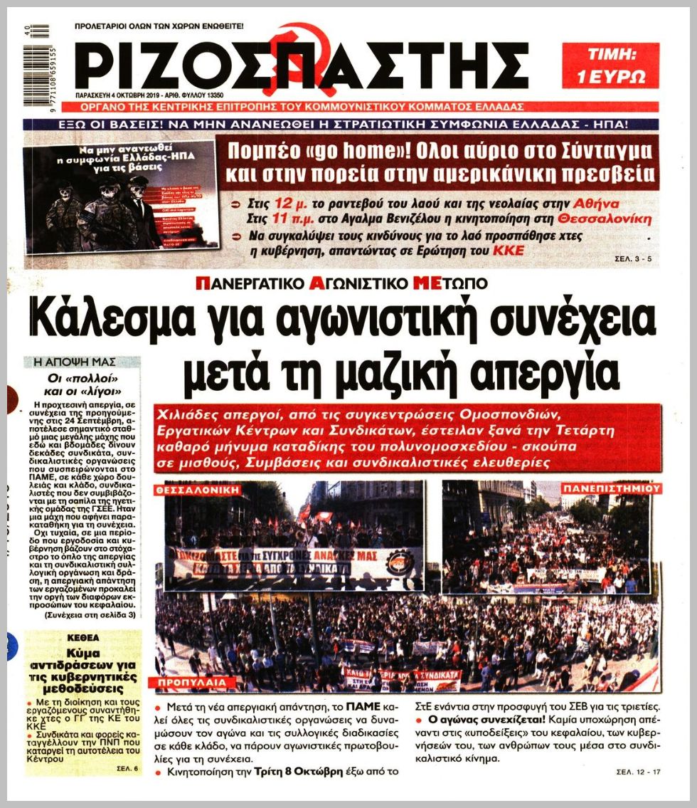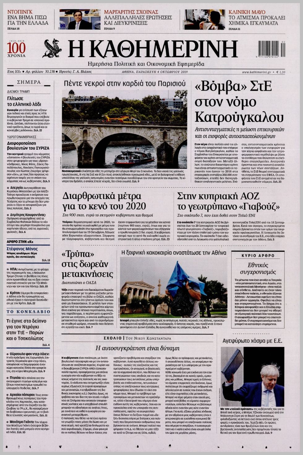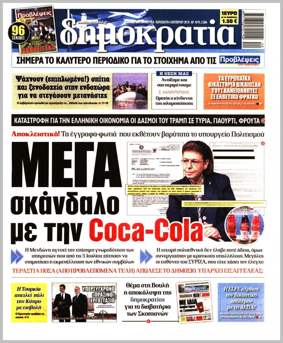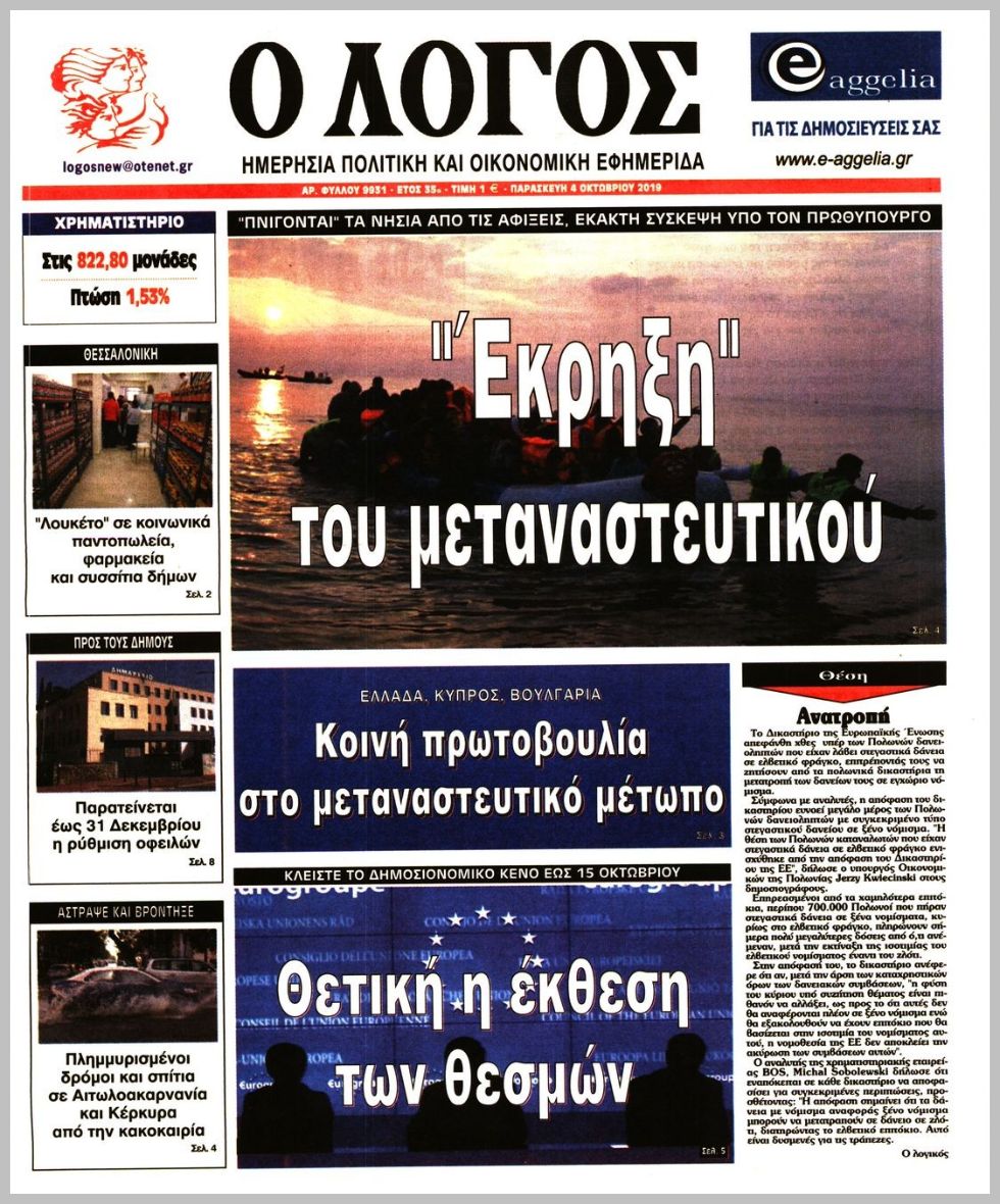 Τα πρωτοσέλιδα των πολιτικών εφημερίδων για σήμερα (4/10)
