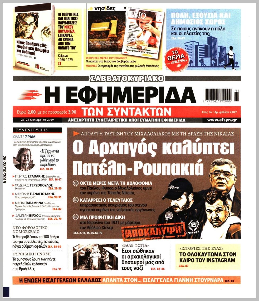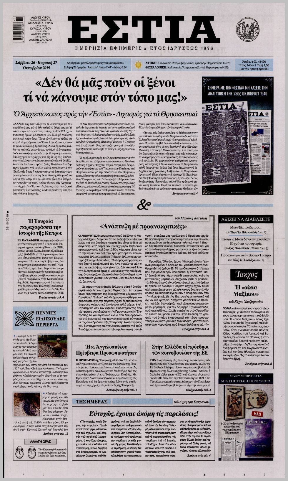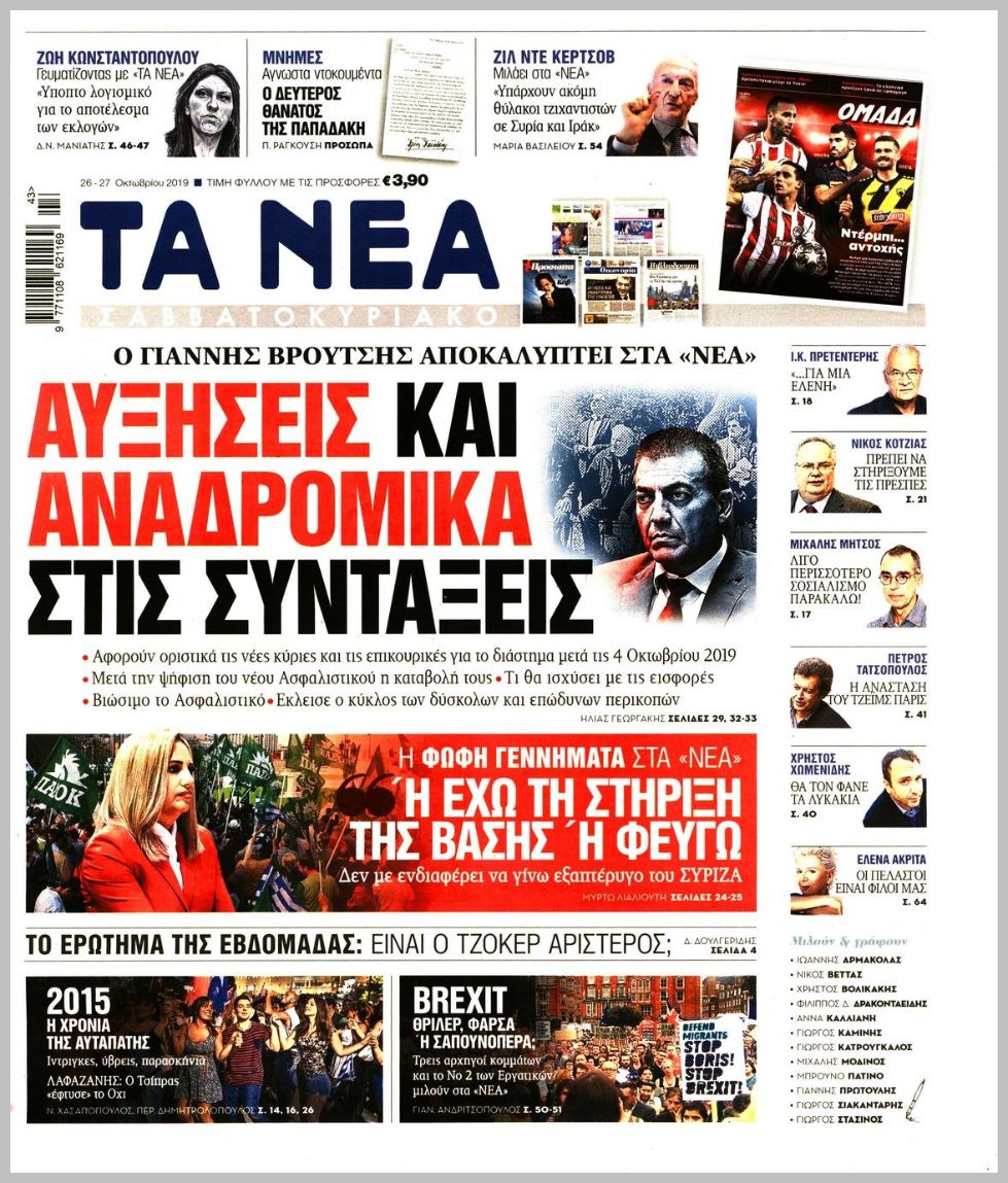 Τα πρωτοσέλιδα των πολιτικών εφημερίδων για σήμερα (26/10)