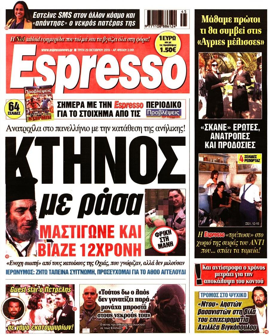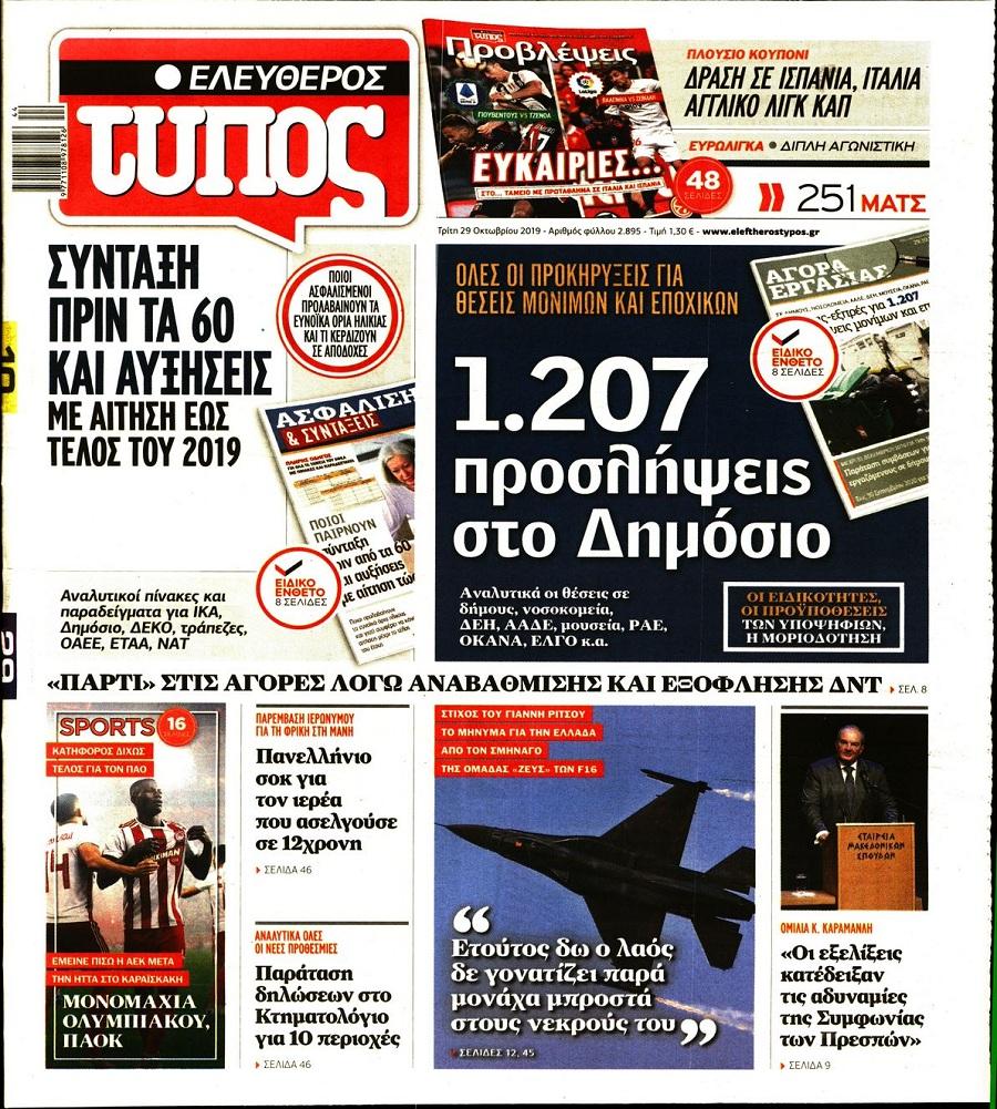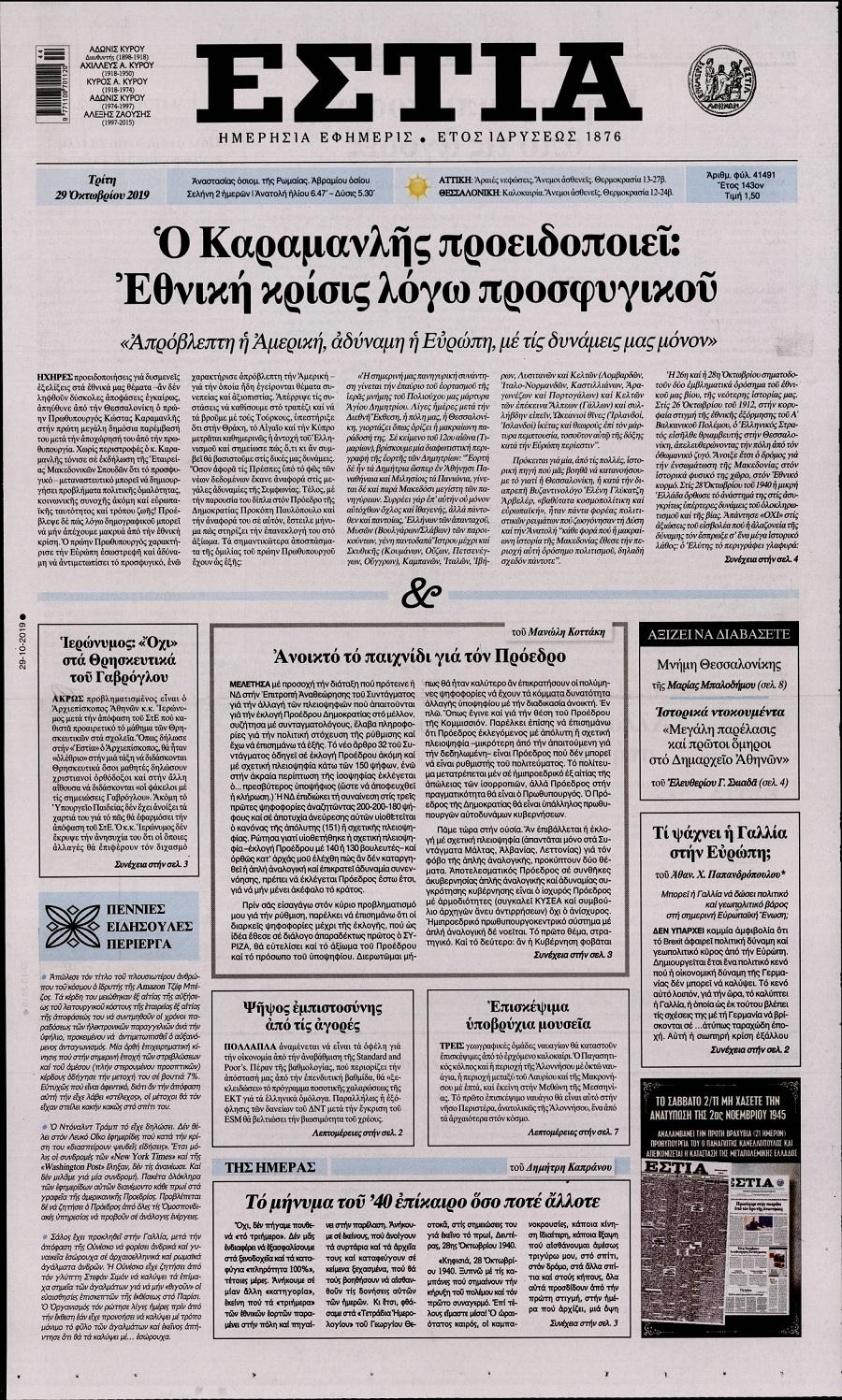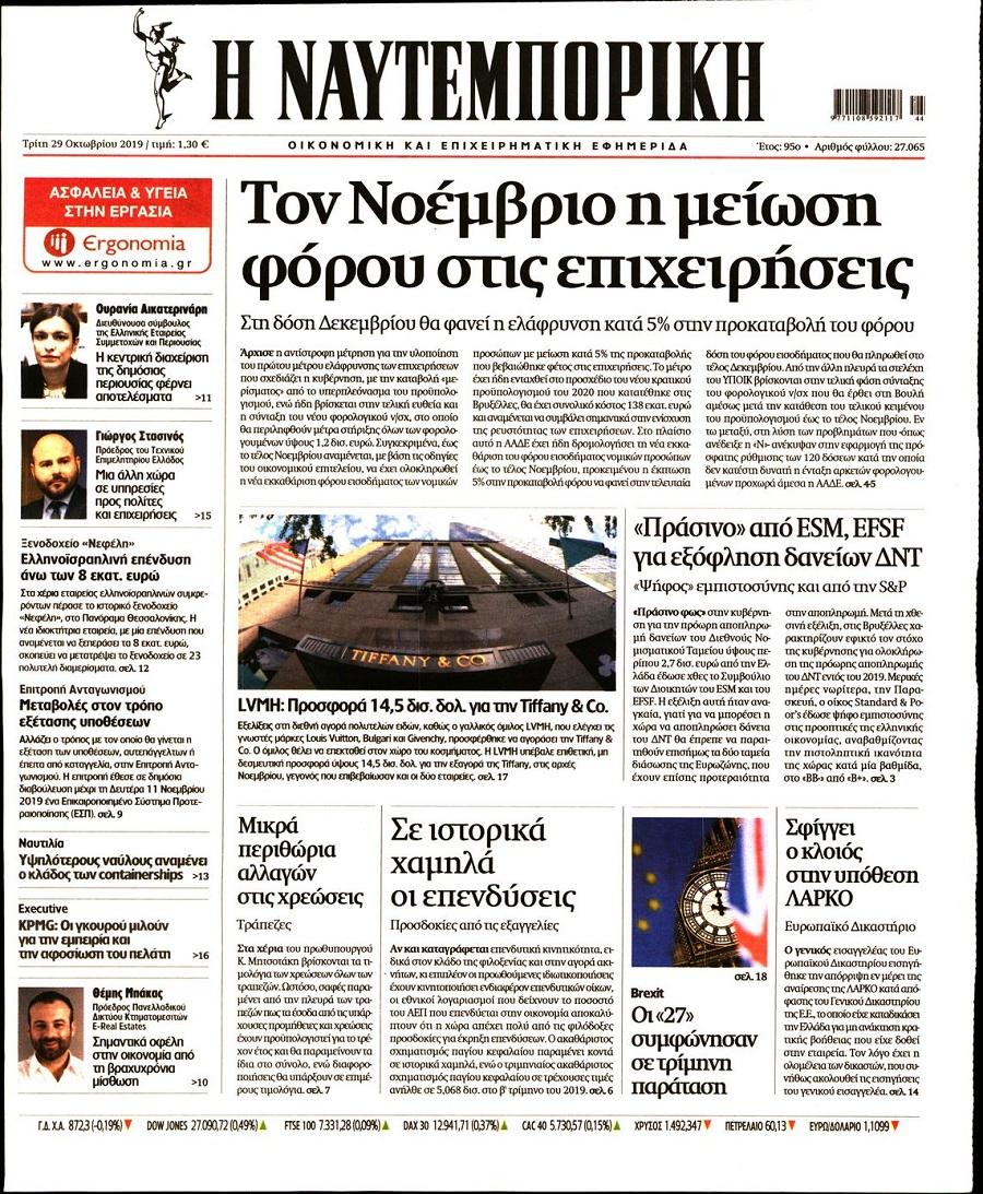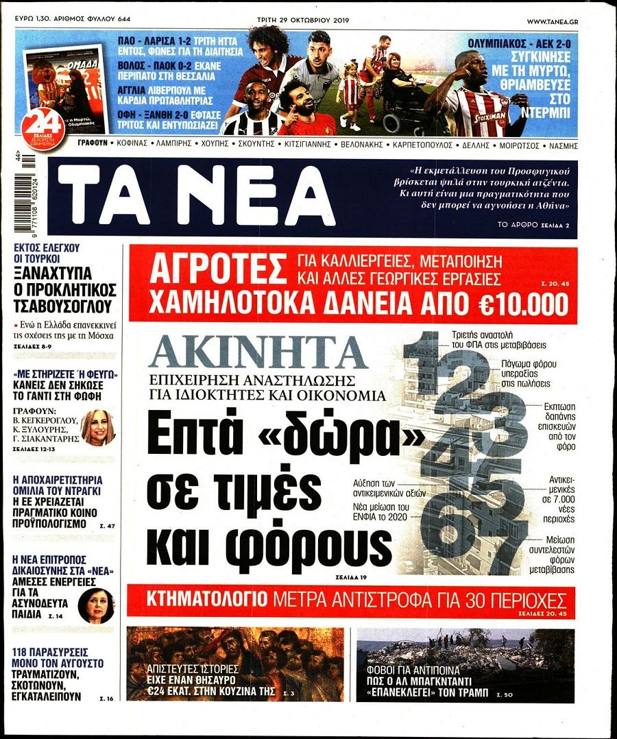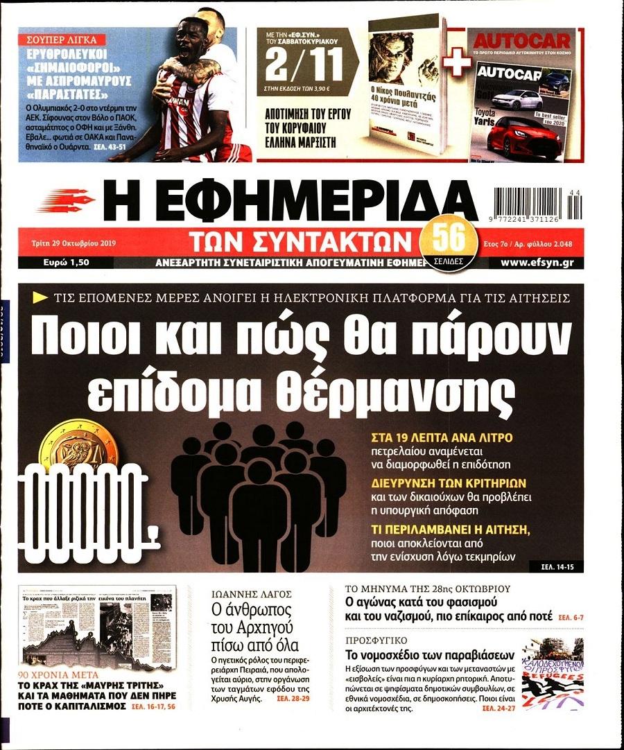 Τα πρωτοσέλιδα των πολιτικών εφημερίδων για σήμερα (29/10)