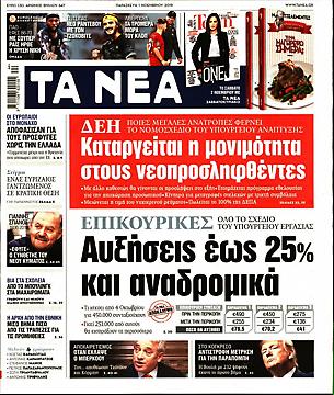 Τα πρωτοσέλιδα των πολιτικών εφημερίδων για σήμερα (1/11)