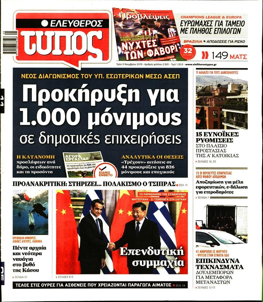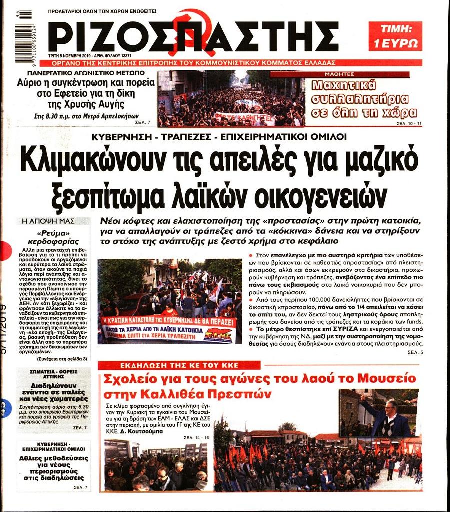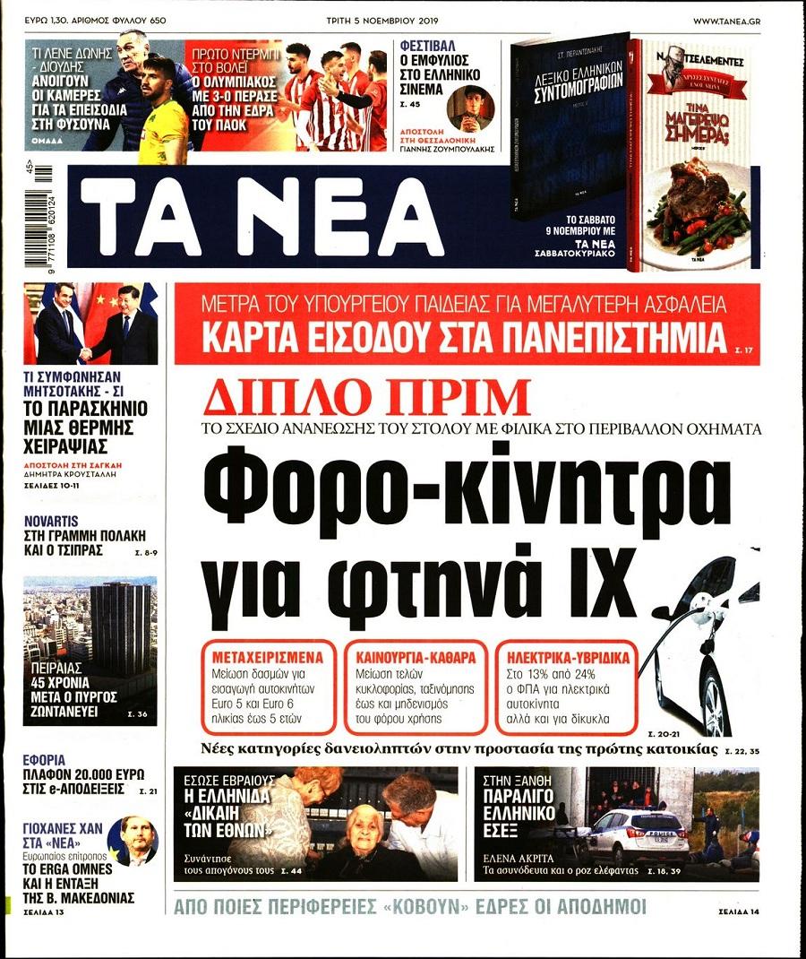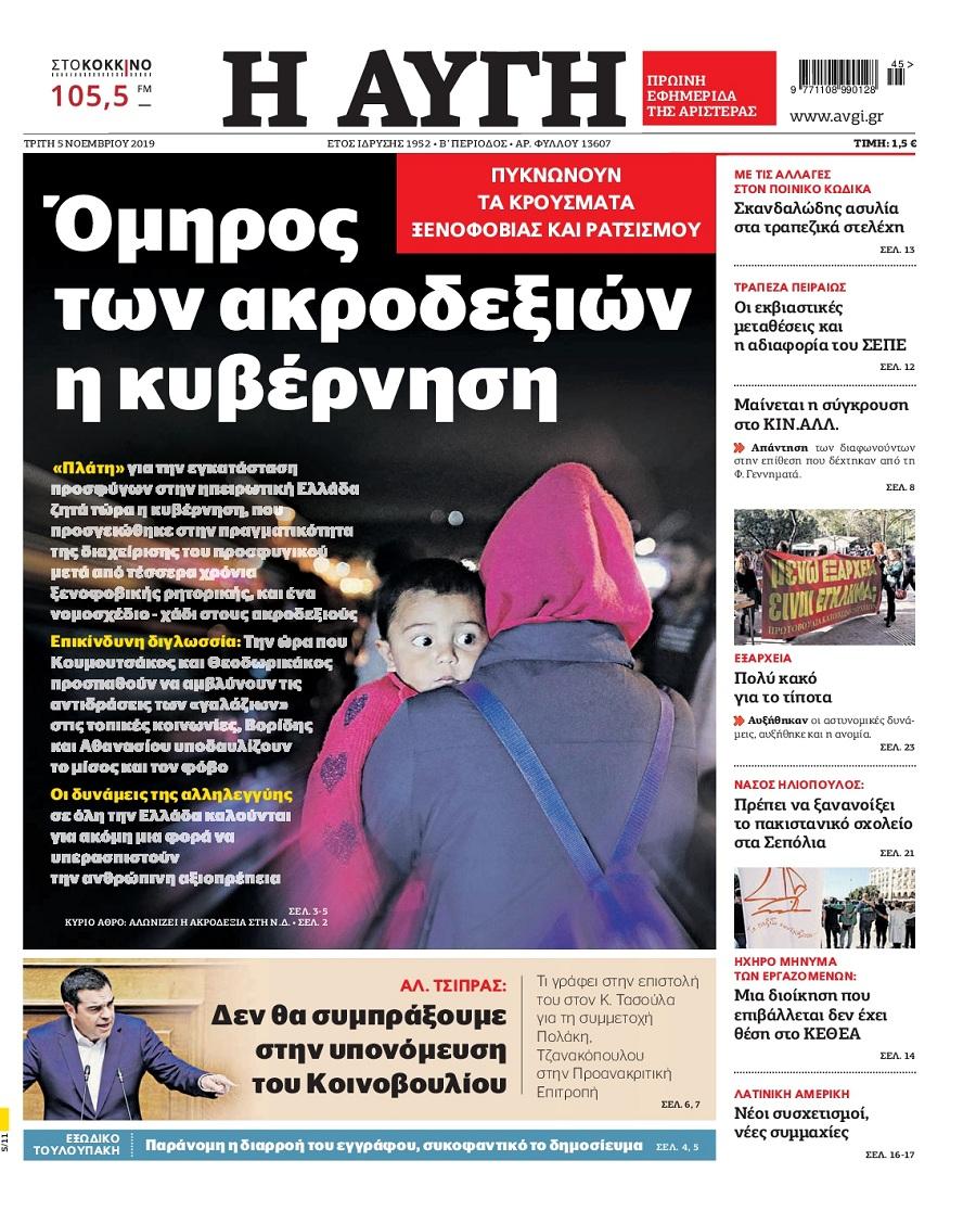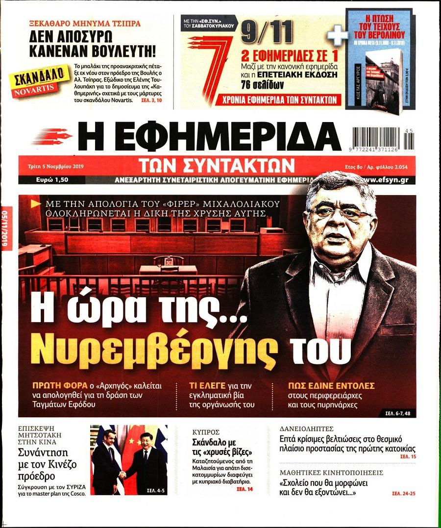 Τα πρωτοσέλιδα των πολιτικών εφημερίδων για σήμερα (5/11)