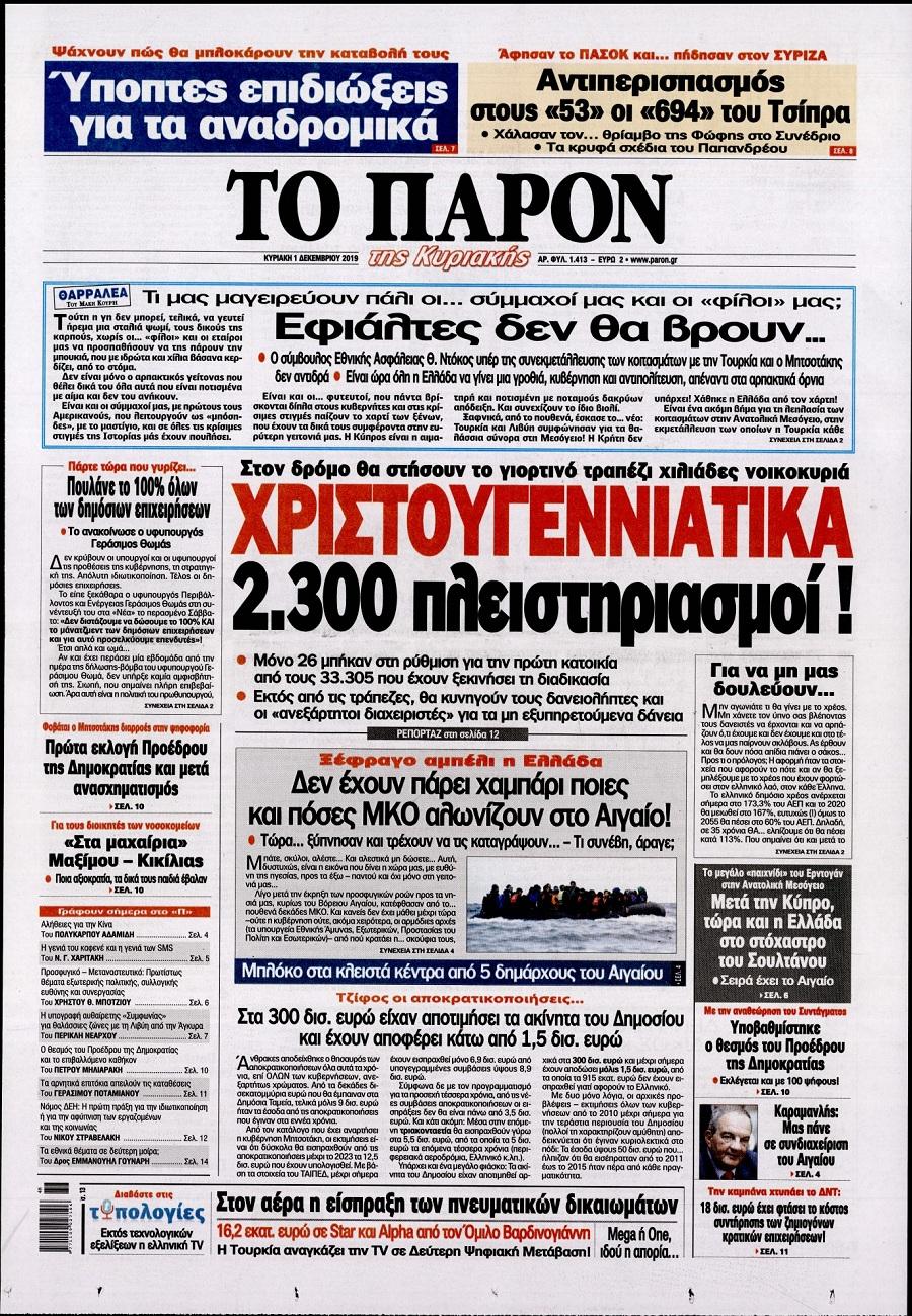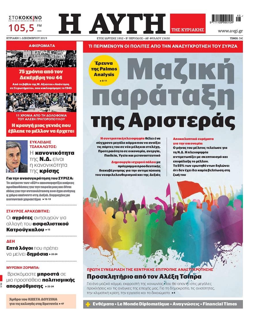 Τα πρωτοσέλιδα των πολιτικών εφημερίδων σήμερα (1/12)
