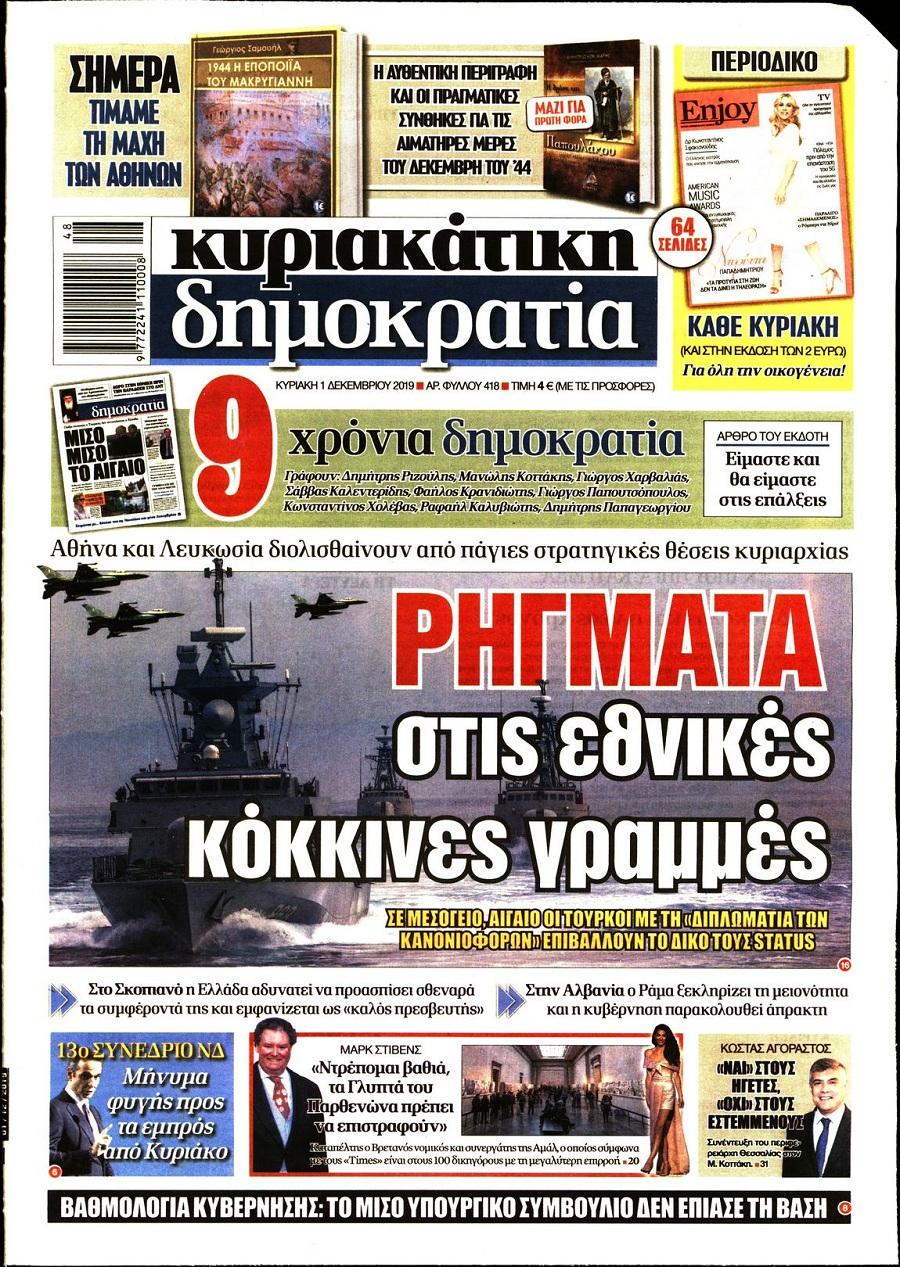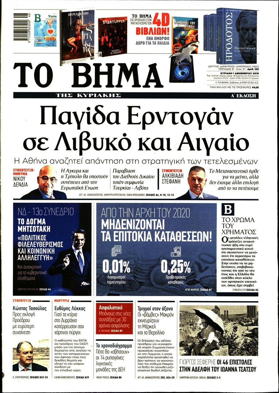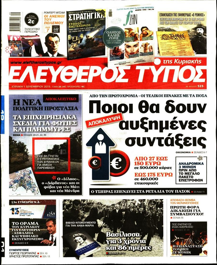 Τα πρωτοσέλιδα των πολιτικών εφημερίδων σήμερα (1/12).