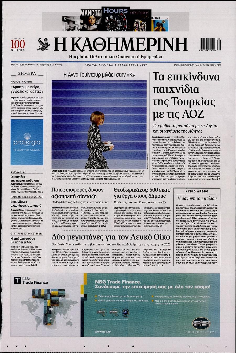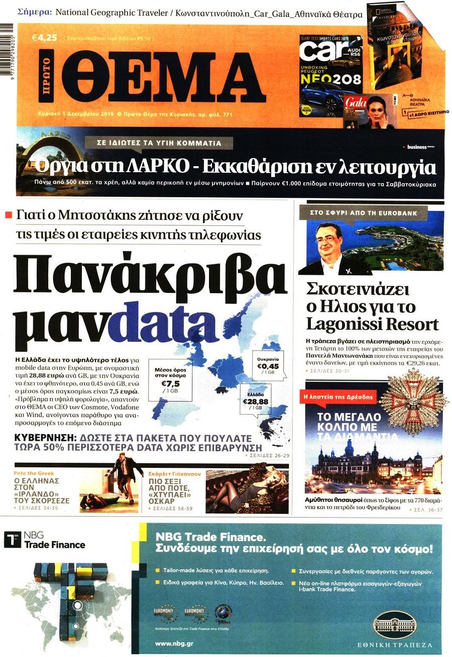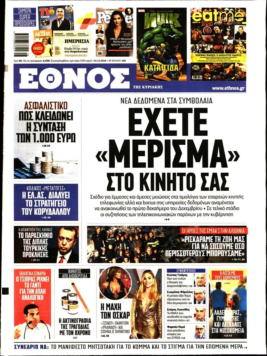 Τα πρωτοσέλιδα των πολιτικών εφημερίδων σήμερα (1/12).