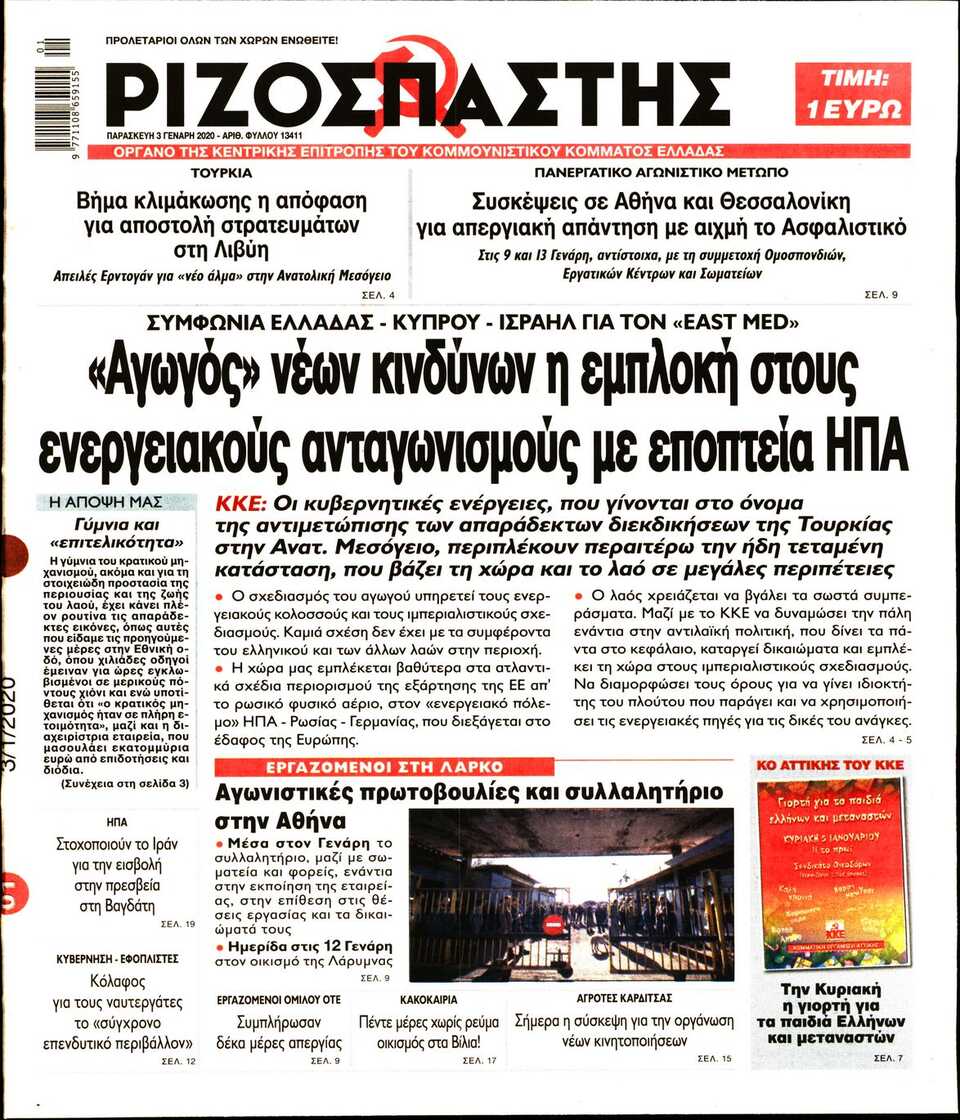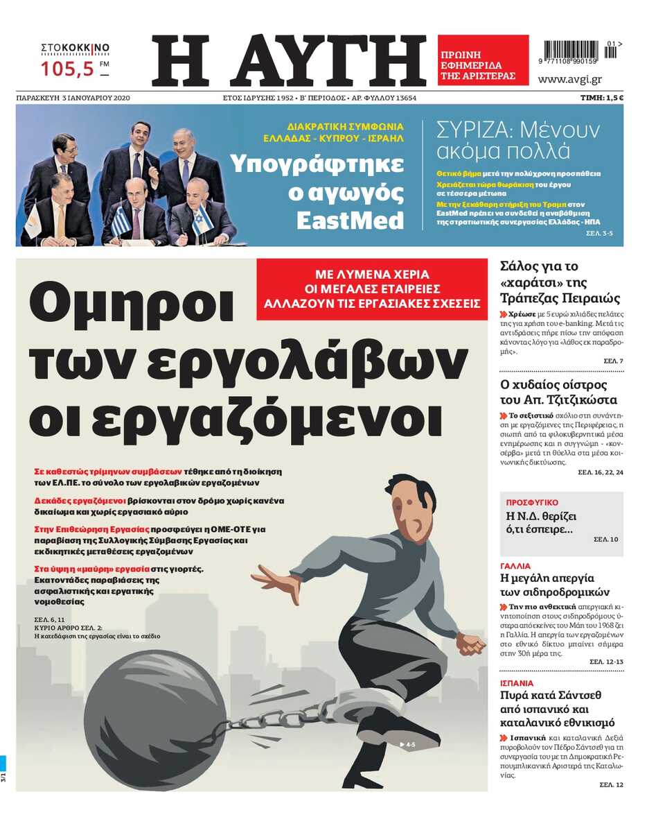 Τα πολιτικά πρωτοσέλιδα σήμερα (3/1)