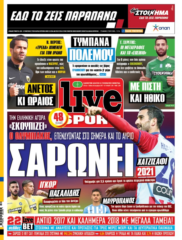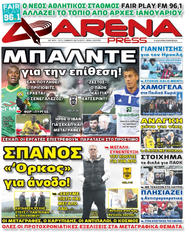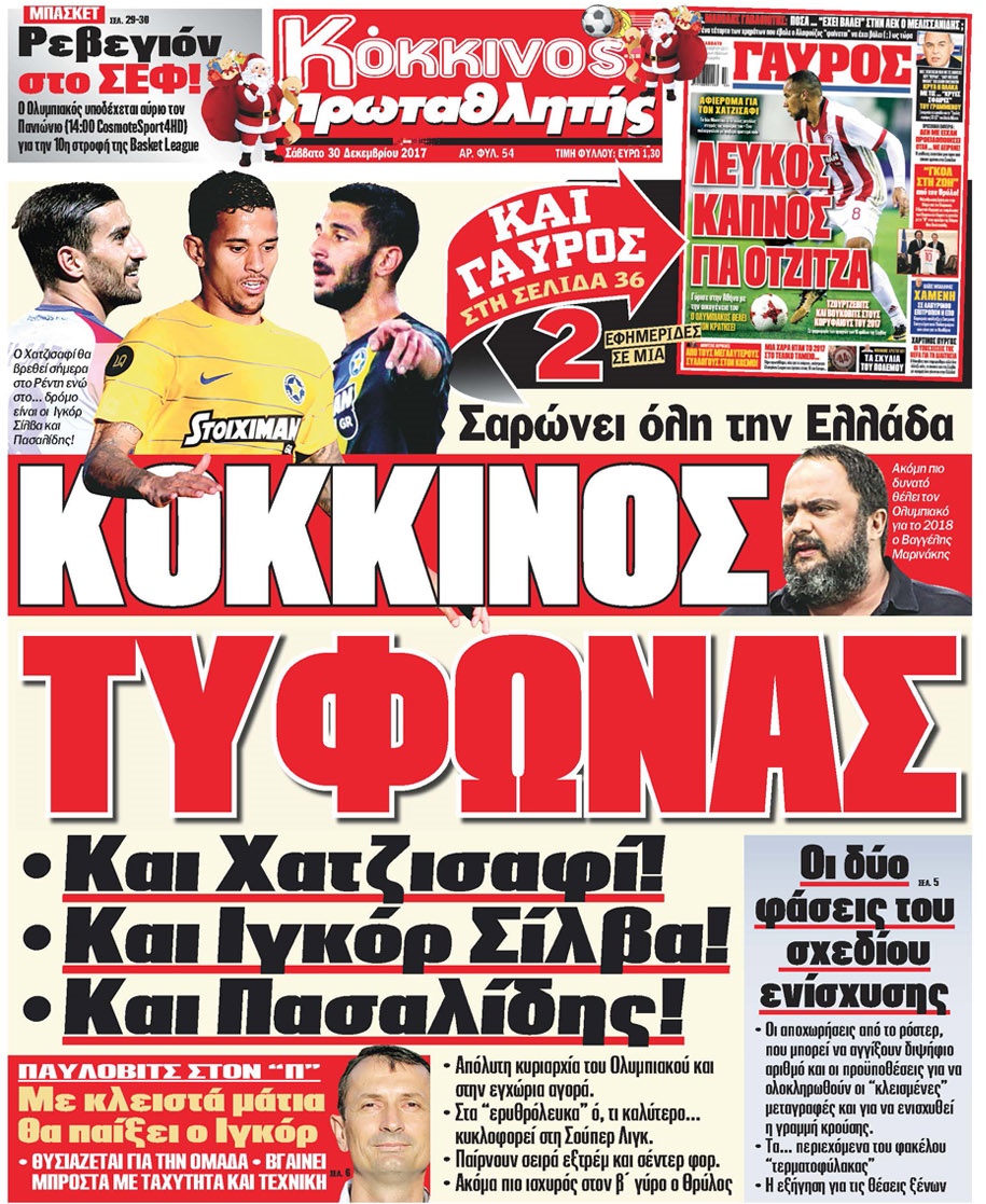 Διαβάστε τα πρωτοσέλιδα των αθλητικών εφημερίδων για σήμερα Σάββατο (30/12).