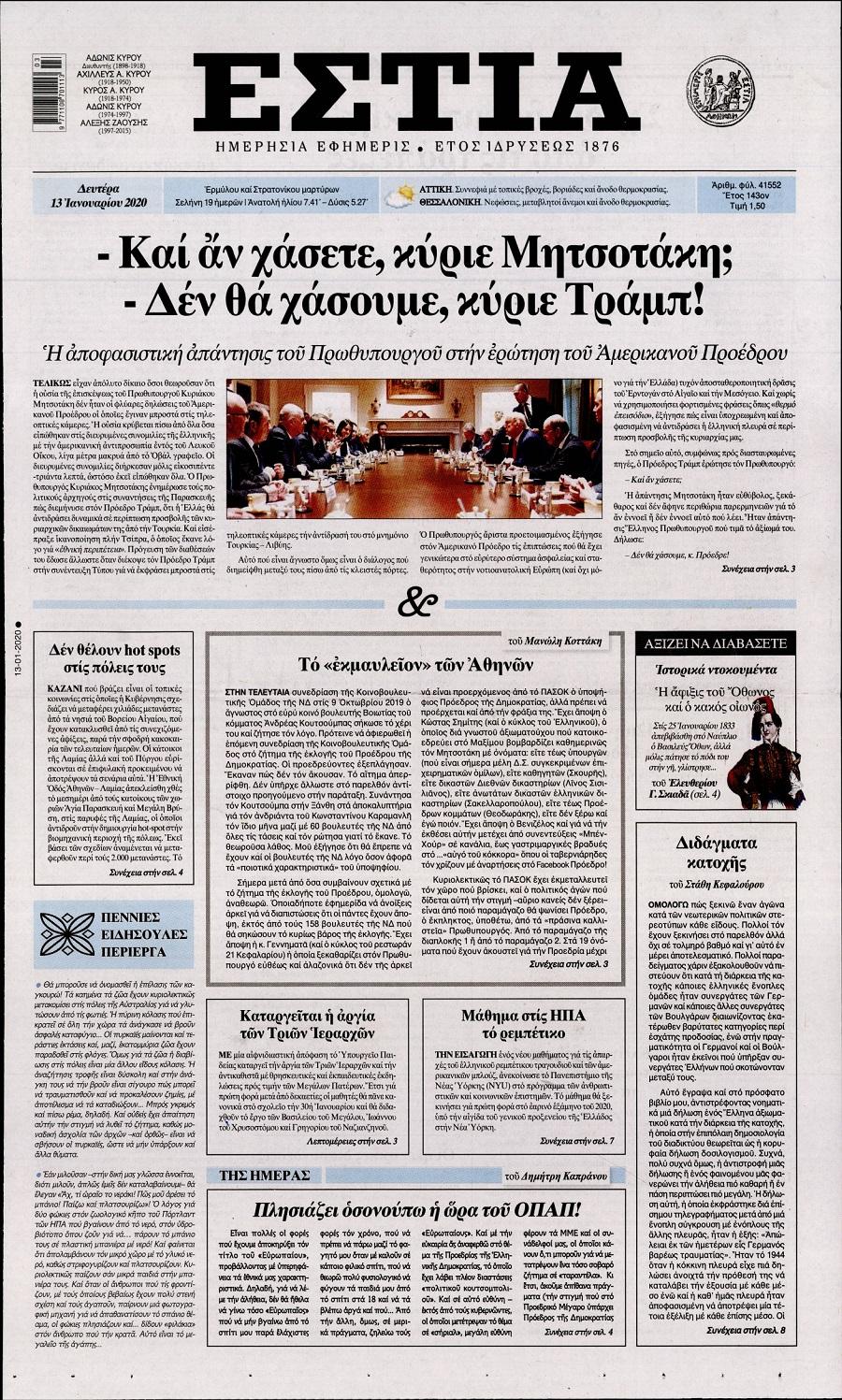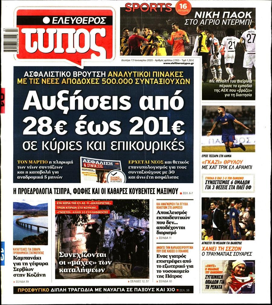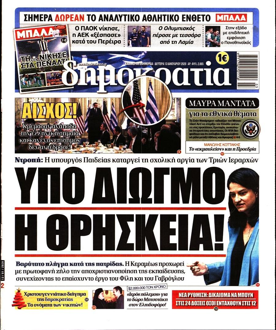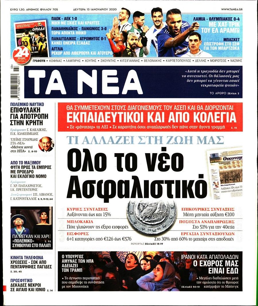 Τα πολιτικά πρωτοσέλιδα σήμερα (13/1)