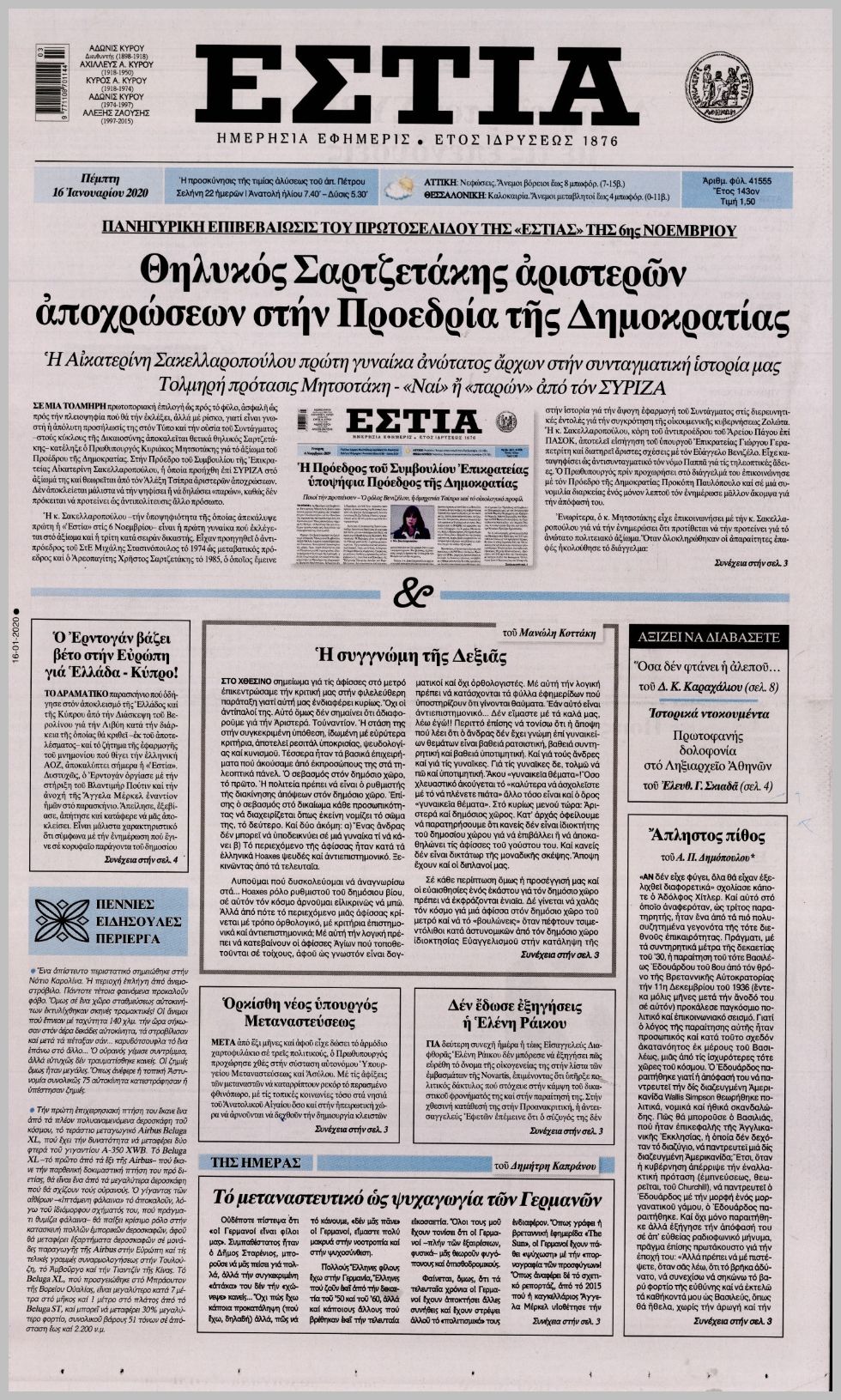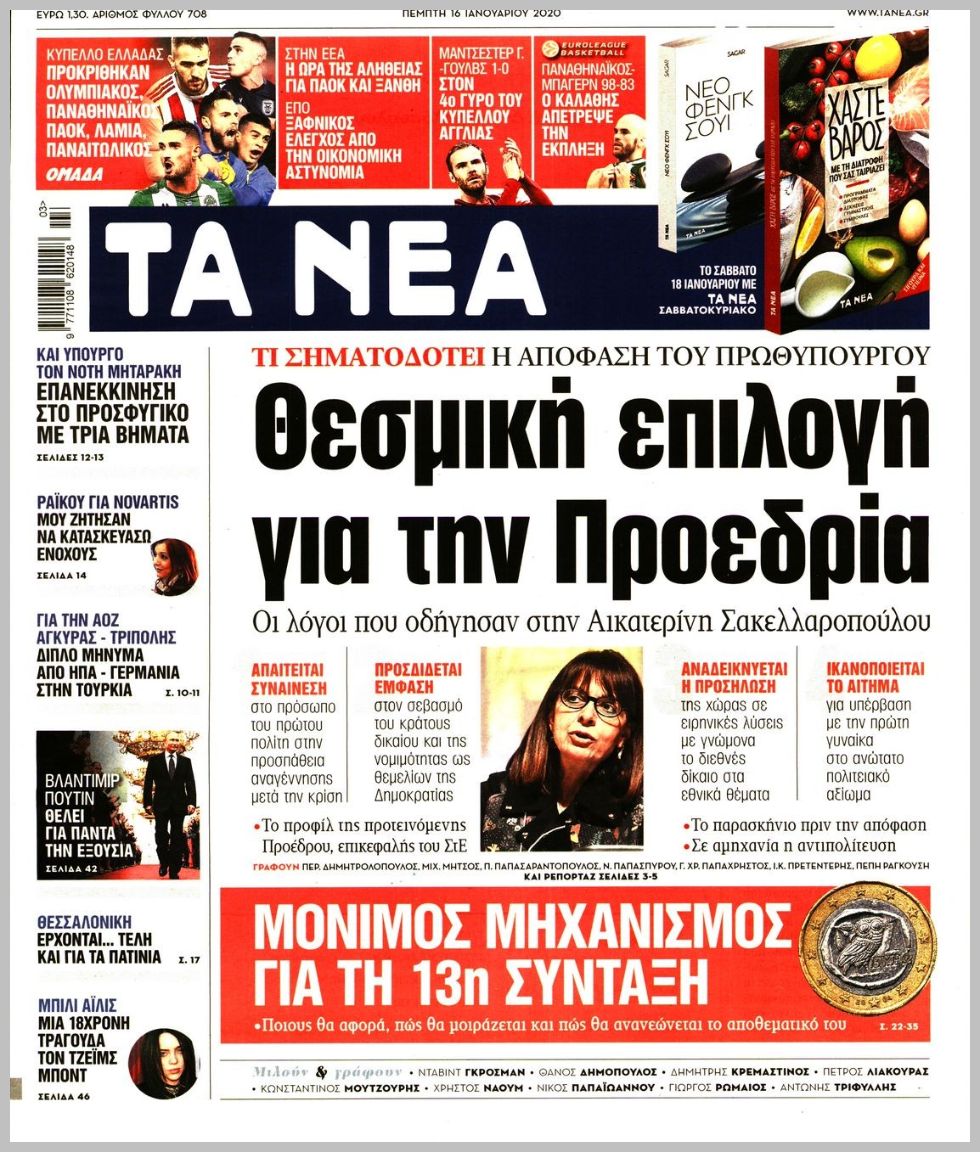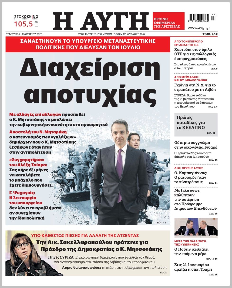 Τα πολιτικά πρωτοσέλιδα σήμερα (16/1)
