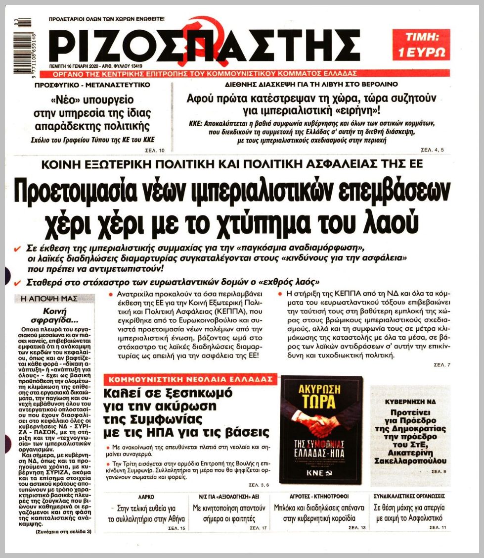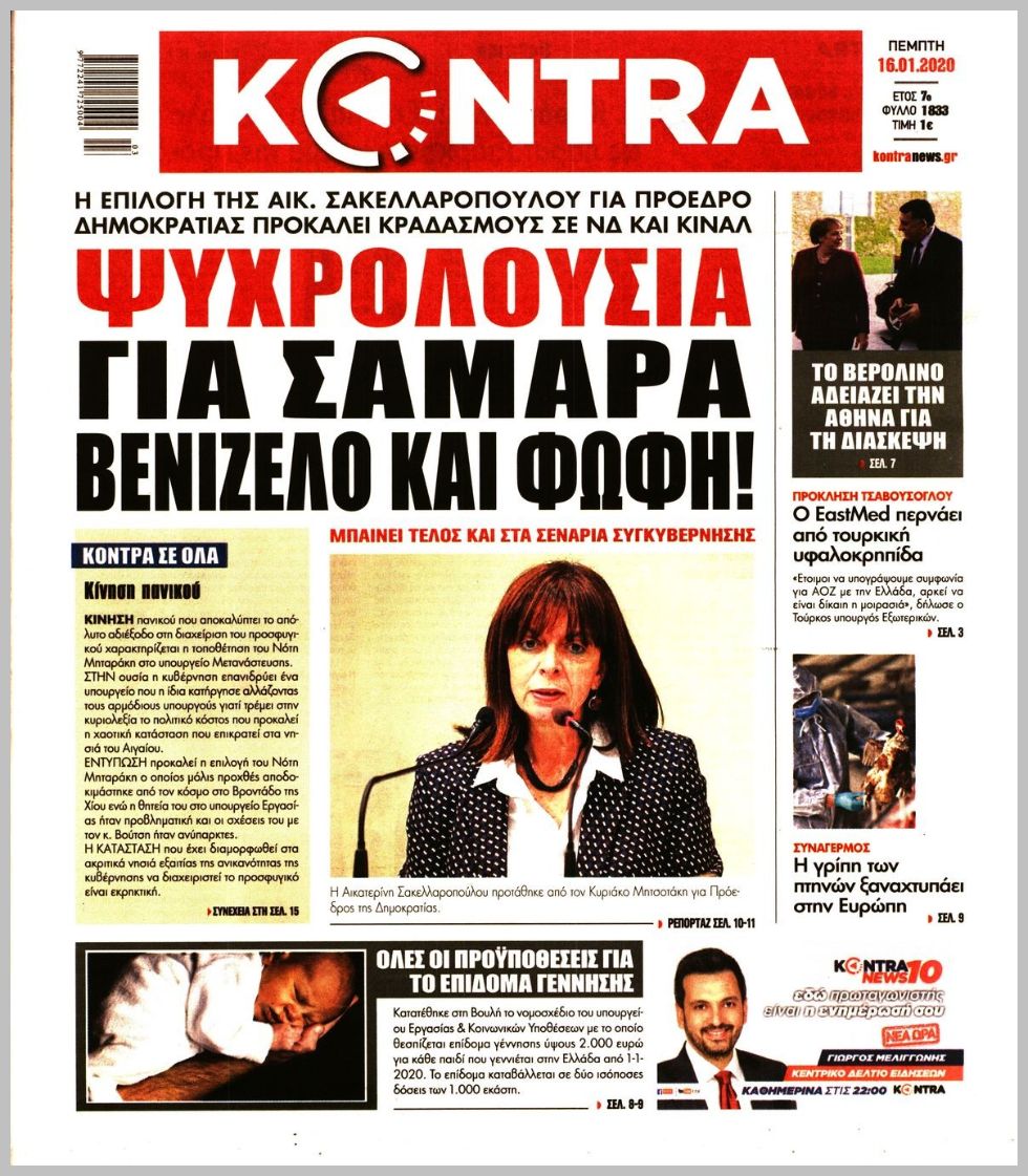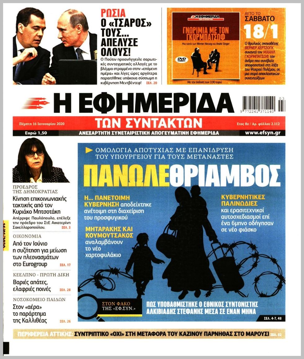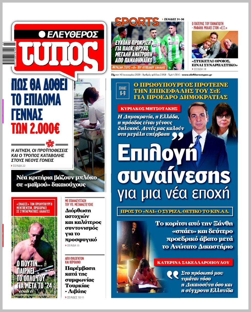 Τα πολιτικά πρωτοσέλιδα σήμερα (16/1)