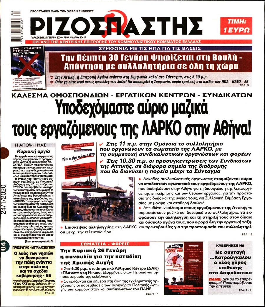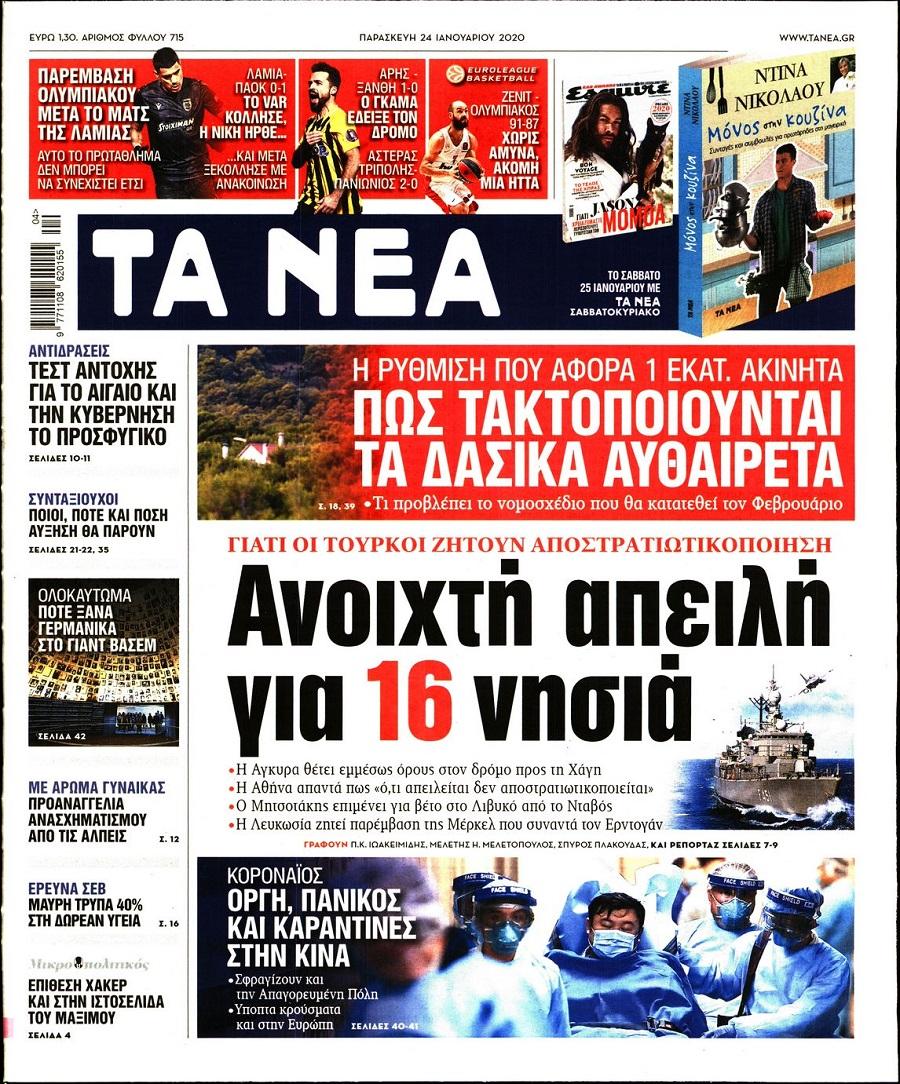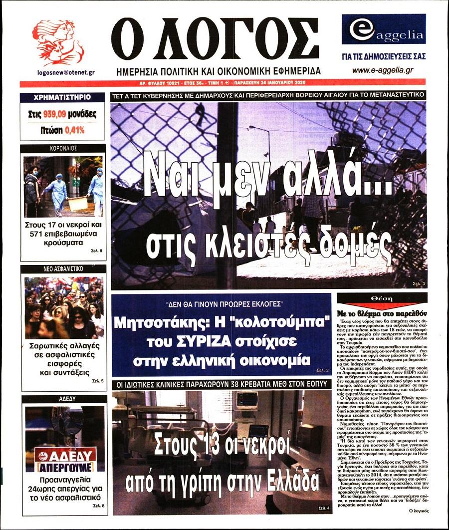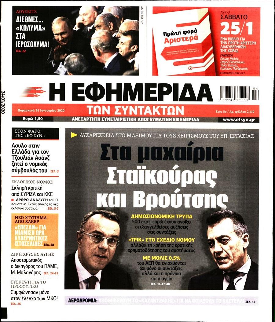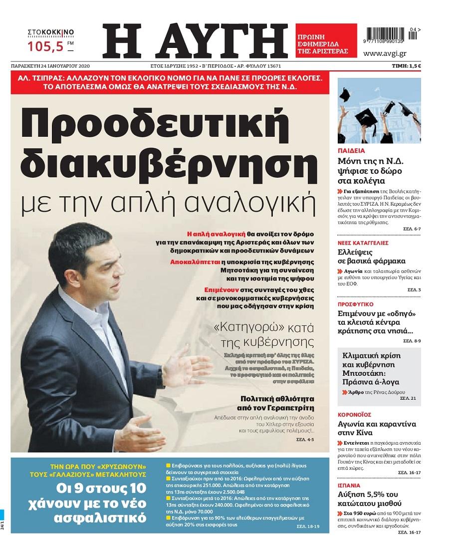 Τα πολιτικά πρωτοσέλιδα σήμερα (24/1)