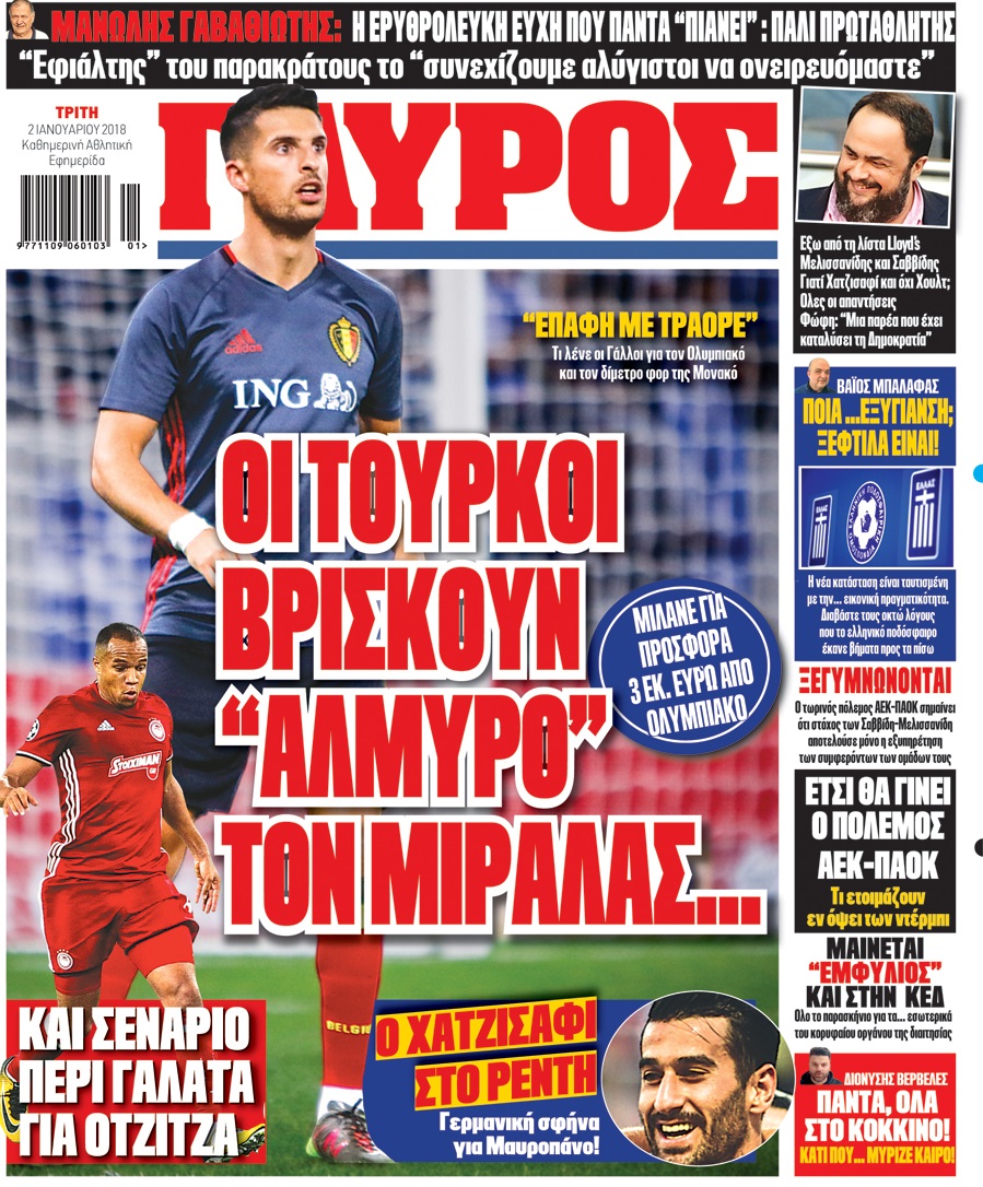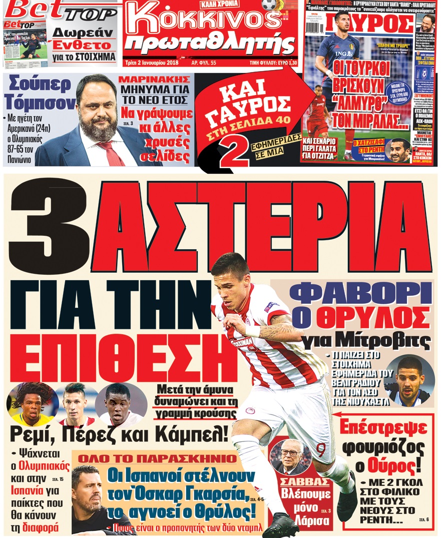 Διαβάστε τα πρωτοσέλιδα των αθλητικών εφημερίδων για σήμερα Παρασκευή (2/1).
