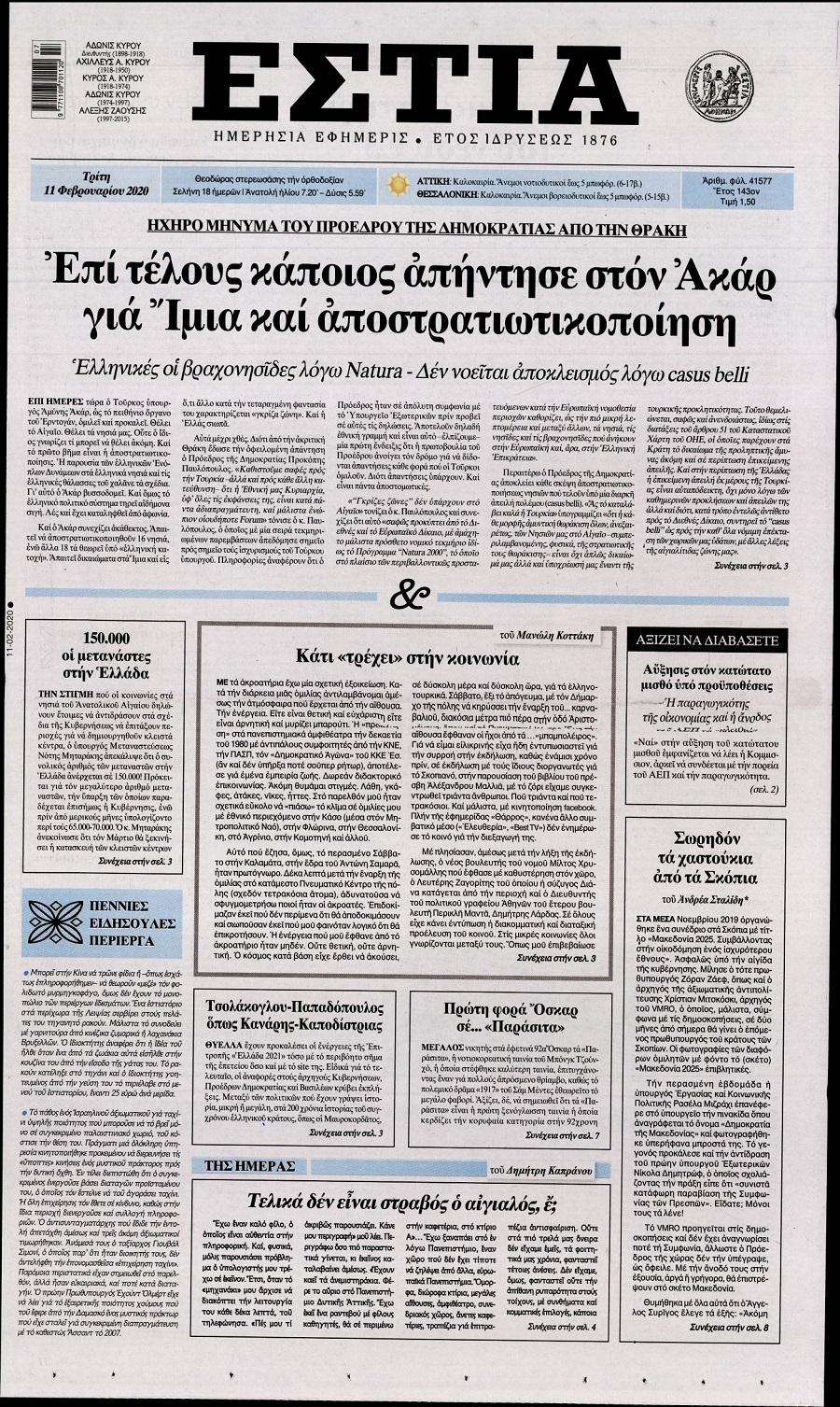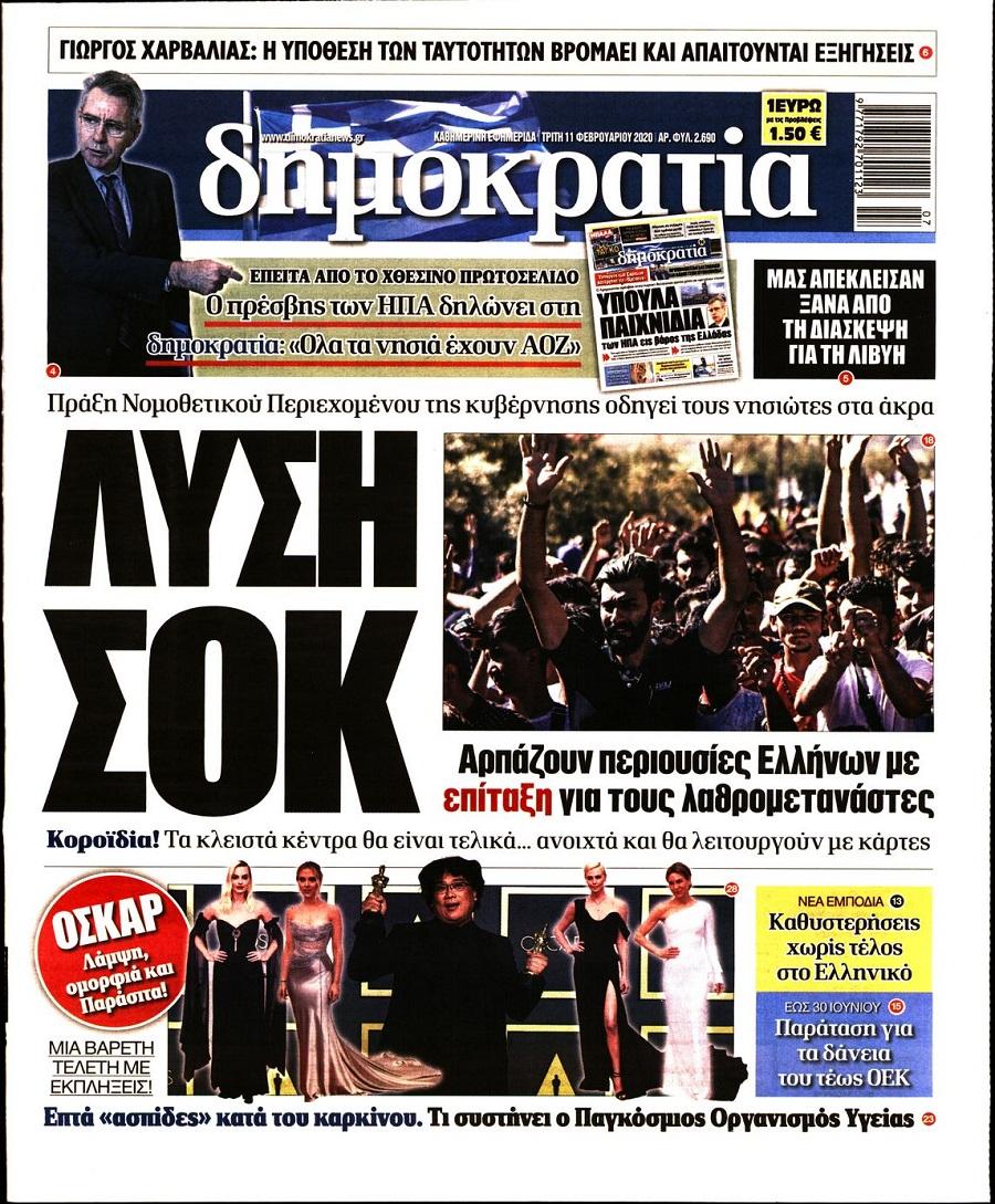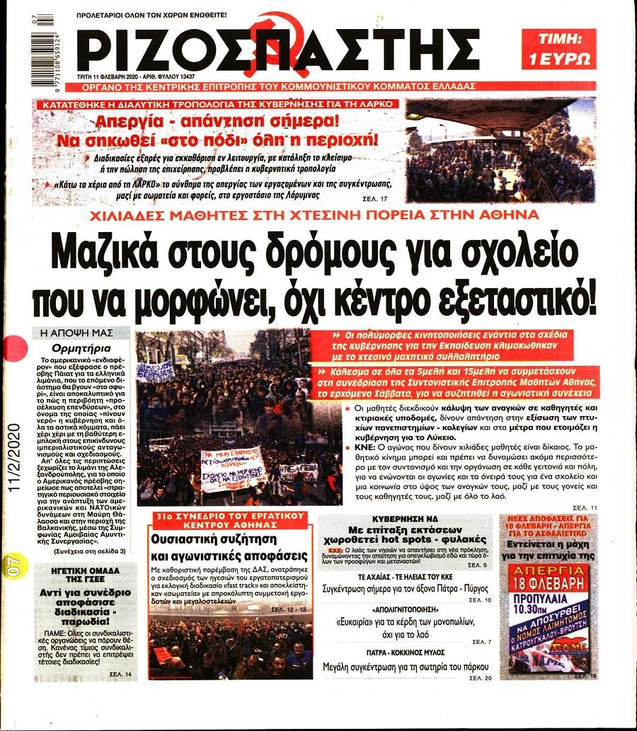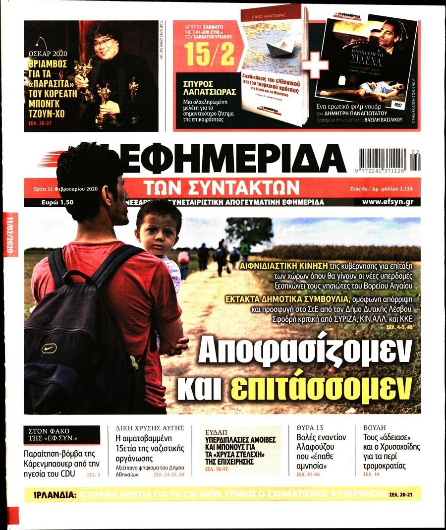 Τα πολιτικά πρωτοσέλιδα σήμερα (11/2)