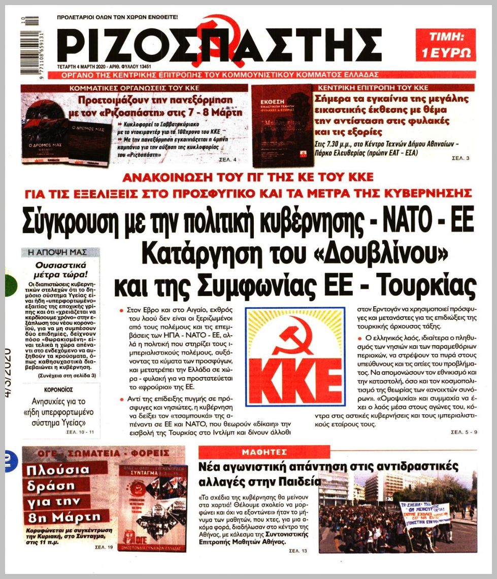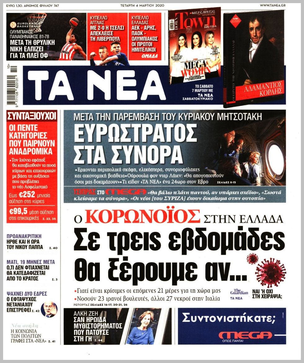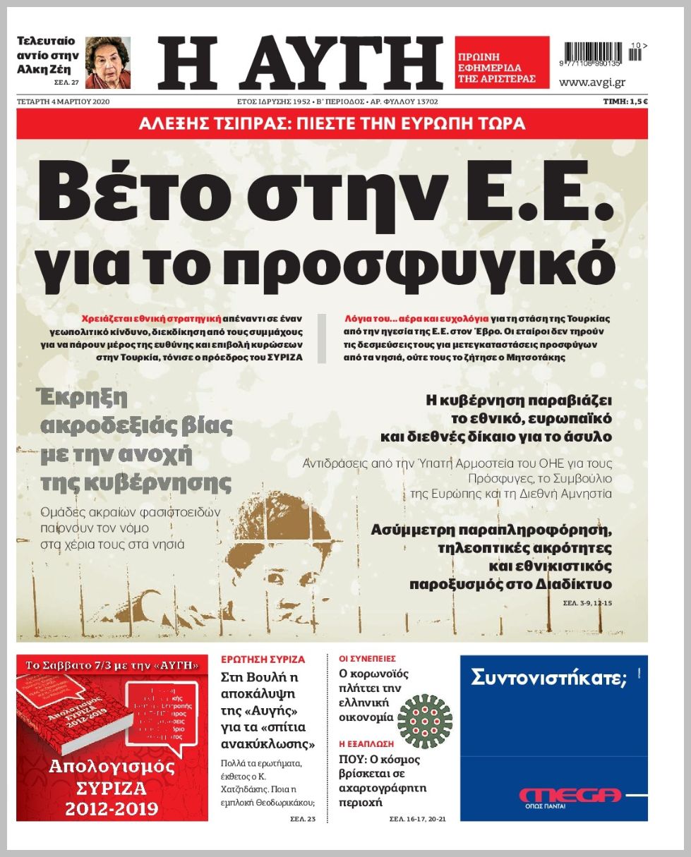 Τα πολιτικά πρωτοσέλιδα σήμερα (4/3).