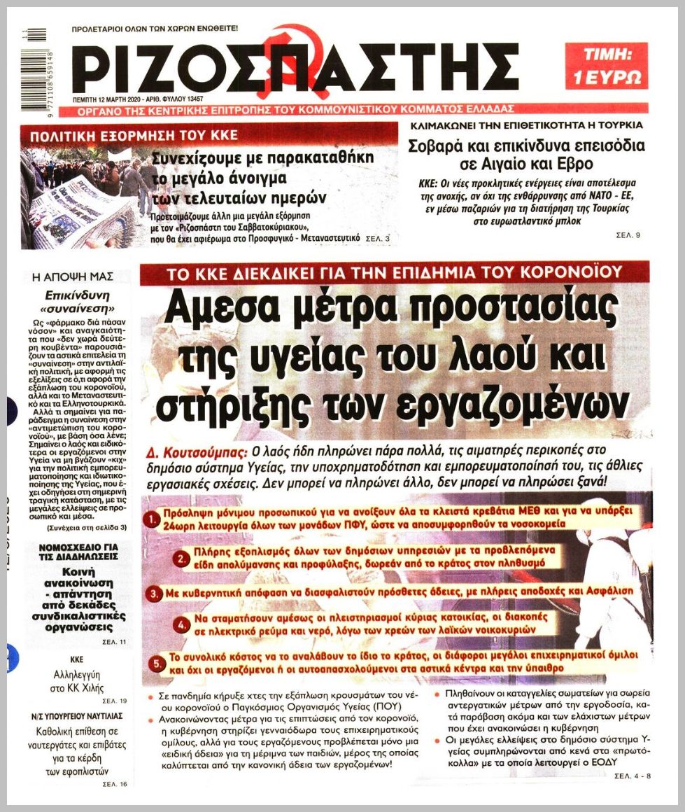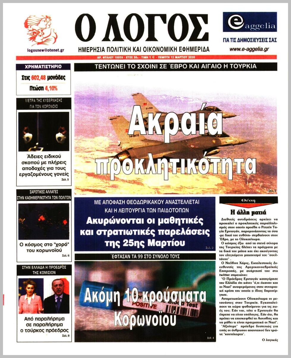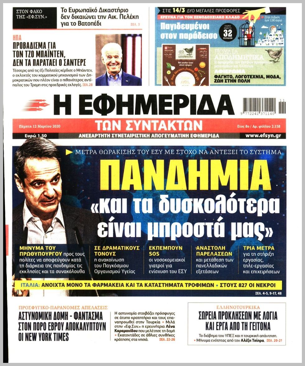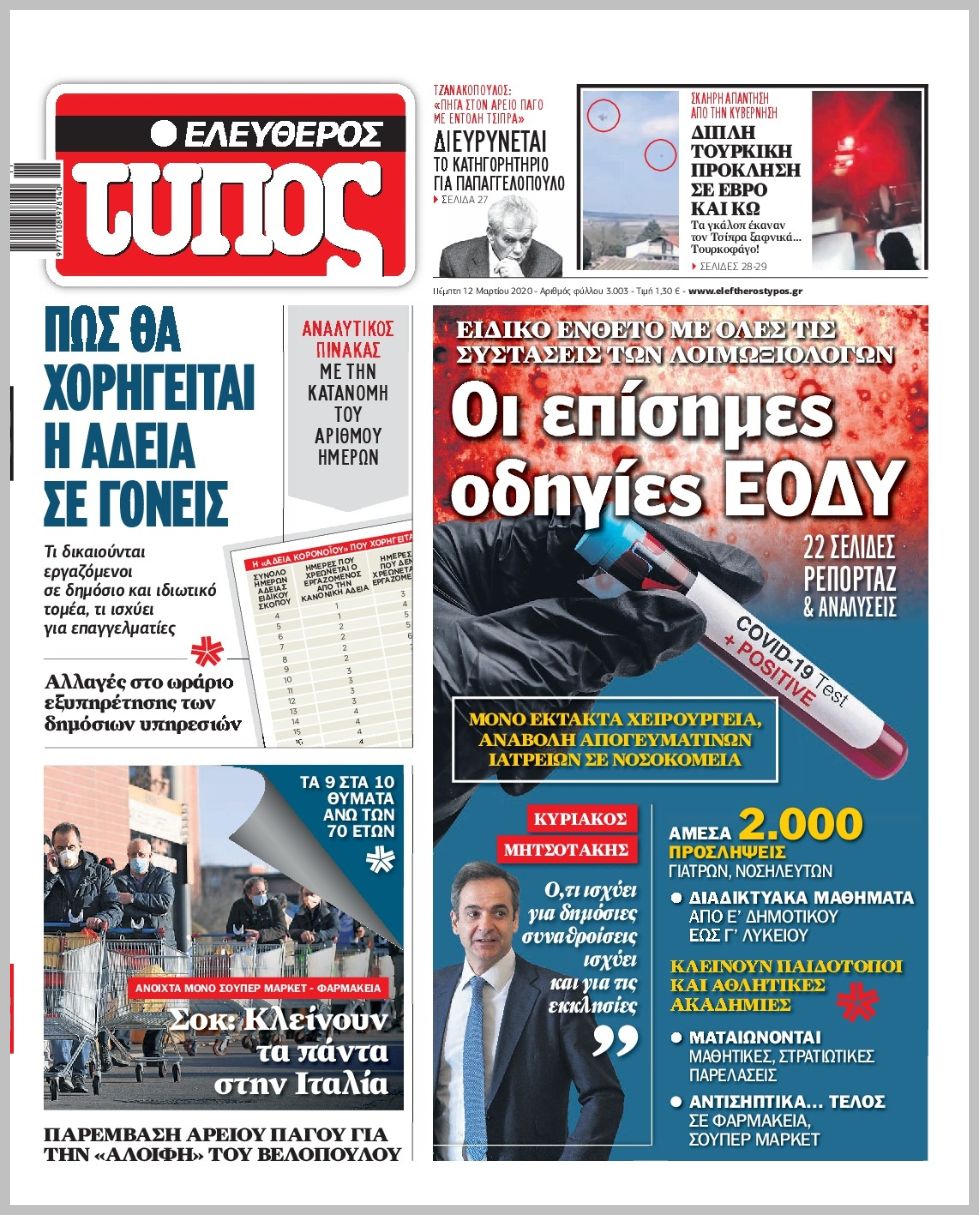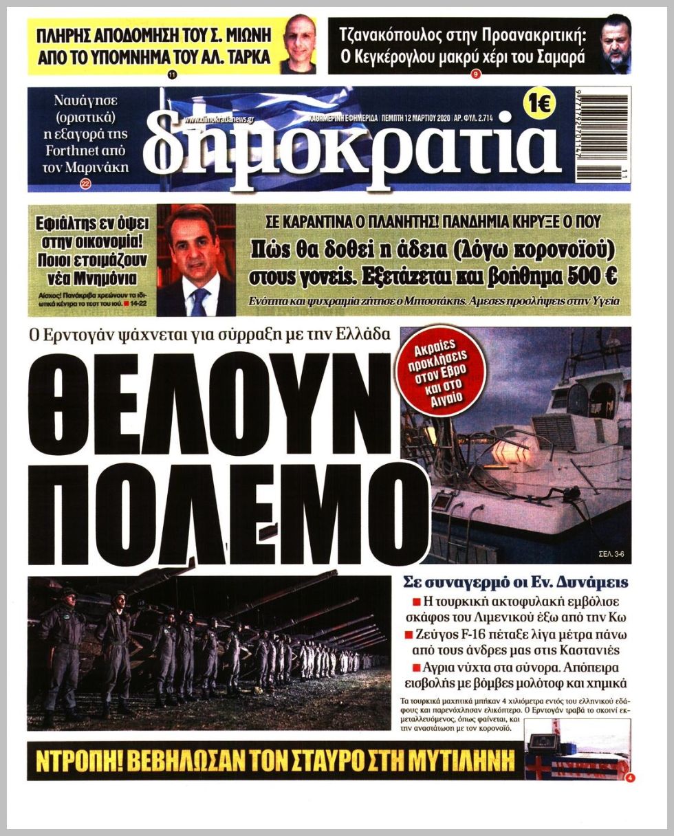 Τα πολιτικά πρωτοσέλιδα σήμερα (12/3)