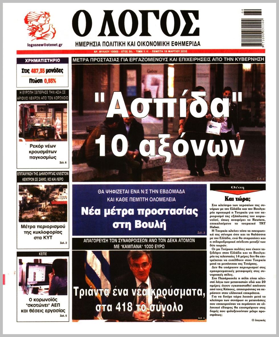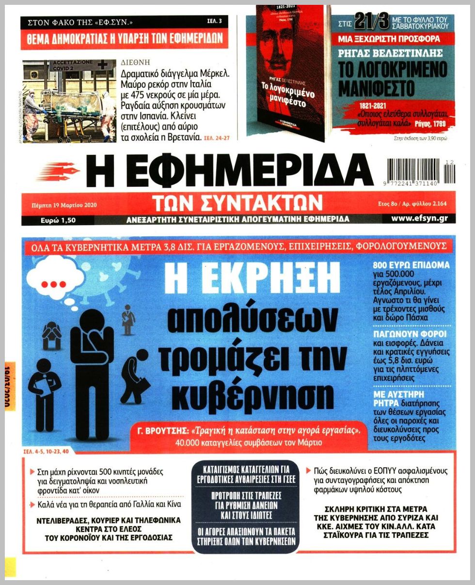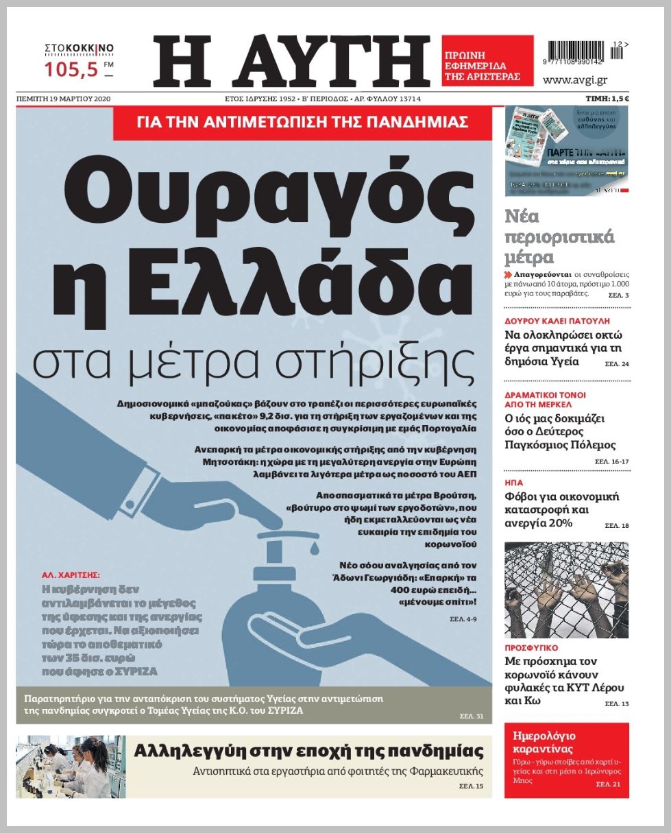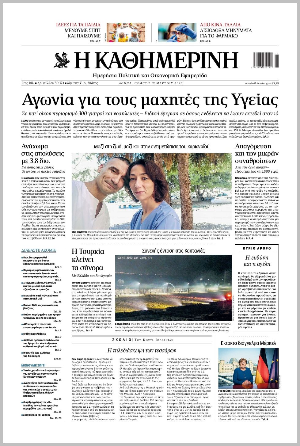 Τα πολιτικά πρωτοσέλιδα σήμερα (19/3)