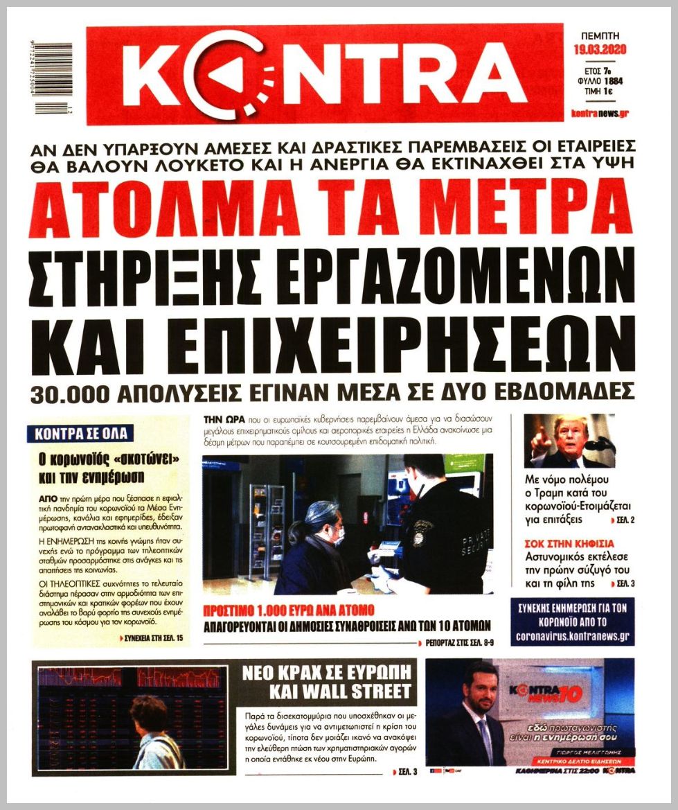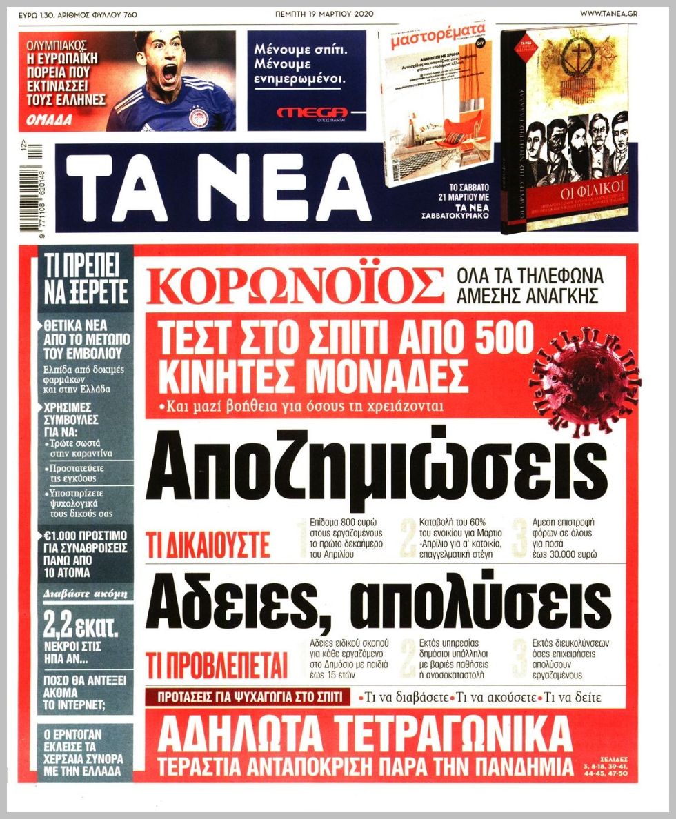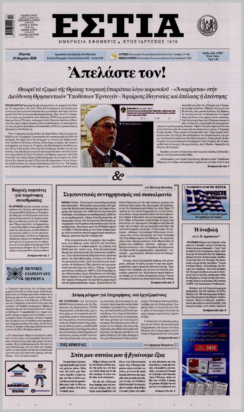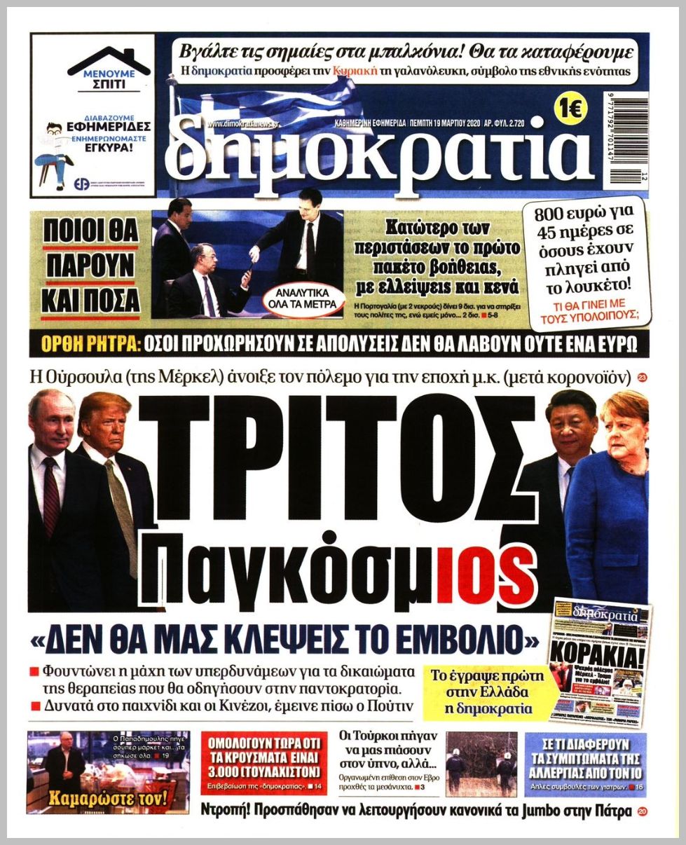 Τα πολιτικά πρωτοσέλιδα σήμερα (19/3)