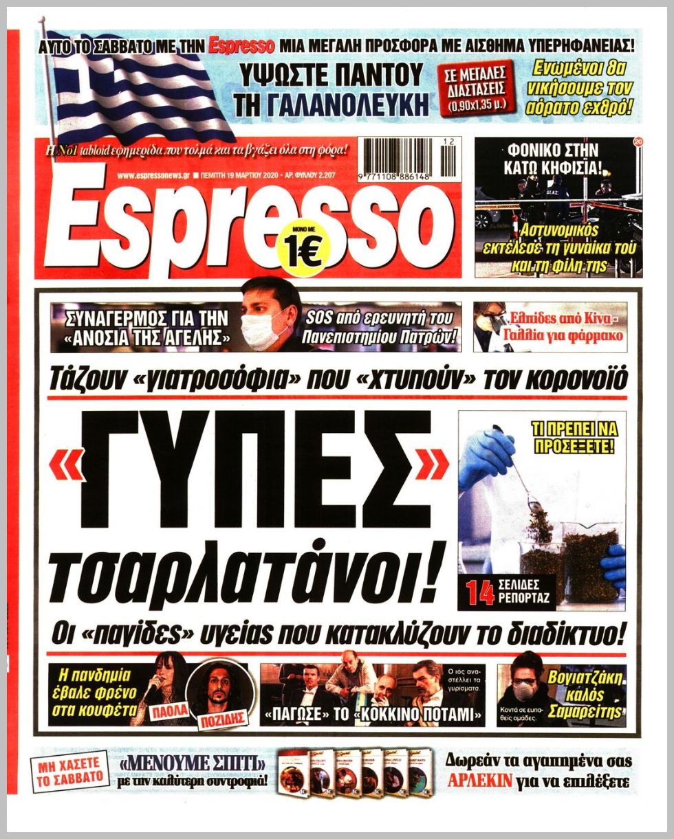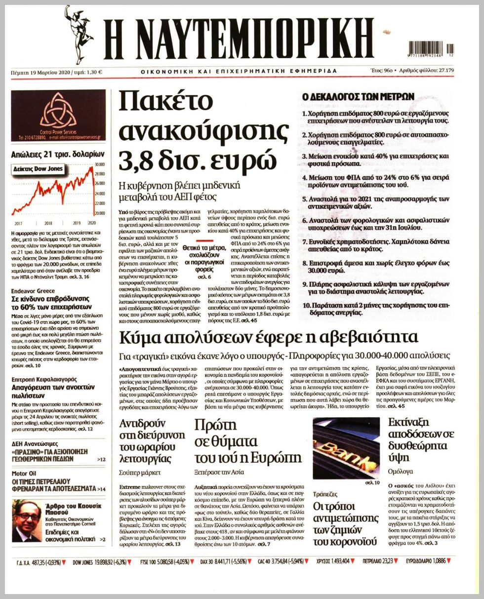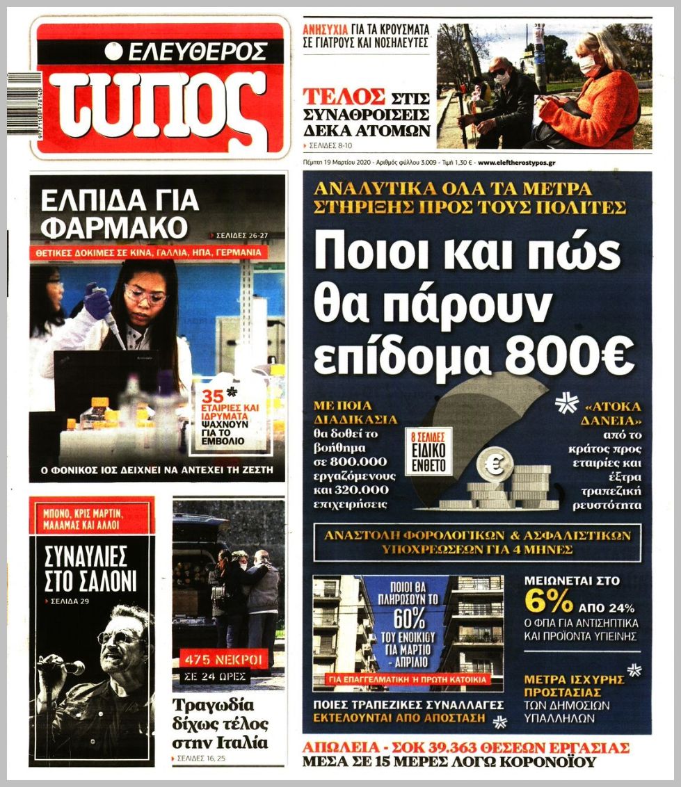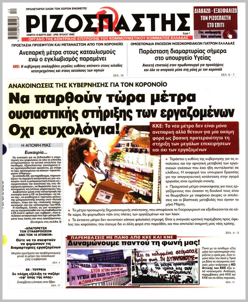 Τα πολιτικά πρωτοσέλιδα σήμερα (19/3)