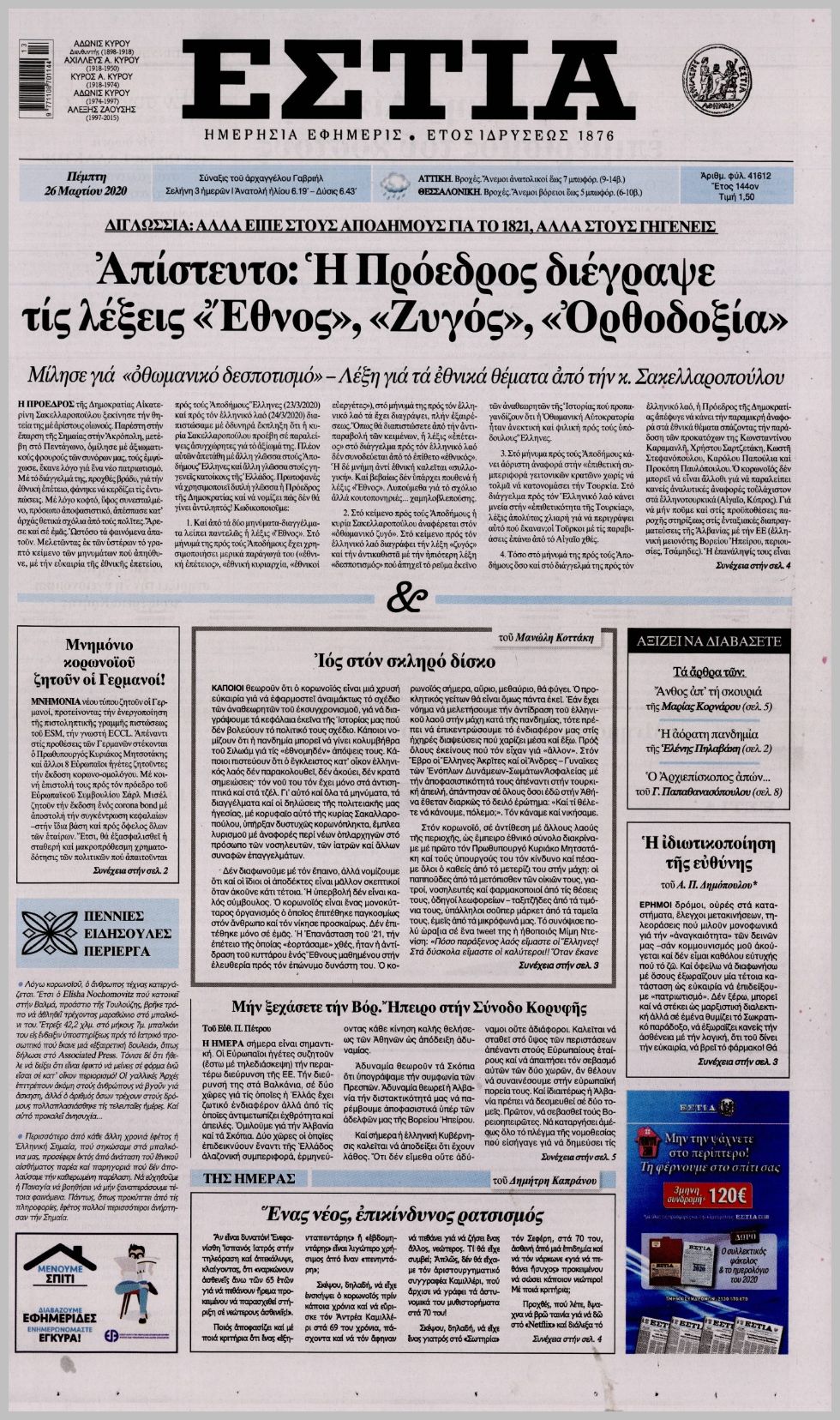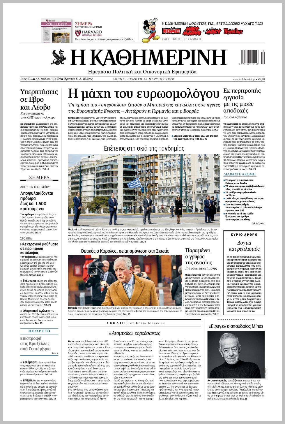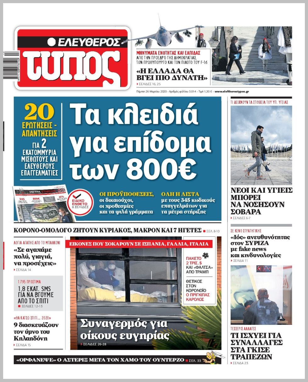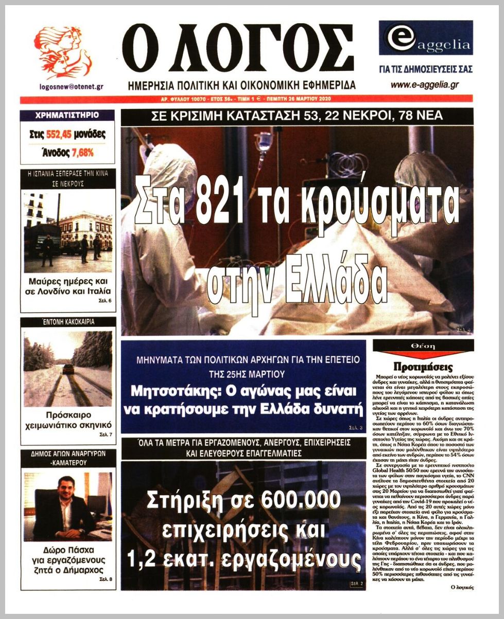Τα πολιτικά πρωτοσέλιδα σήμερα (26/3)