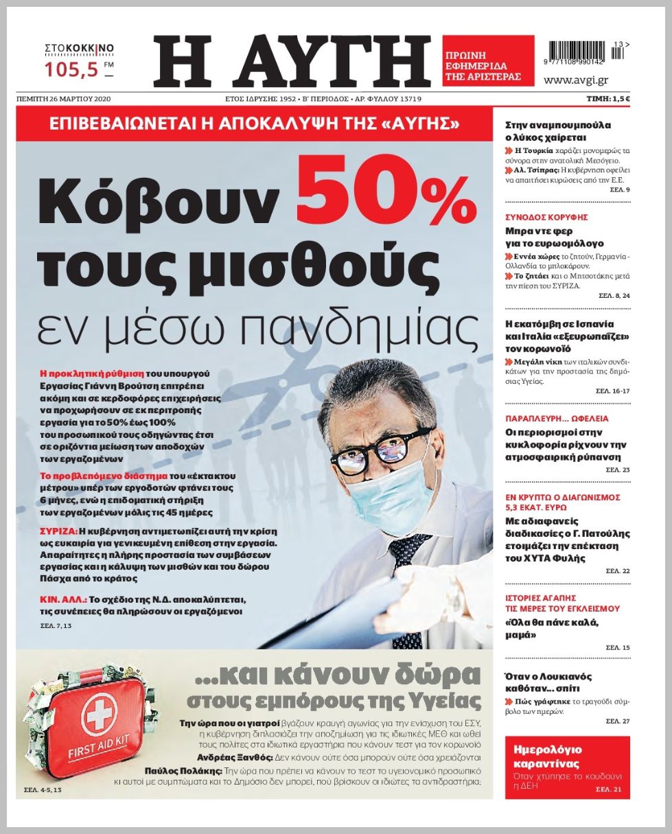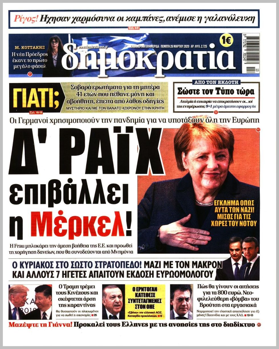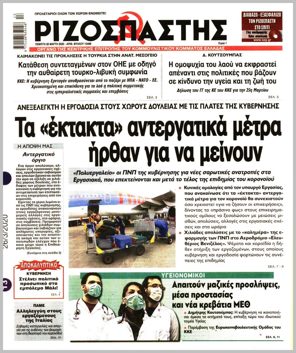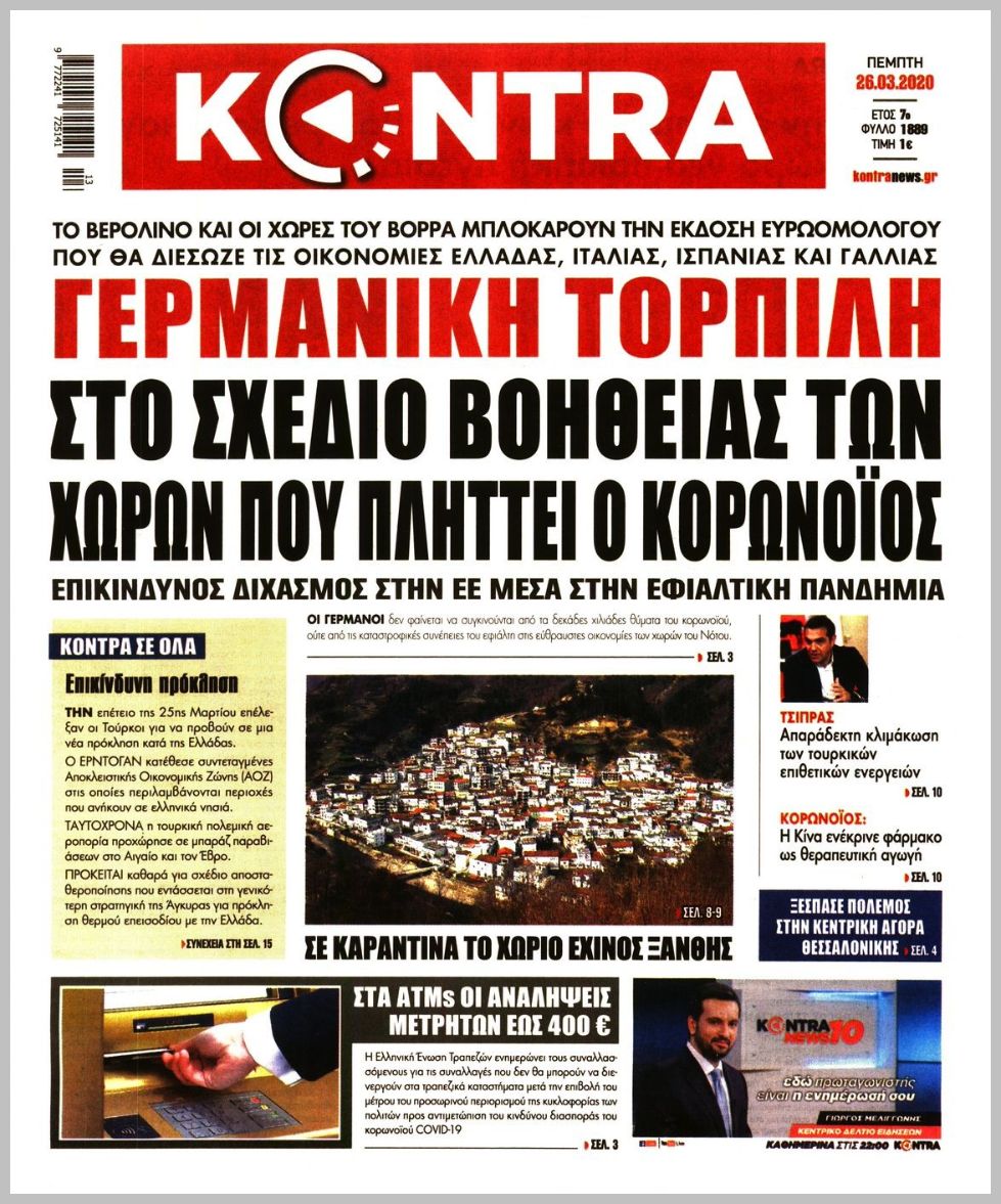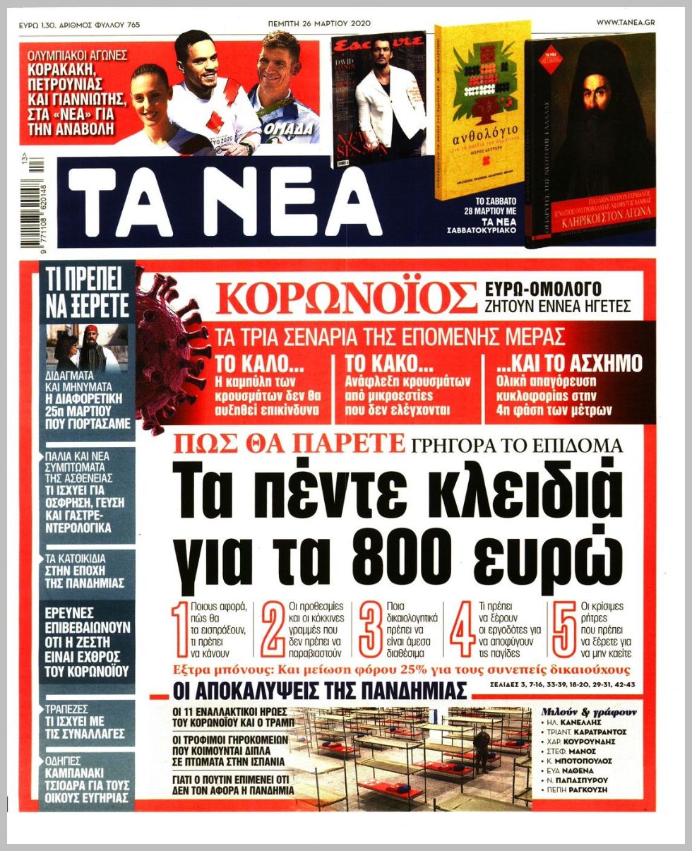 Τα πολιτικά πρωτοσέλιδα σήμερα (26/3)