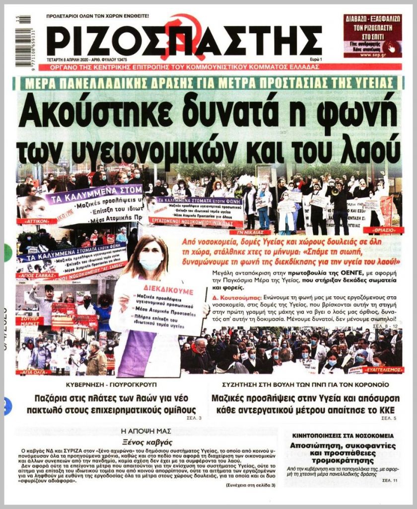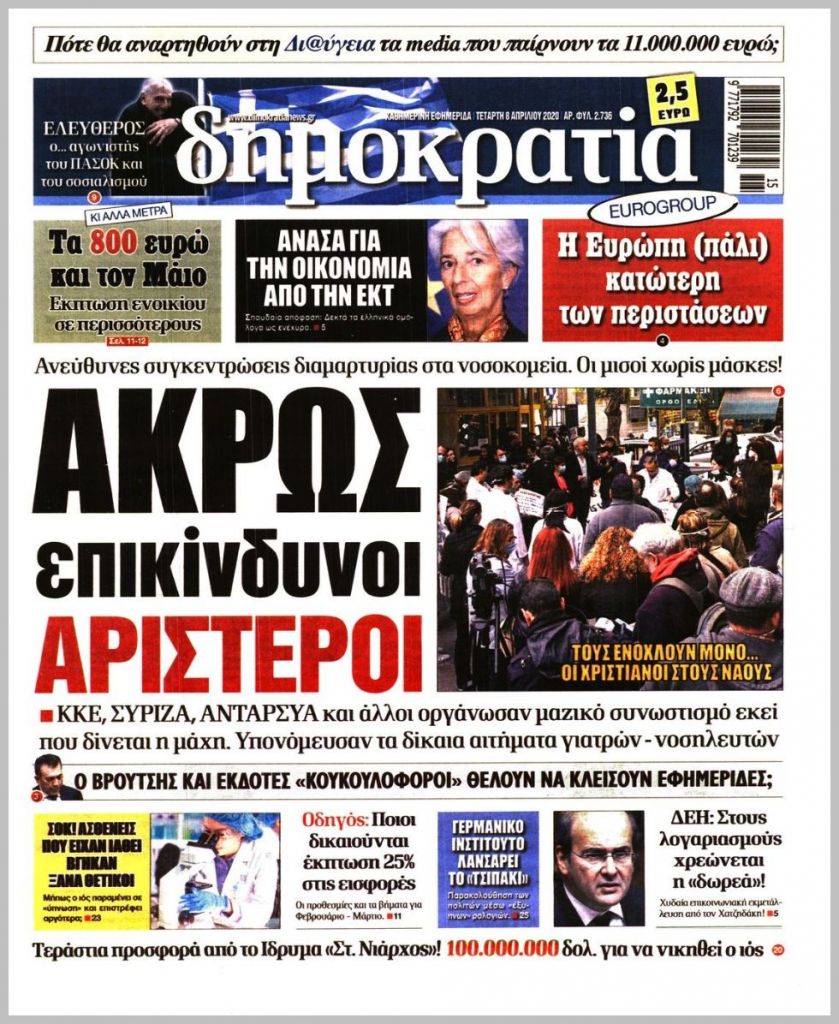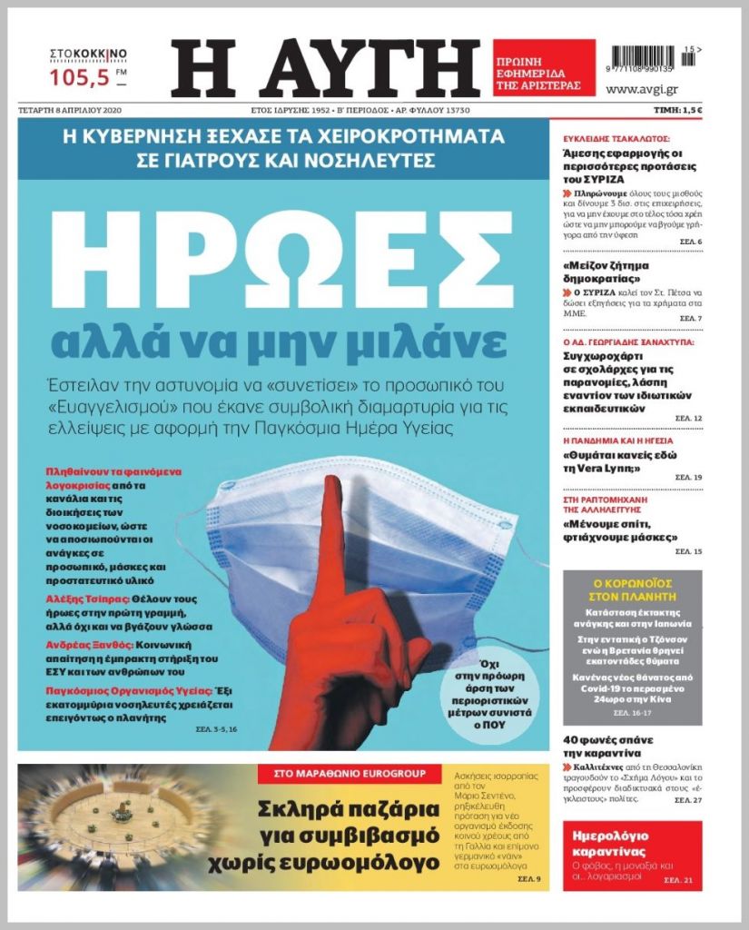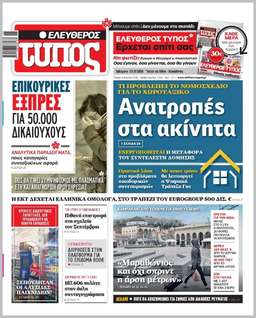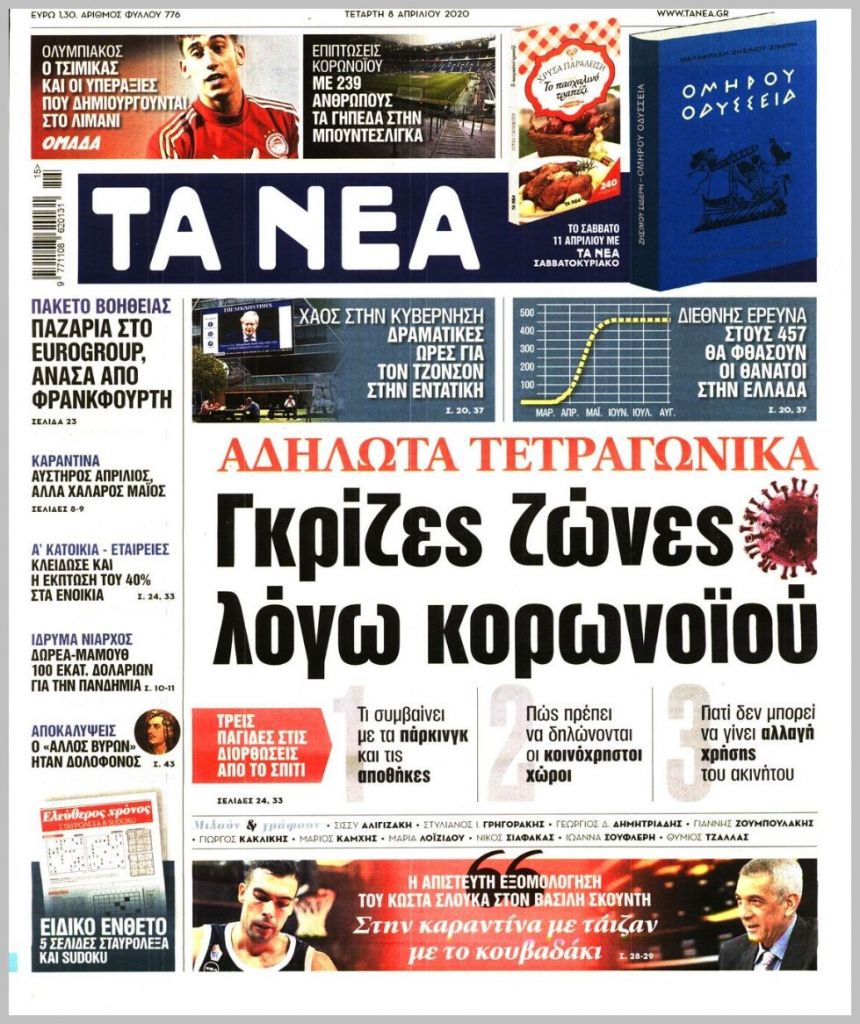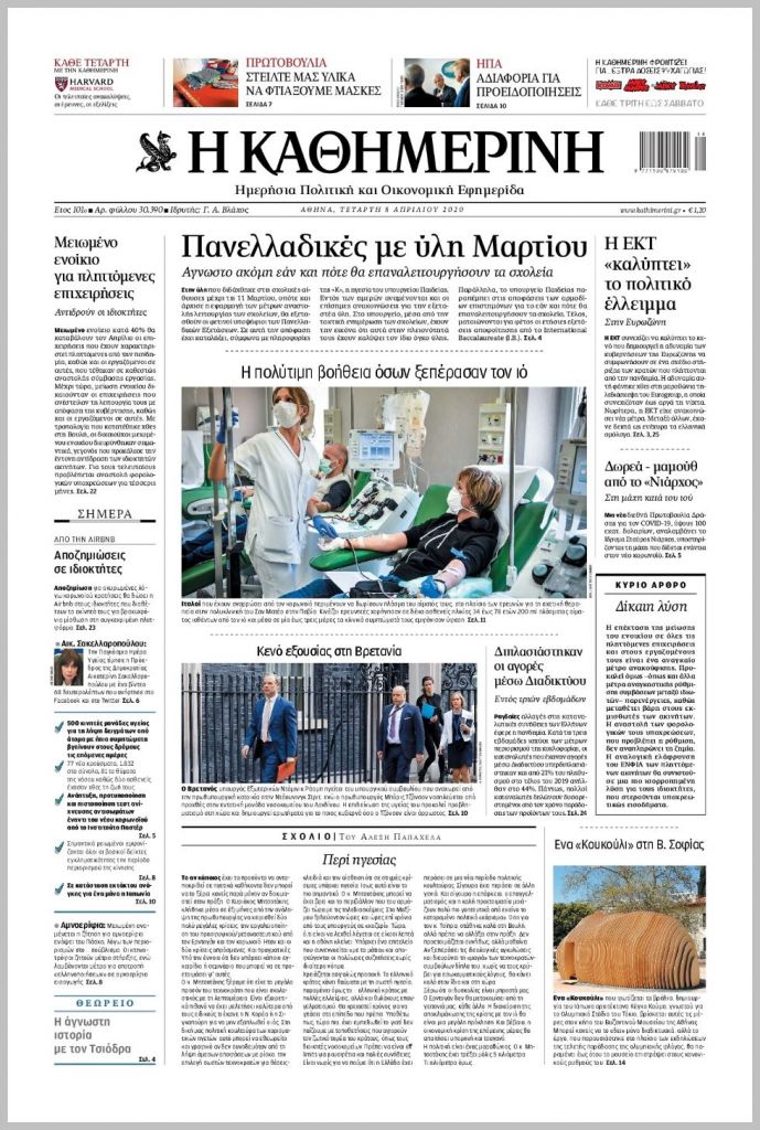 Τα πολιτικά πρωτοσέλιδα σήμερα (8/4).