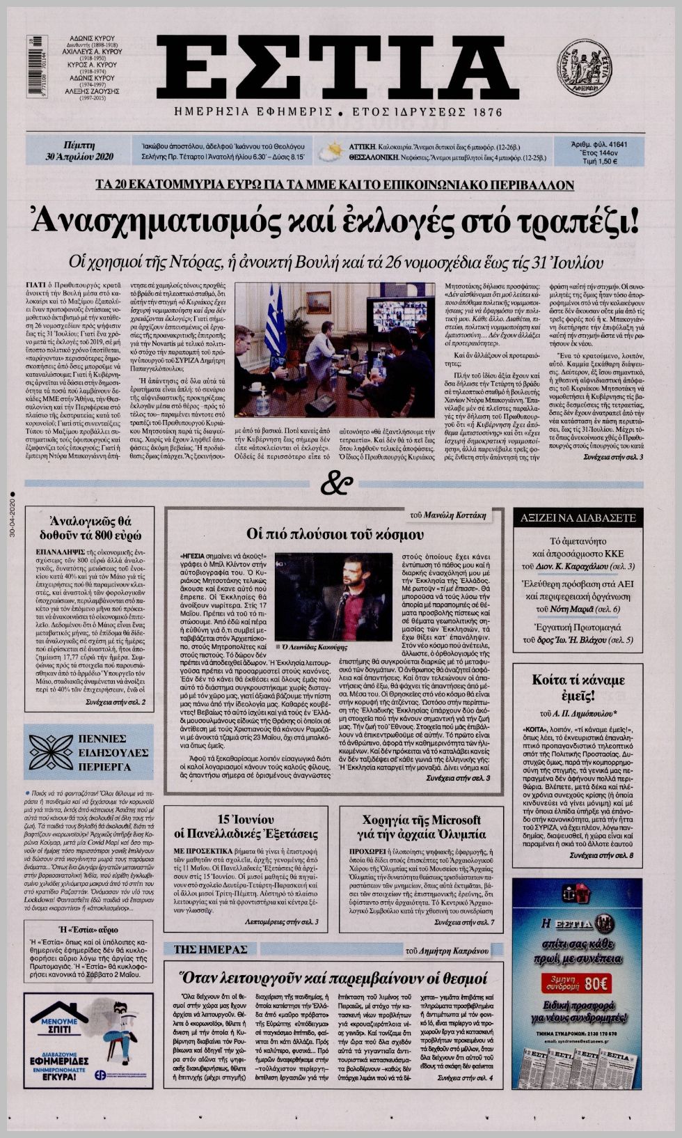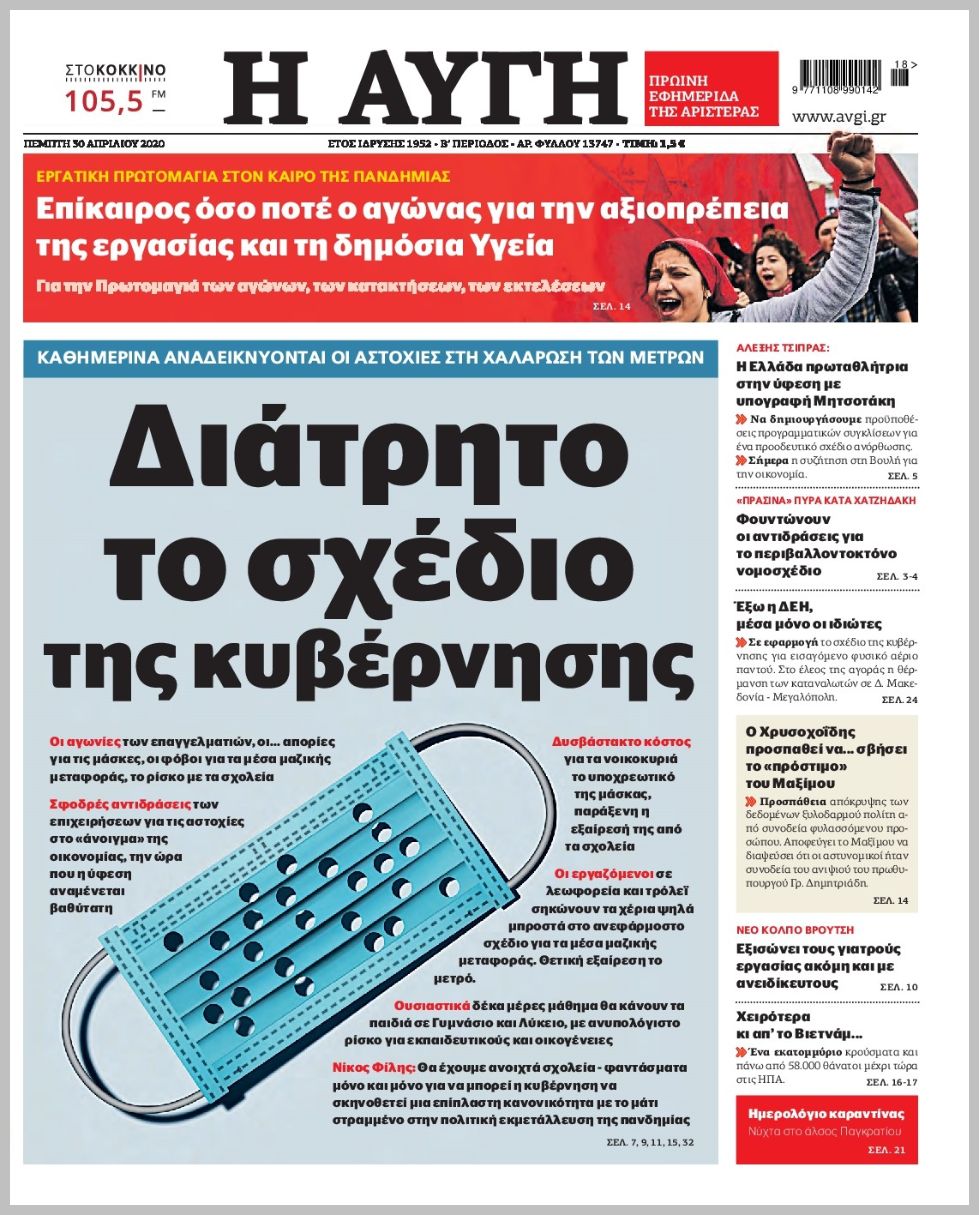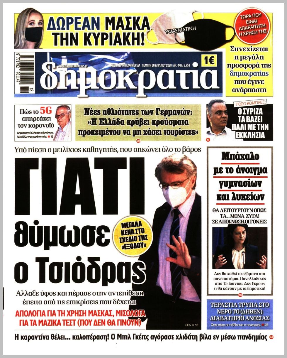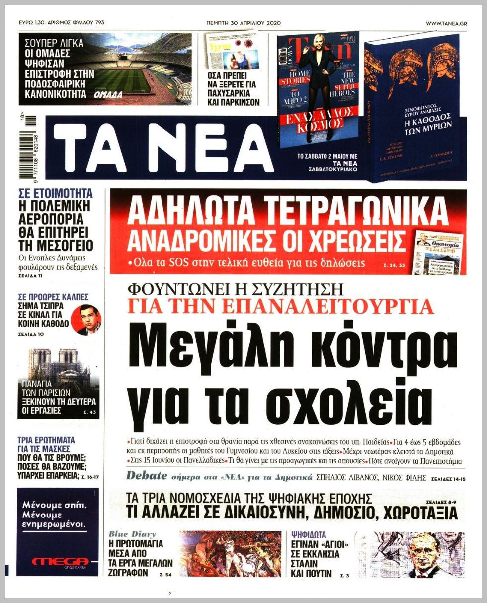 Τα πολιτικά πρωτοσέλιδα σήμερα (30/4)