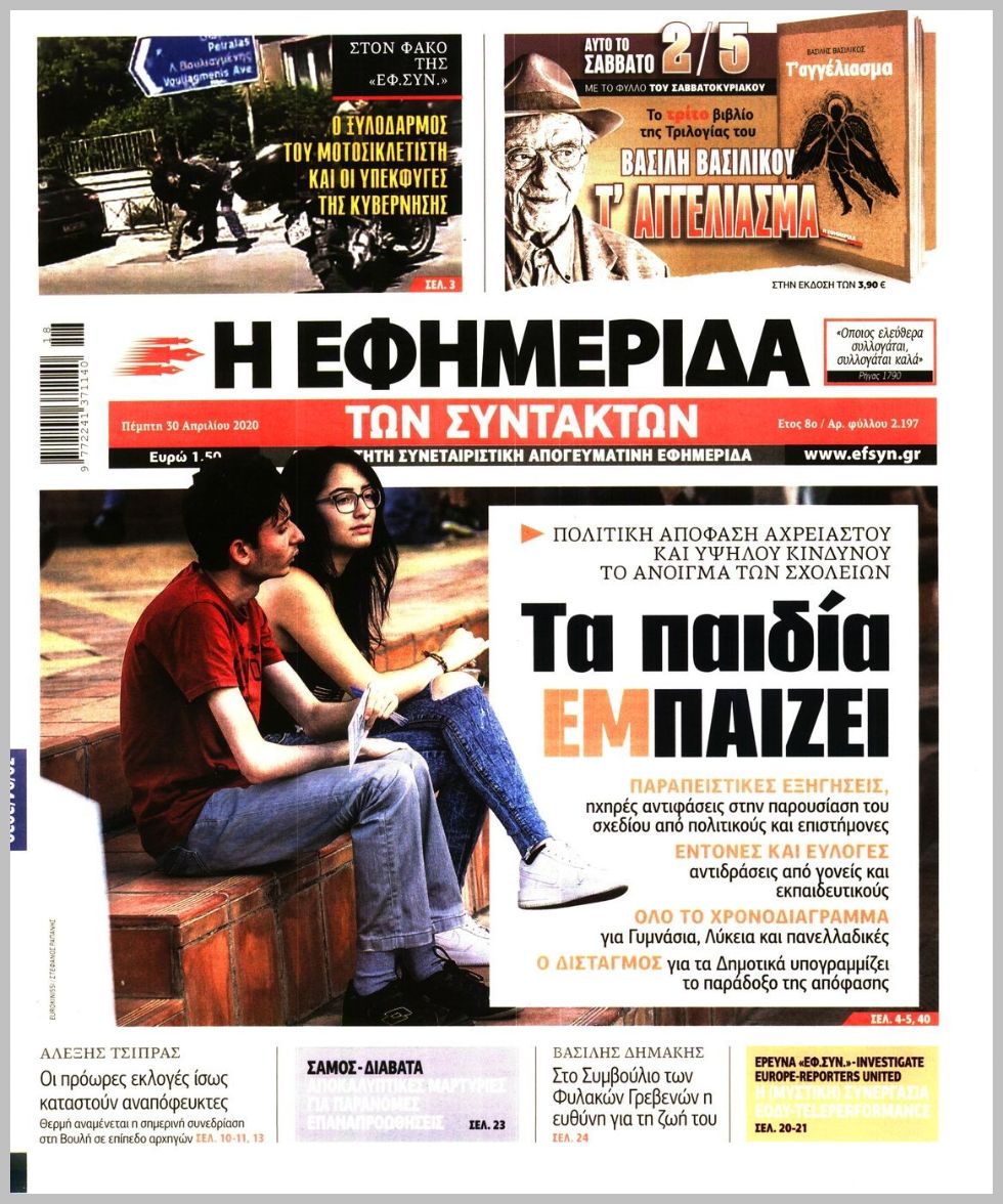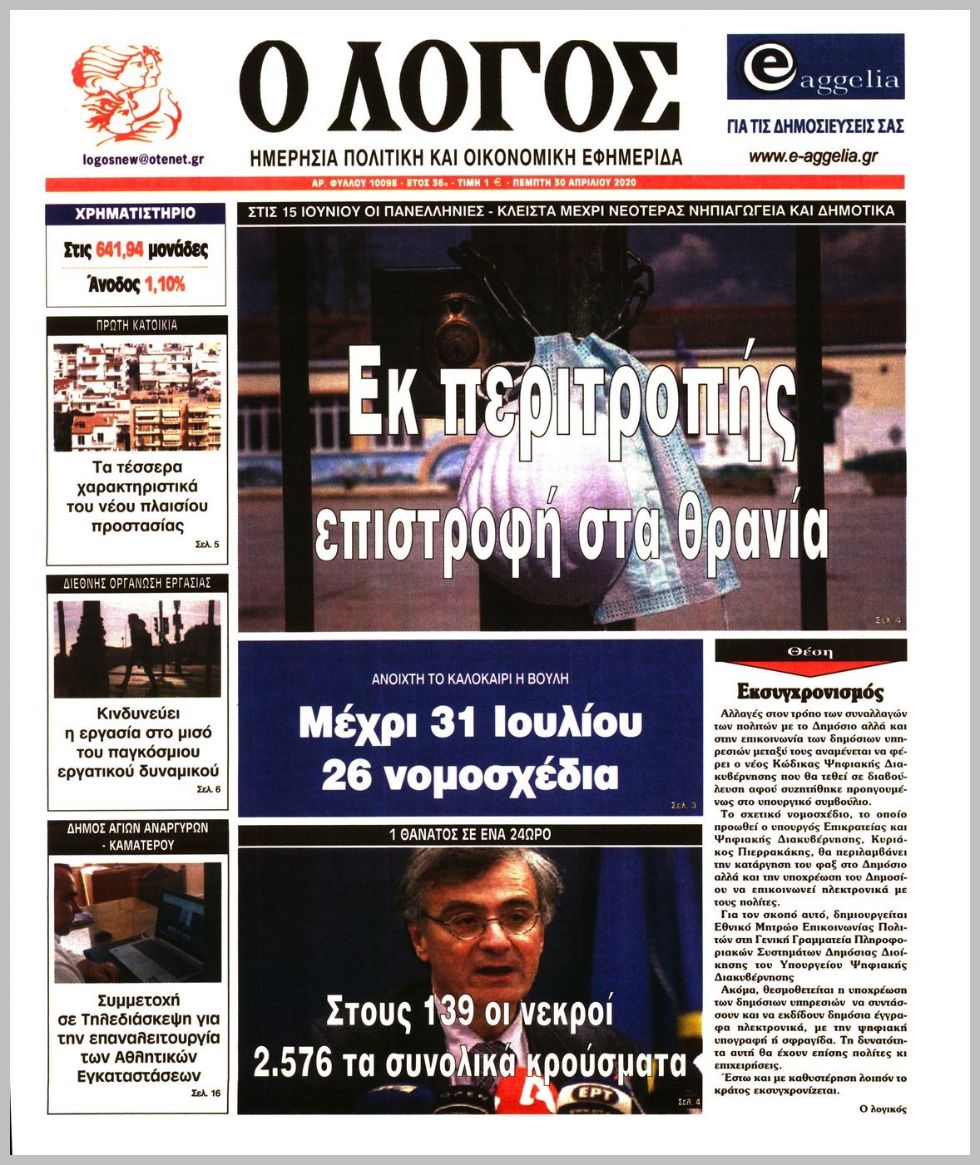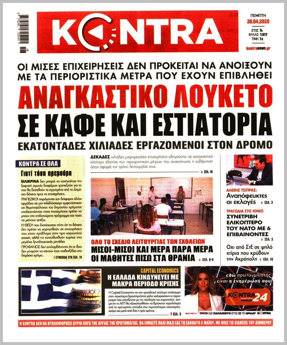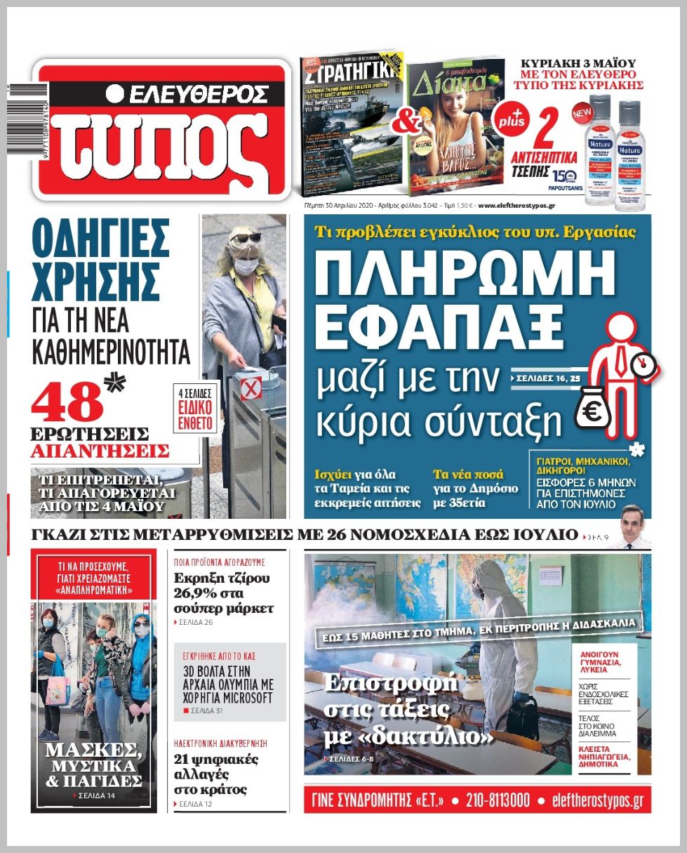 Τα πολιτικά πρωτοσέλιδα σήμερα (30/4)