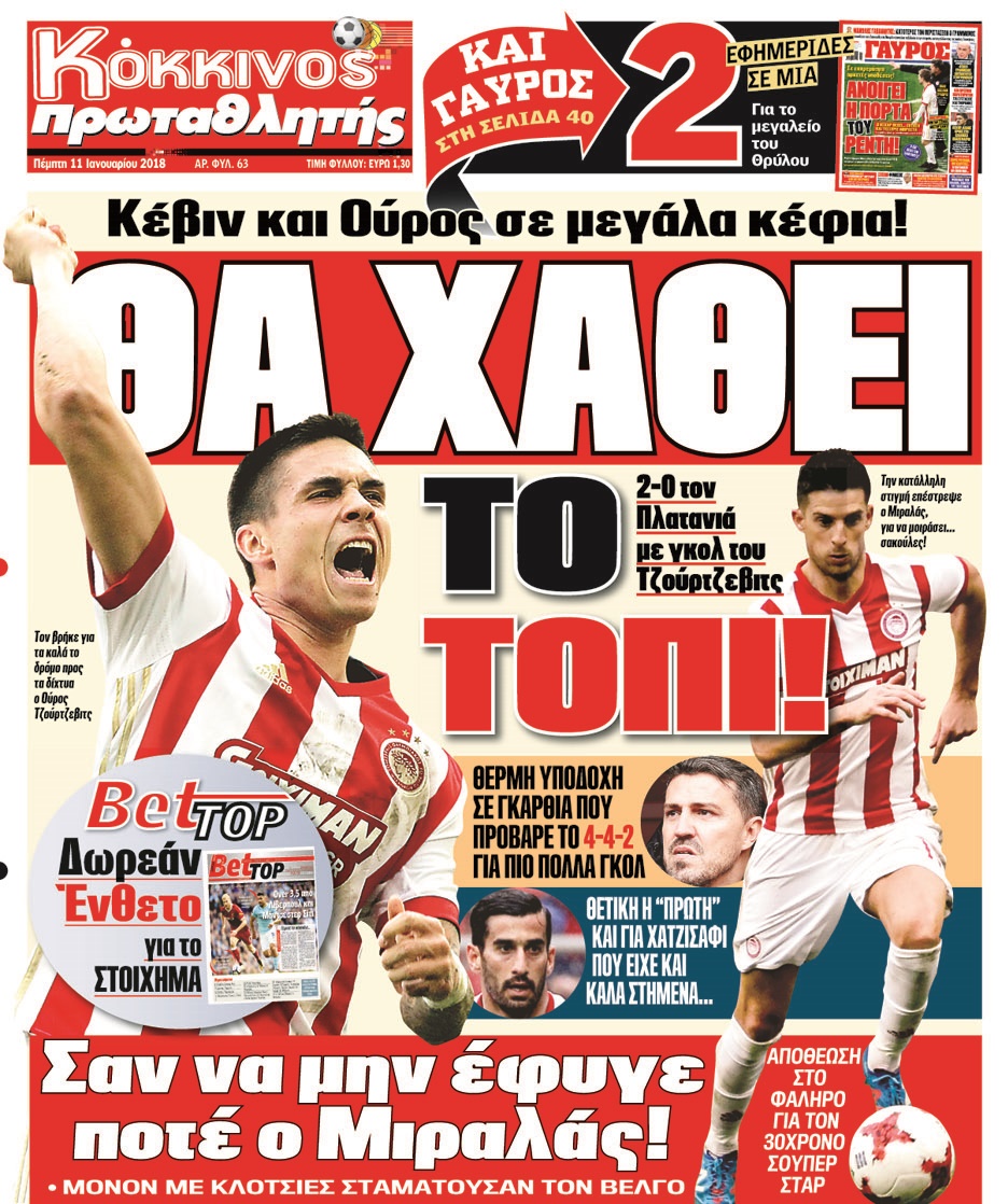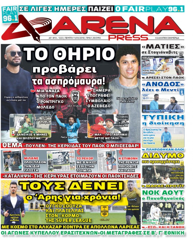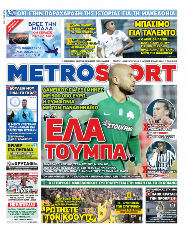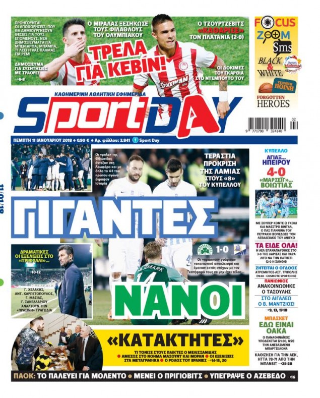 Διαβάστε τα πρωτοσέλιδα των αθλητικών εφημερίδων για σήμερα Πέμπτη (11/1).