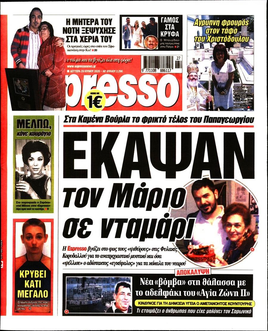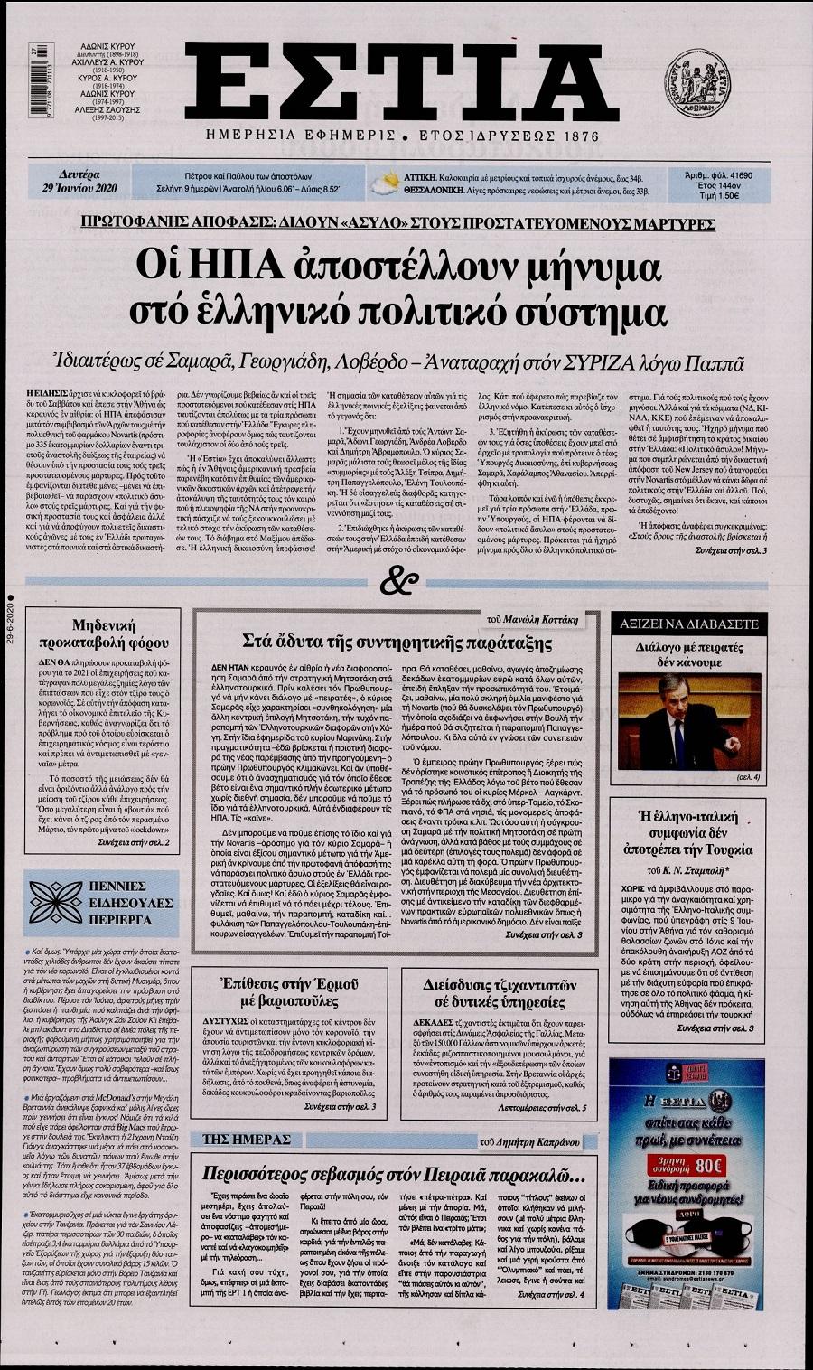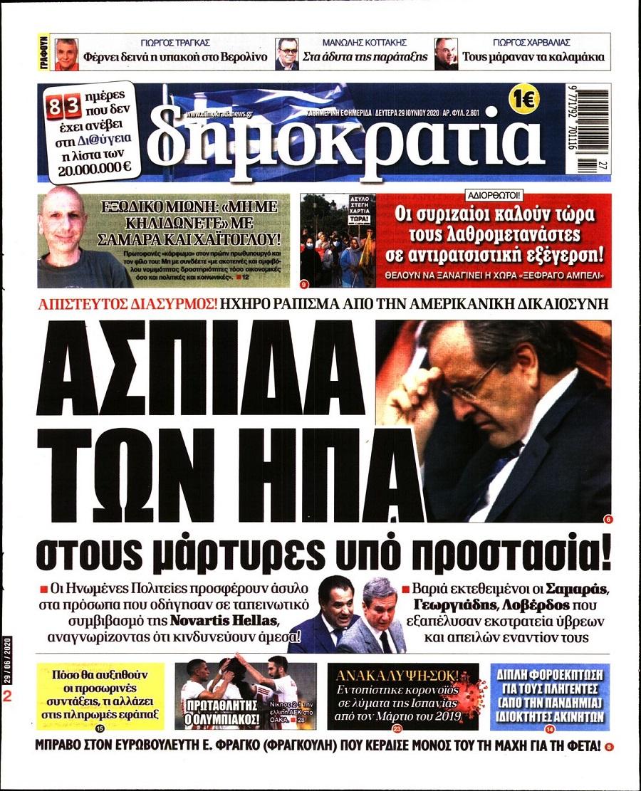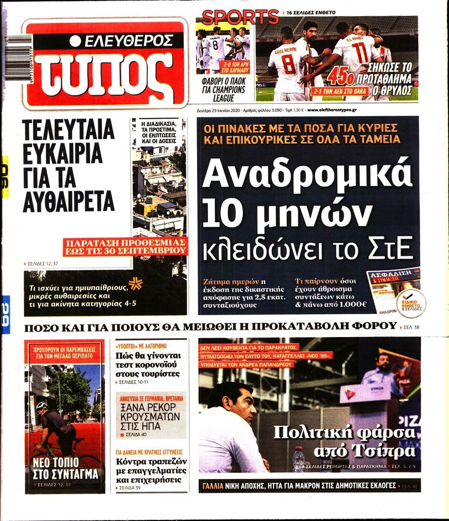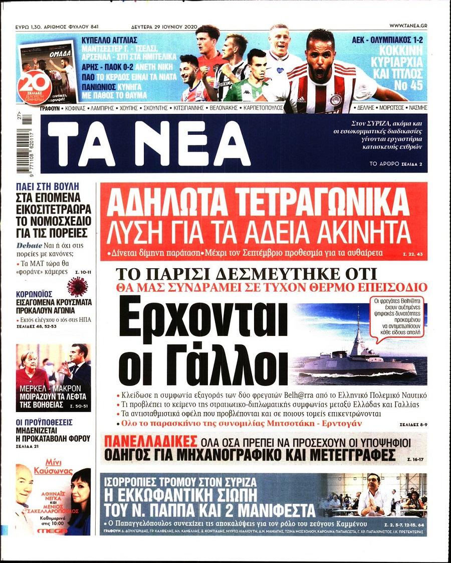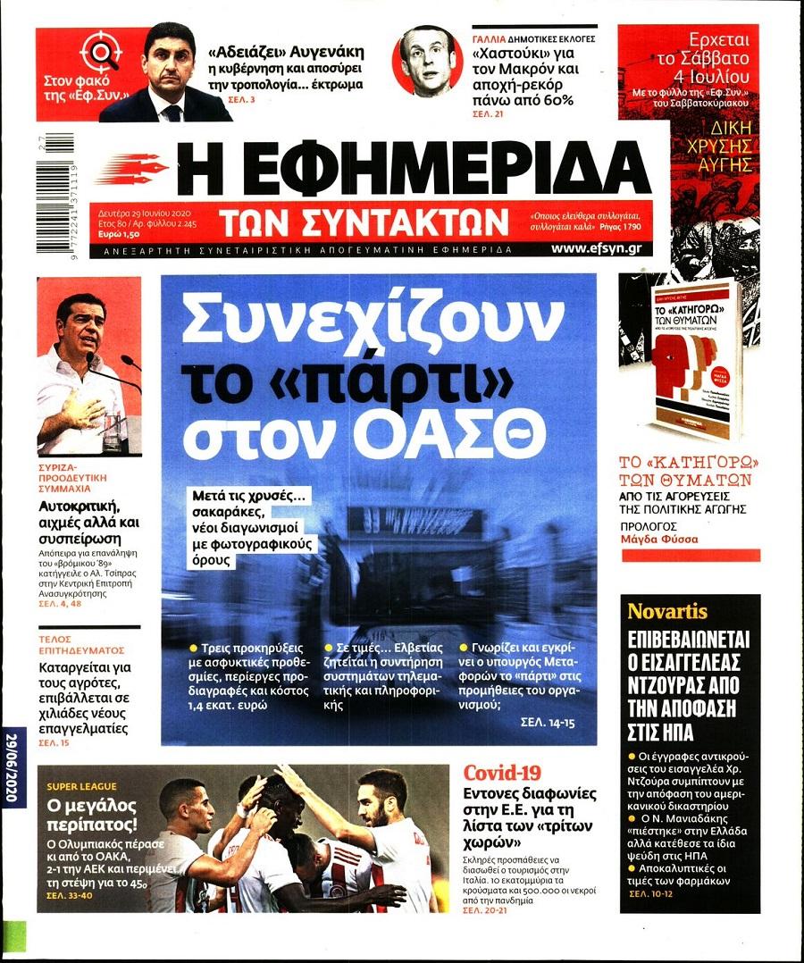 Τα πολιτικά πρωτοσέλιδα σήμερα (29/6)