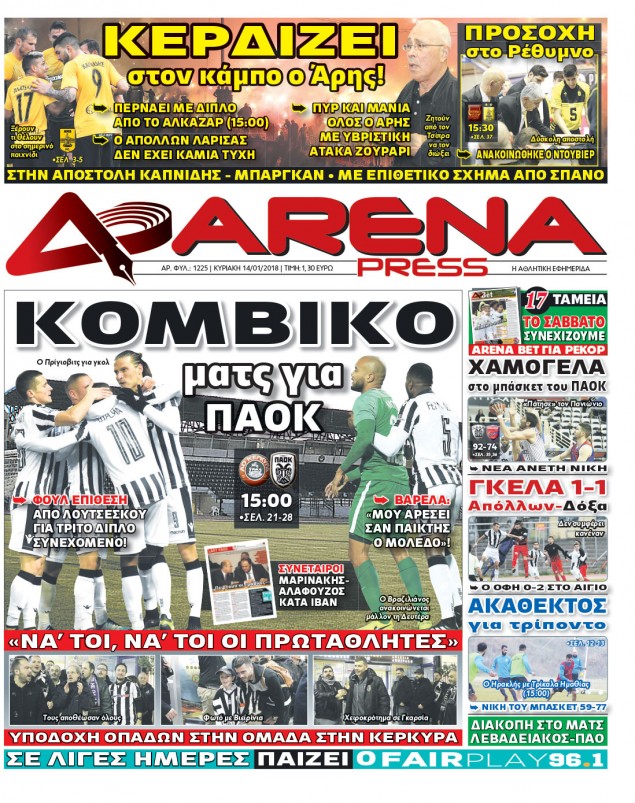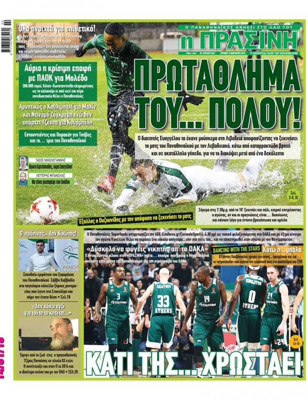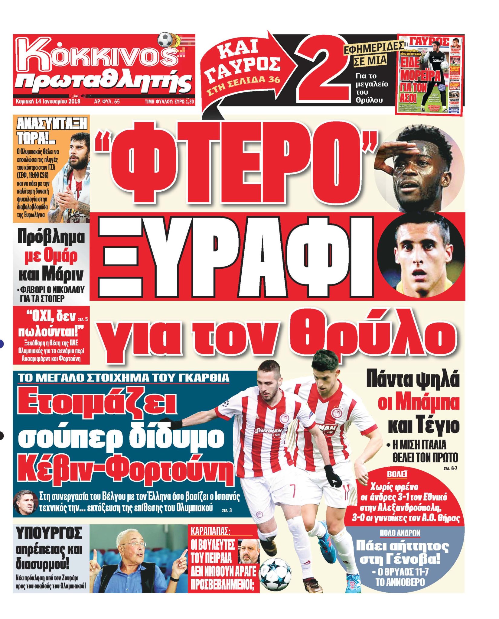 Διαβάστε τα πρωτοσέλιδα των αθλητικών εφημερίδων για σήμερα Κυριακή (14/1).