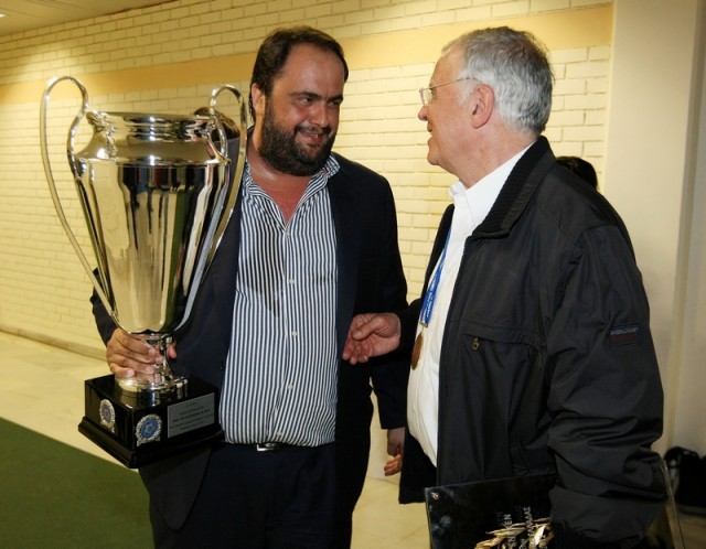 Με τον Σάββα Θεοδωρίδη, συγκινημένος να απαντάει: «Δεν το περίμενα. Δεν περίμενα να αφιερώσει το πρωτάθλημα σε εμένα. Έδειξε πόσο κύριος είναι και τι άντρας είναι. Με συγκίνησε. Αλλά κι εγώ 9 χρόνια δίπλα του τον έχω στηρίξει και θα τον στηρίζω μέχρι τέλους. Με συγκίνησε ο Βαγγέλης και με έκανε να νιώσω αιώνιος έφηβος! Και είμαι ευγνώμων που έγινα Ολυμπιακός».