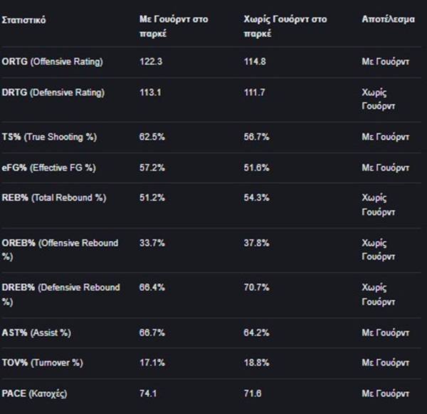 *Όλα τα νούμερα προέρχονται από τη Euroleague και είναι ανά 100 κατοχές για να υπάρχει ένα κοινό δείγμα